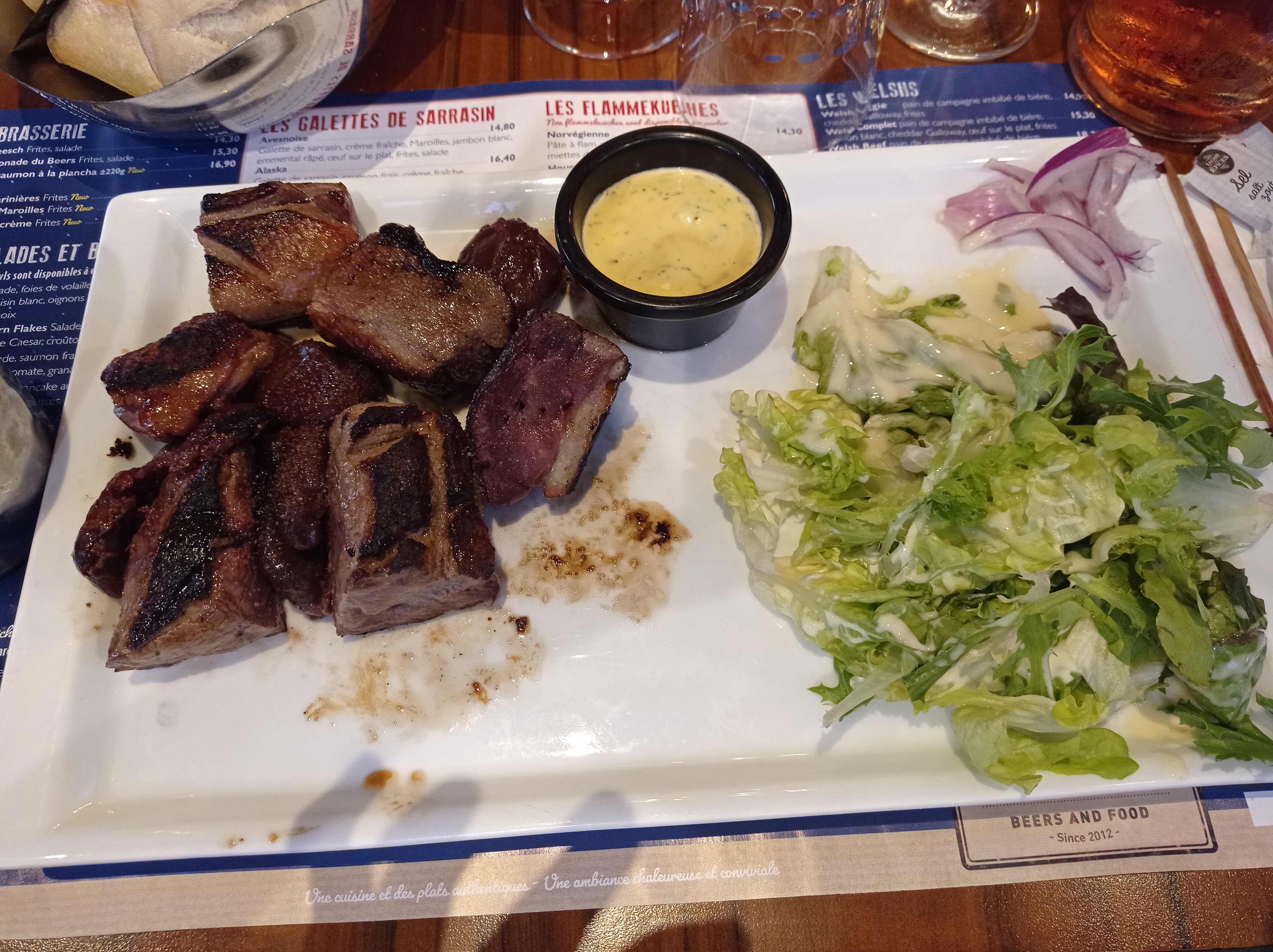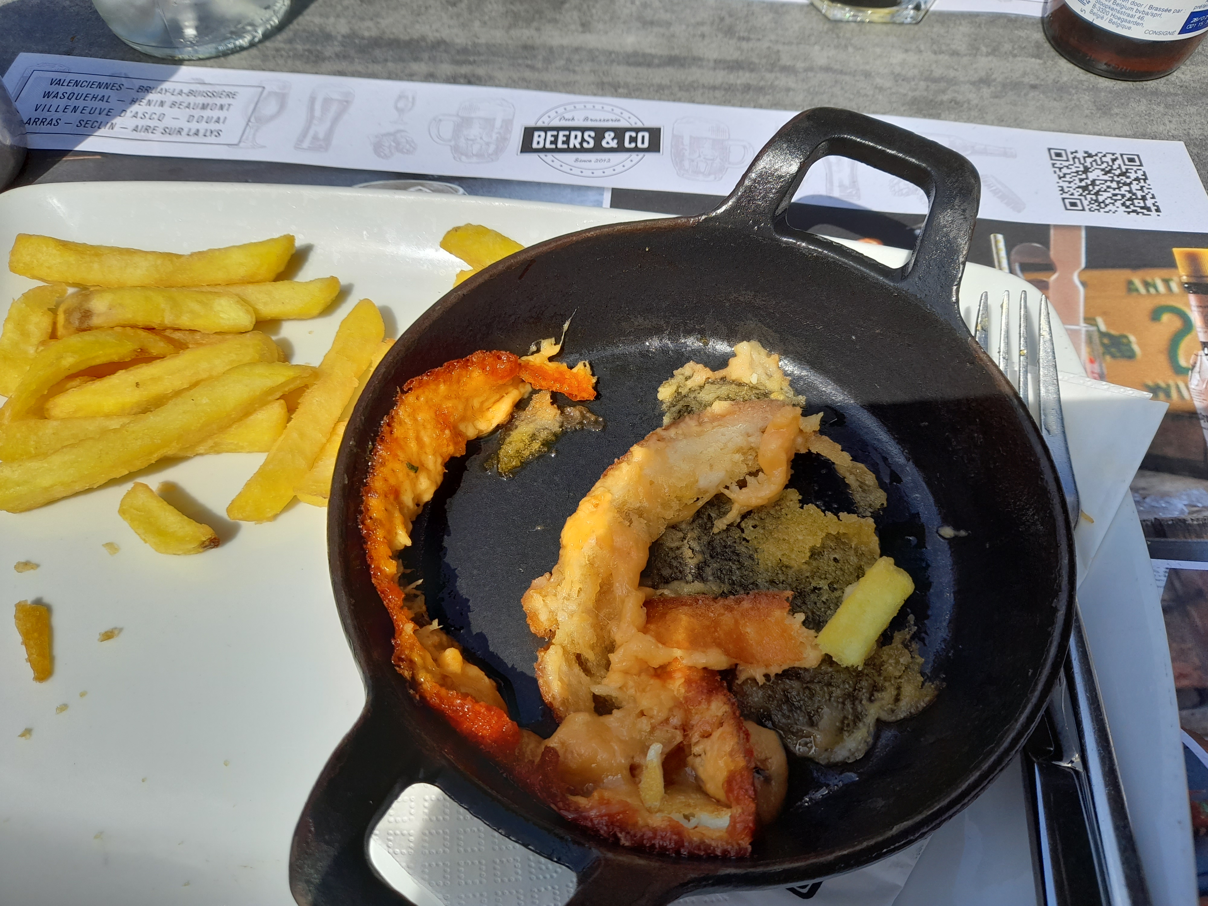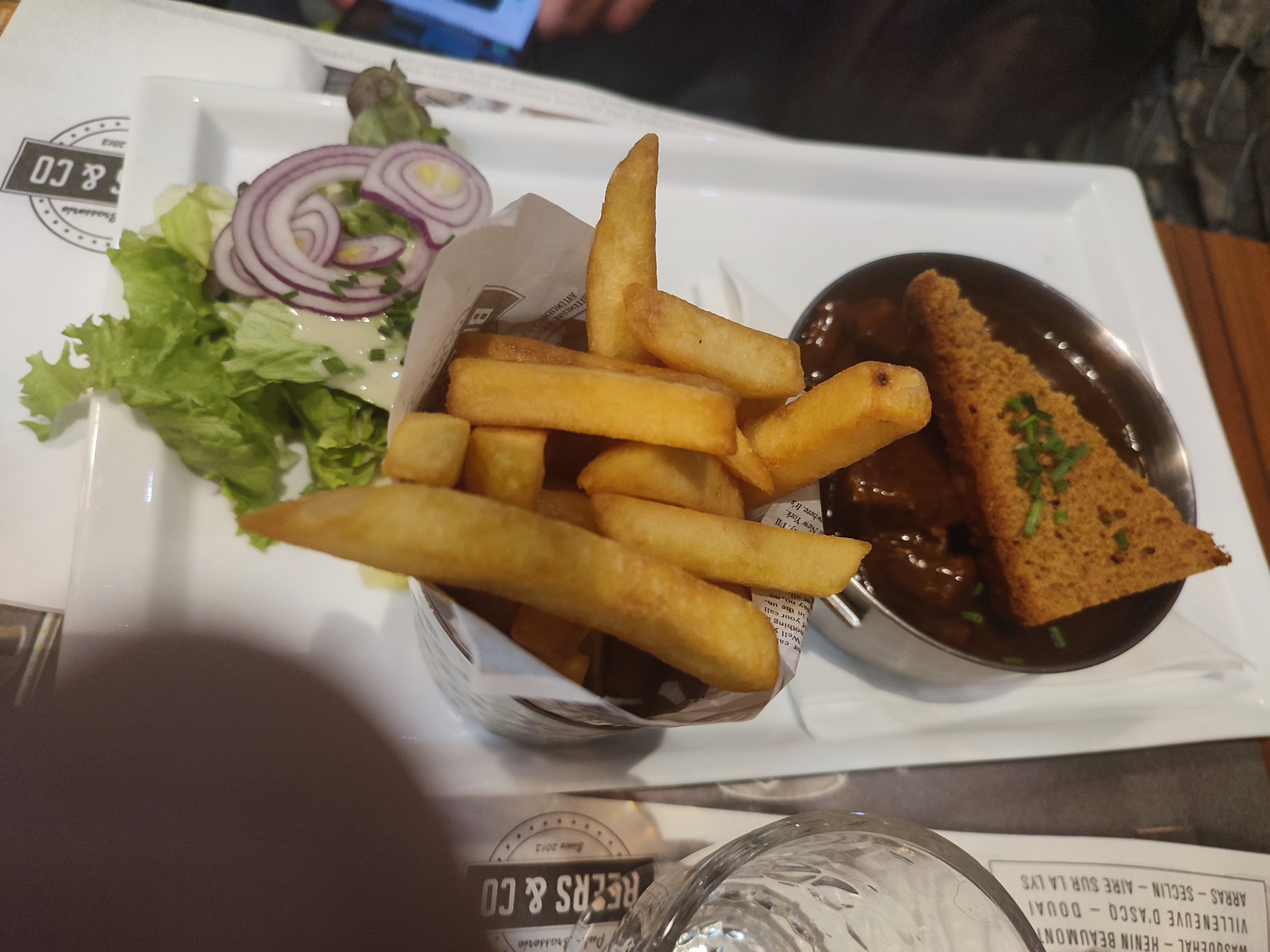 Un rapport qualité/prix plus que déplorable !!! 22€ pour un chti biloute, 4 morceaux de charcuterie, 1 malheureux morceau de pain découpé en deux. Ajoutons à cela un dessert vendu comme un cookie XL alors que le cookie fait la taille d’un cookie basique. Il serait bon de prendre exemple sur vos concurrents Au Bureau et Comptoir du Malt qui proposent les mêmes produits à des prix similaires avec une quantité bien plus importante, nous avons souhaité changer en venant chez vous cette fois ci, une fois pas deux ;) Terminons cet avis sur la radinerie présente jusqu’au bout : le chti biloute est indiqué avec une PDT au four dans le menu. On me le sert avec une frite, je le signale après en avoir picoré deux/trois en réalisant que ce n’est pas ce que propose le menu et ce que je souhaitais de ce fait. La personne m’indique que c’est au choix … or on ne m’a jamais demandé ce que je souhaitais + ce n’est pas écris ça dans le menu. Certes faisons abstraction, elle m’a vite rapporté une PDT au four, tout en récupérant les frites, j’espère que la personne qui a eu les frites où j’avais mis mes doigts se sera régalée ^^ Preuve de restriction de quantité absolue !