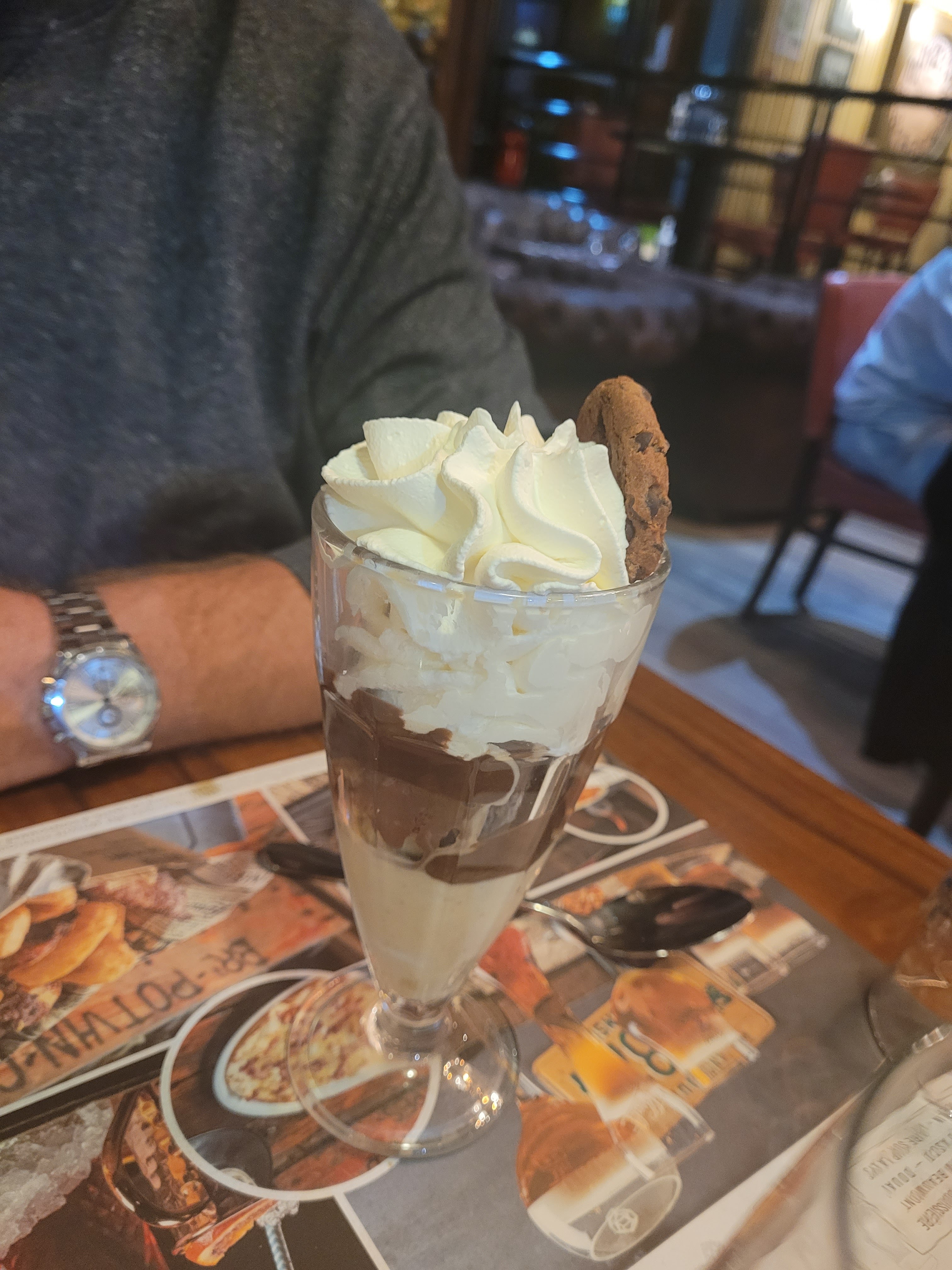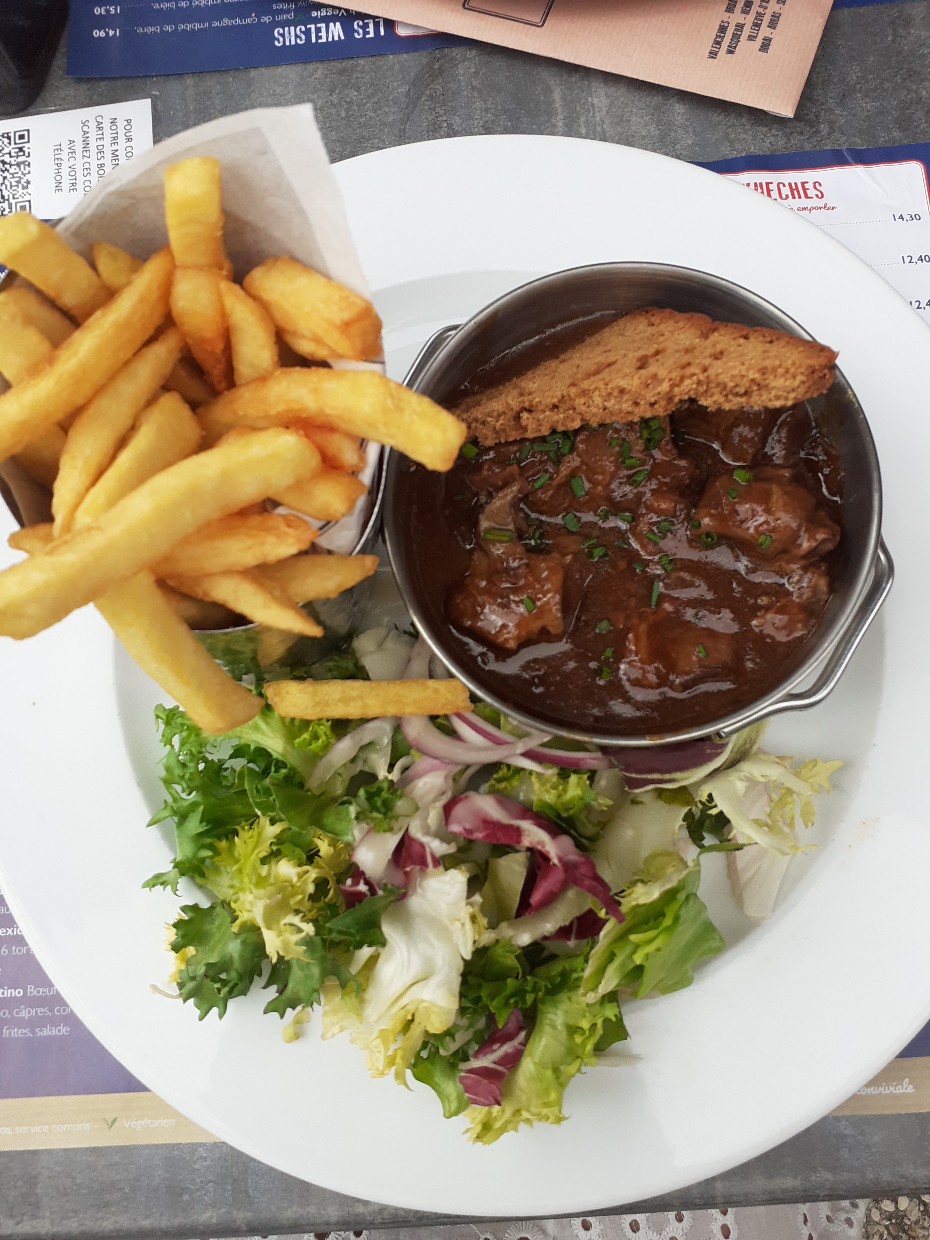 Liste des plats assez conséquente ! (Bon ou pas bon signe je vous laisse deviner) Les prix sont assez élevés, très élevés même pour certains produits. Je prends un whelche qui se trouve être la spécialité de l’endroit … résultat moyen mais vraiment très moyen, les frites congelées étaient également moyenne. Un repas donc moyen …