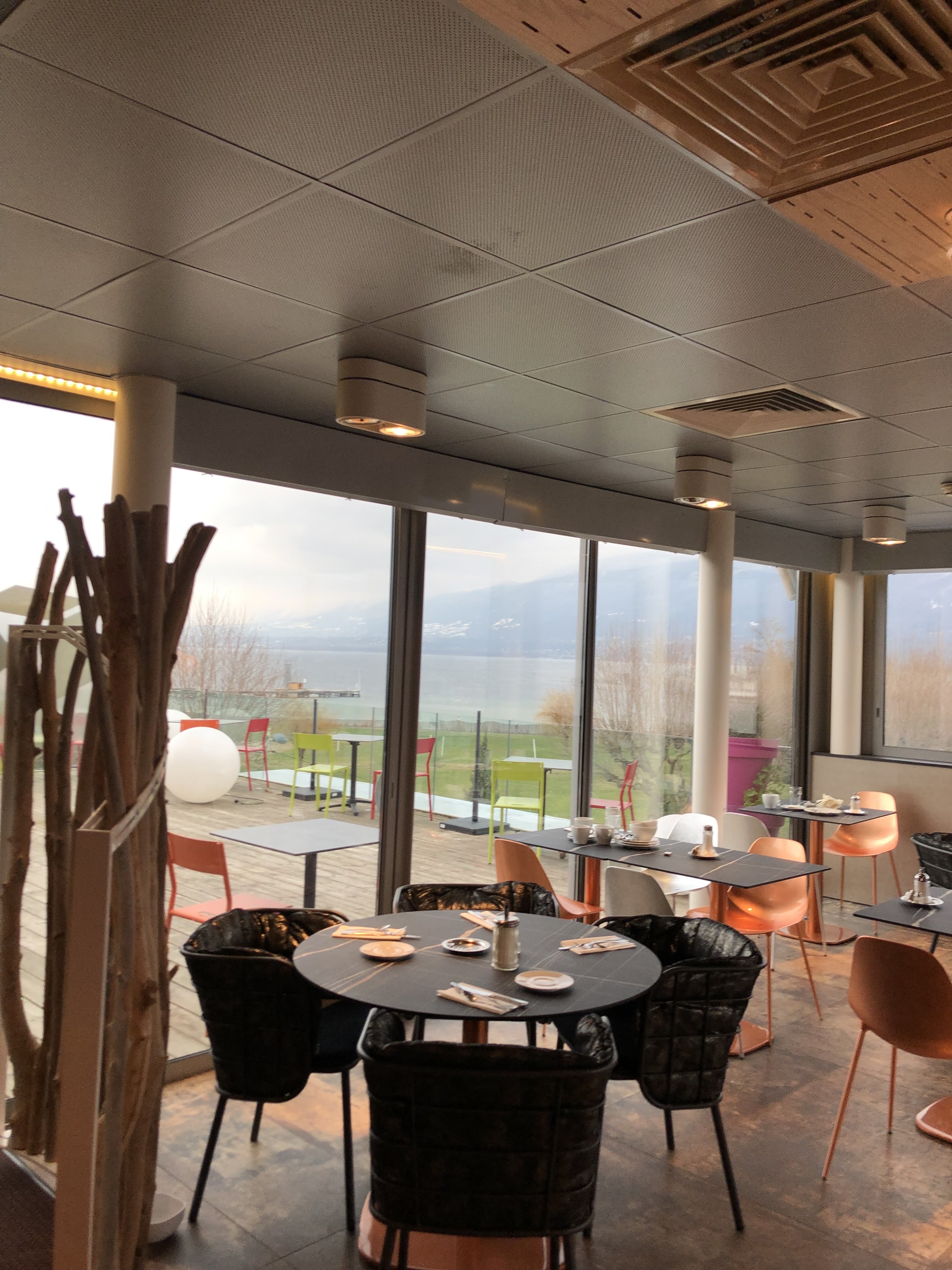Accueil très attentionné, mes demandes de changement ont été traitées rapidement, efficacement et avec le sourire, merci. Chambre très agréable avec grand balcon et vue sur le lac pour travailler en tout confort. Room service restreint (confinement) mais suffisant. L’hôtel est idéalement placé près du lac et du port pour les longues ballades, commerces à proximité (cinéma, casino, locations bateaux, paddle et planches à voile aussi). Je revendrai faire une visite lorsque le restaurant sur le toit aura ré-ouvert après le confinement la vue doit être au top! Une bonne adresse à recommander avec mes compliments au personnel pour leur amabilité.