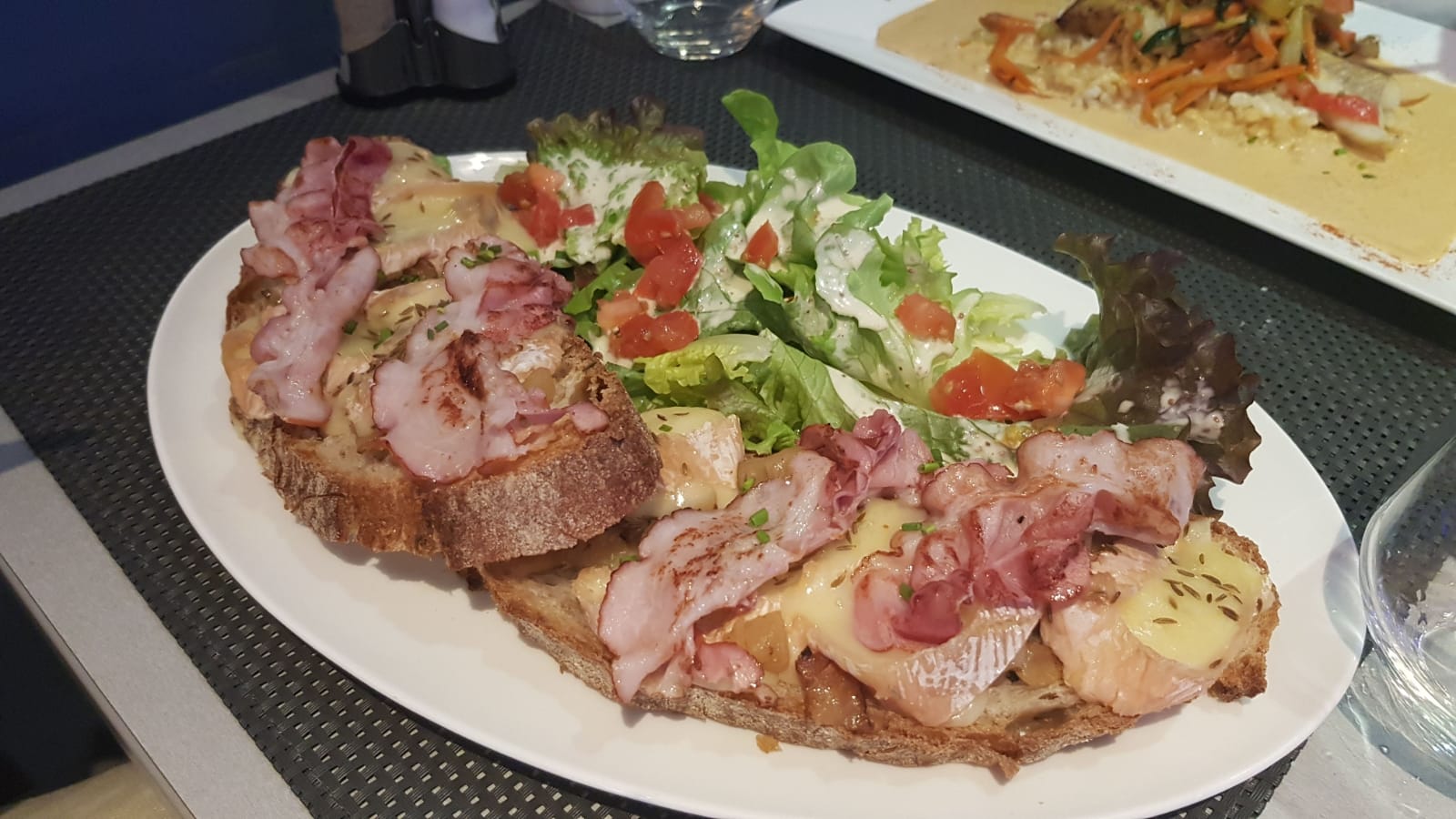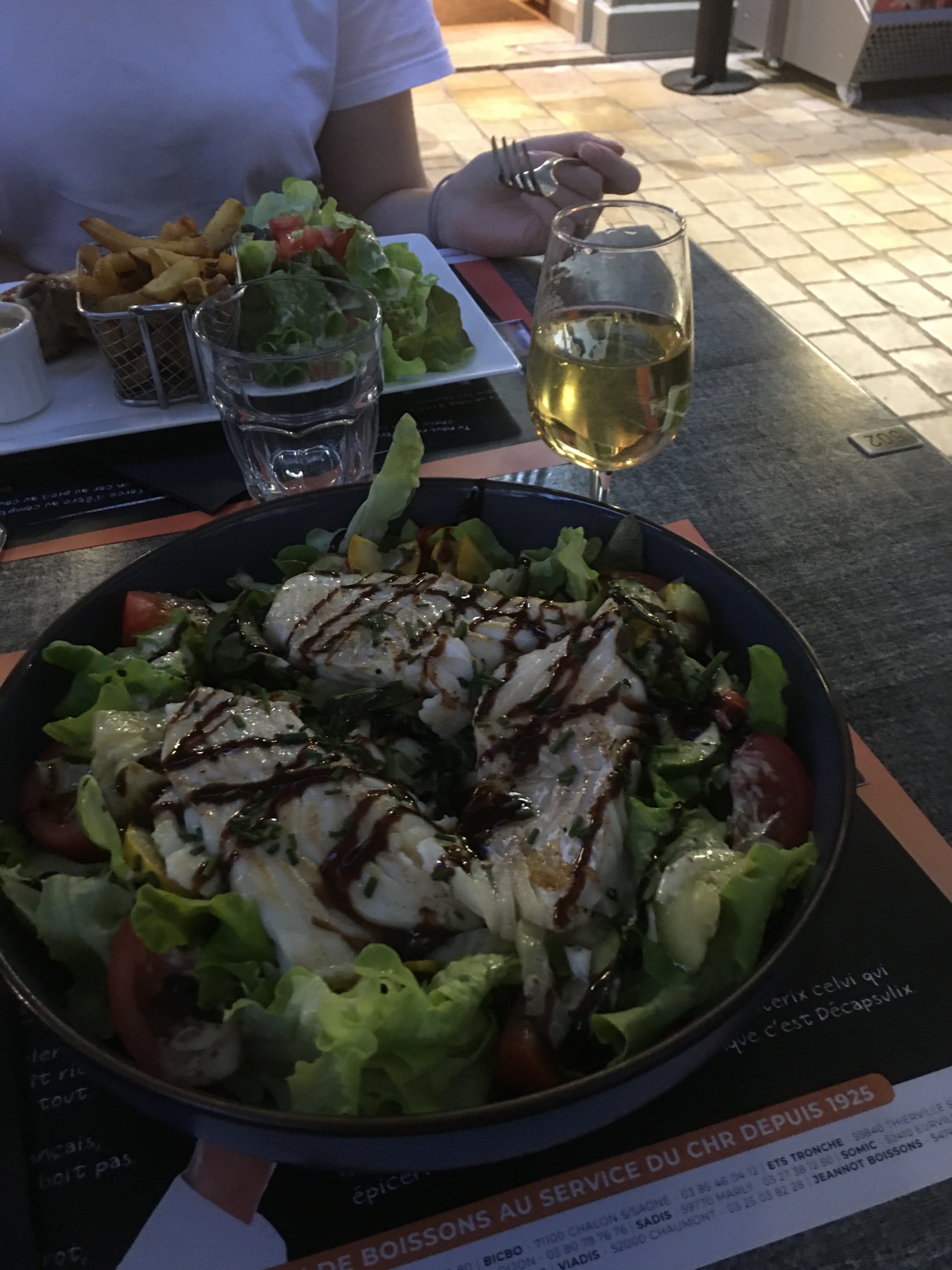 Un mot:excellent!! Filet de merlu sauce escabeche et fricassée de volaille basquaise à tomber. Produits frais et très bien cuisinés. Bel établissement bien situé au centre de chalon. Si le temps le permet belle terrasse. Tres bon rapport qualité prix. Établissement propre . Service rapide et agréable. Une belle découverte.