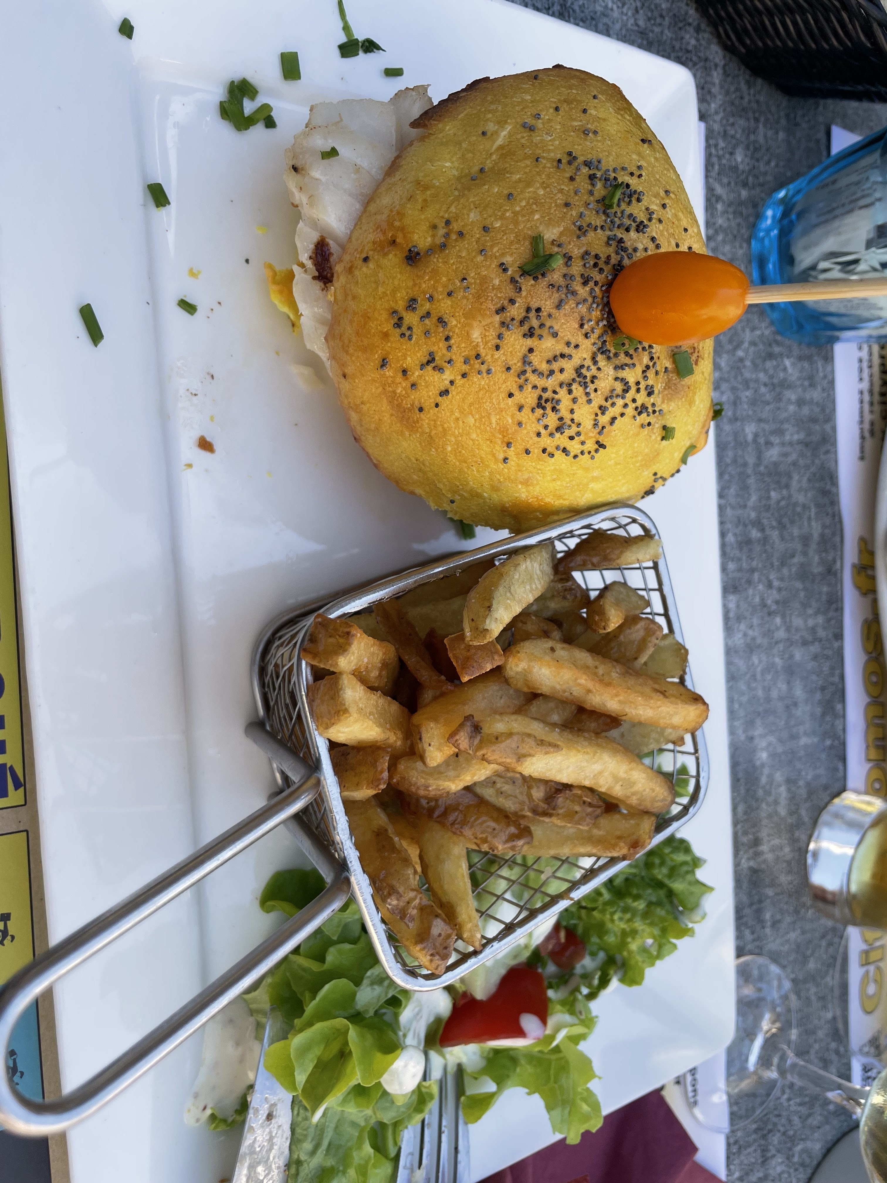 Hamburger traditionnel et hamburger au cabillaud au top ! Super bon 😍. La pain croustillant. Je recommande Personnels sympathique 👌