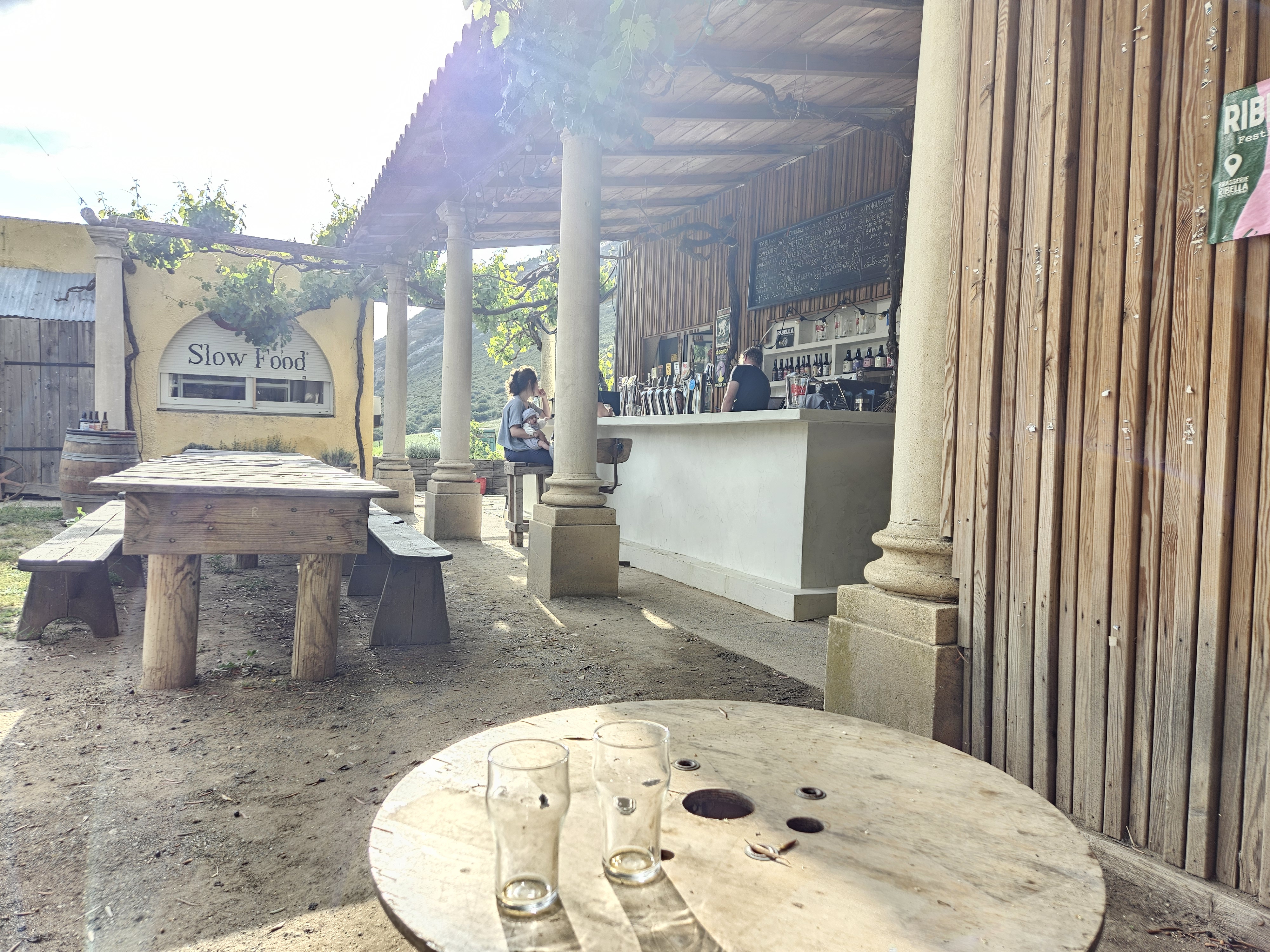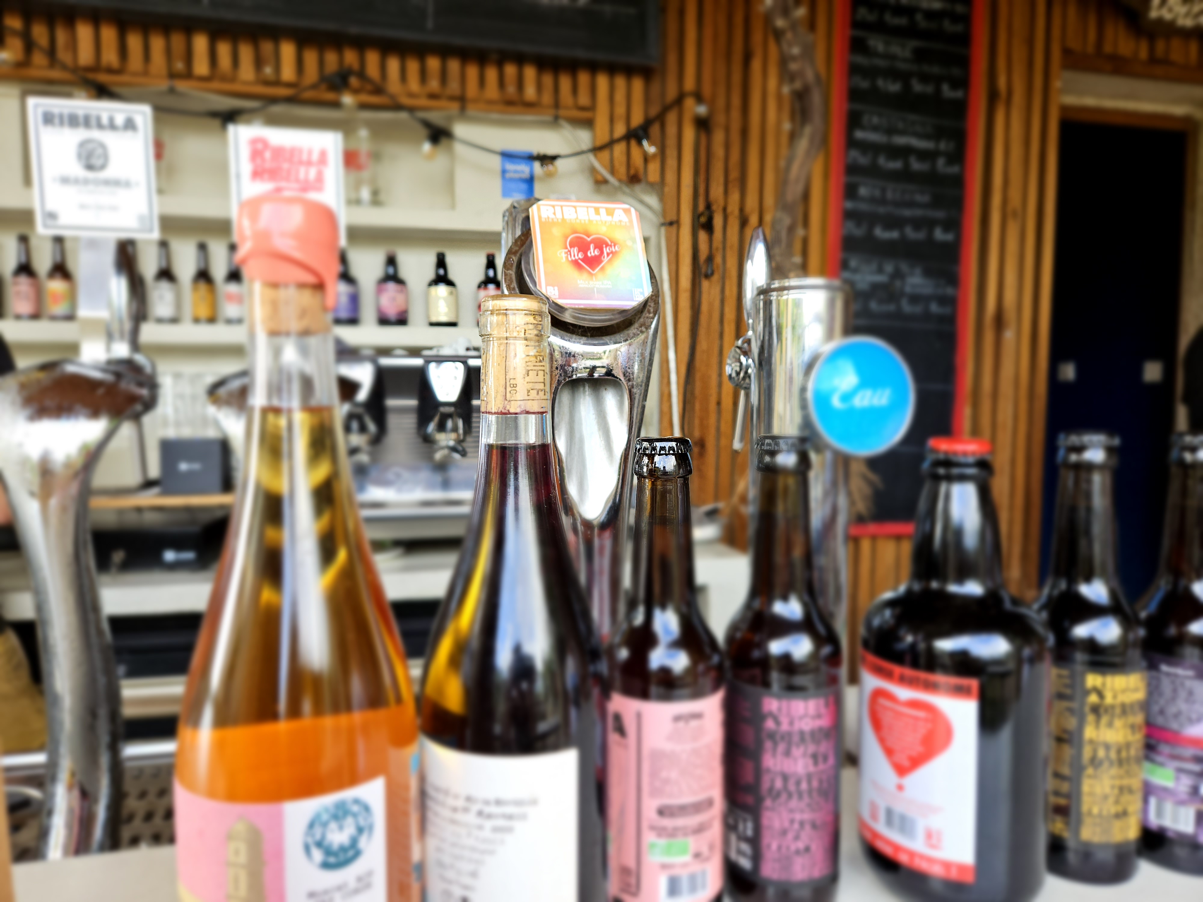 De nombreuses bières à déguster. Pergola sympa avec de nombreuses tables pour se rafraîchir en écoutant les cigales. Impossible de repartir sans quelques bouteilles.