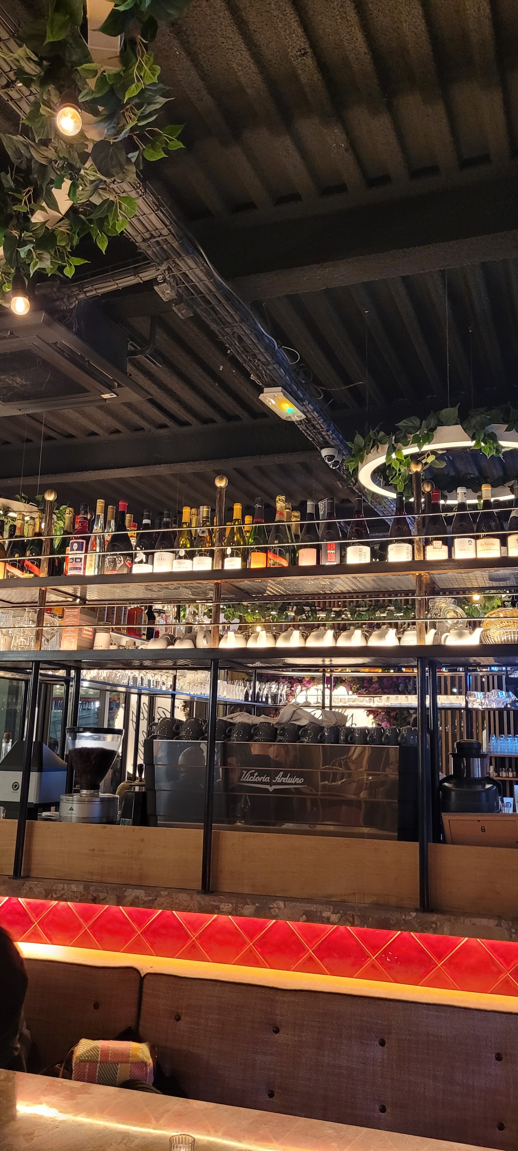 Le restaurant a une très belle décoration, l’entrée est dégagé et il y a deux étages. Pas besoin de réserver pour un petit groupe de personnes. La prise de commande est assez rapide mais le temps d’attente des plats etaient anormalement long. Presque 30 min d’attente pour une pizza qui n’était pas assez cuite en dessous . Dommage car les ingrédients étaient bonne.
