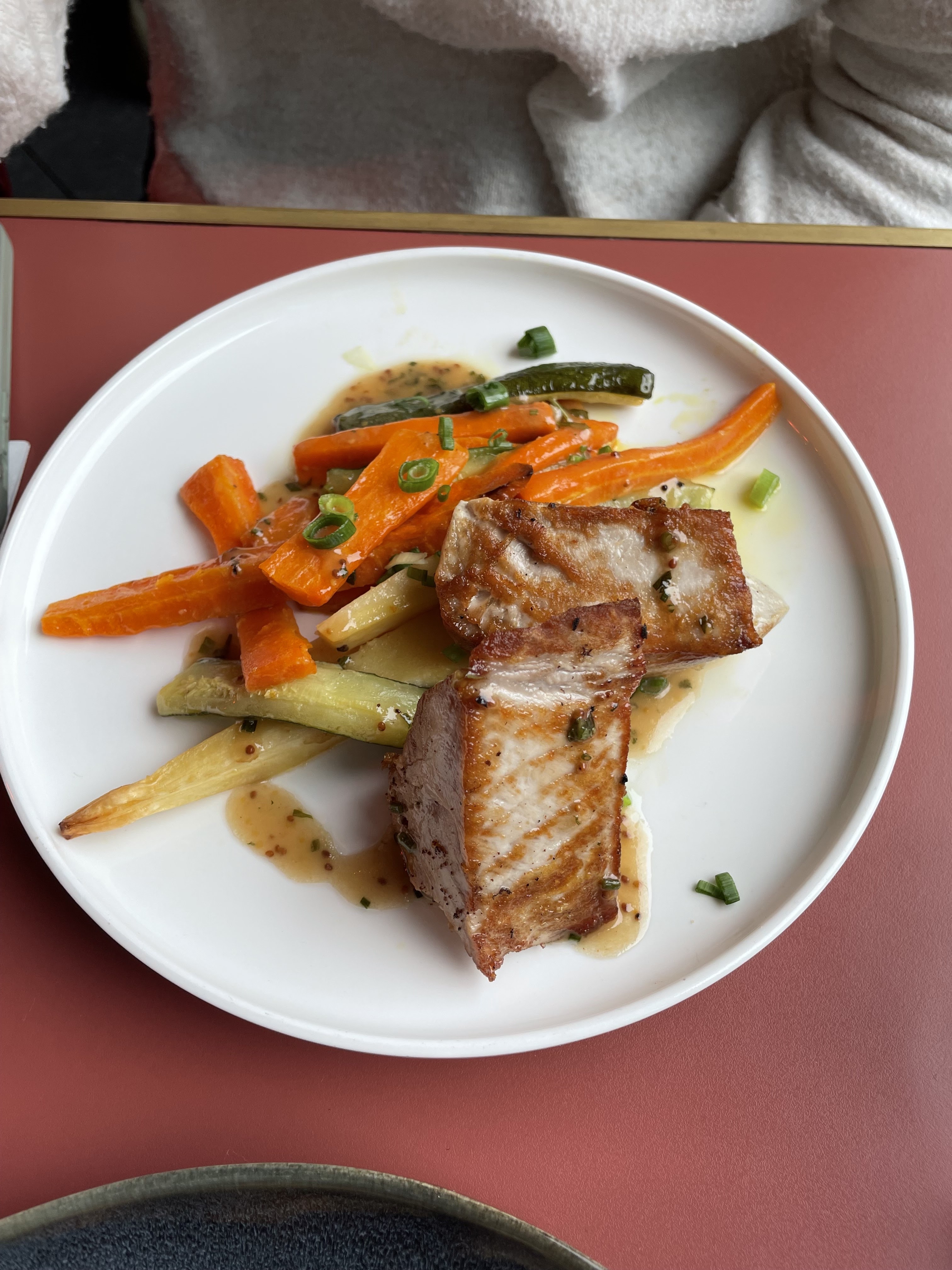 Croquettes de cochon à 19€ (2 petites lamelles et de la mesclun sans saveur), filet de lieu mal cuit et choux fleur sans goût (toujours à 19€). … incroyable. Dernière fois que je viens, et ce n’était pas mon galop d’essai, malheureusement.