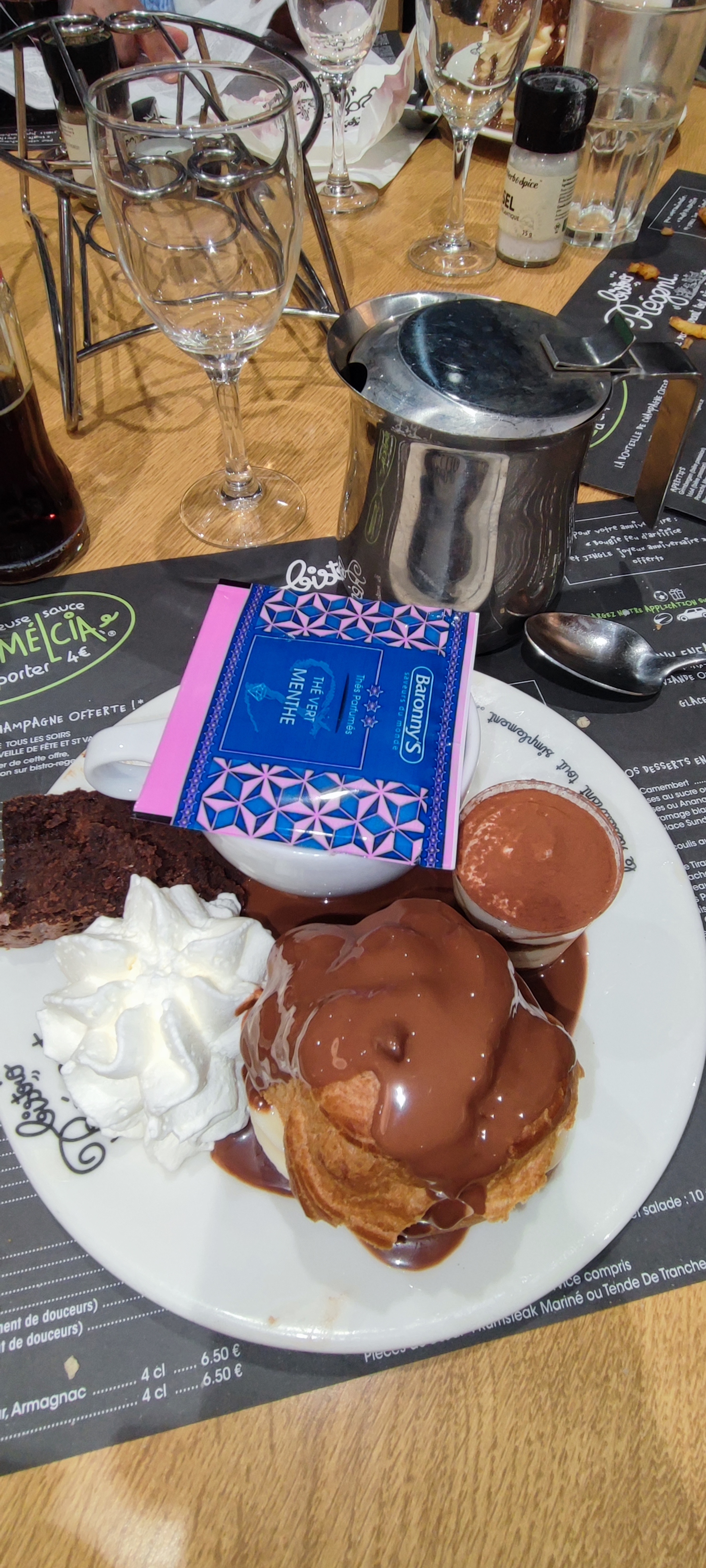 Accueil chaleureux et plat bon. Desserts (fondant et profiteroles) généreux.