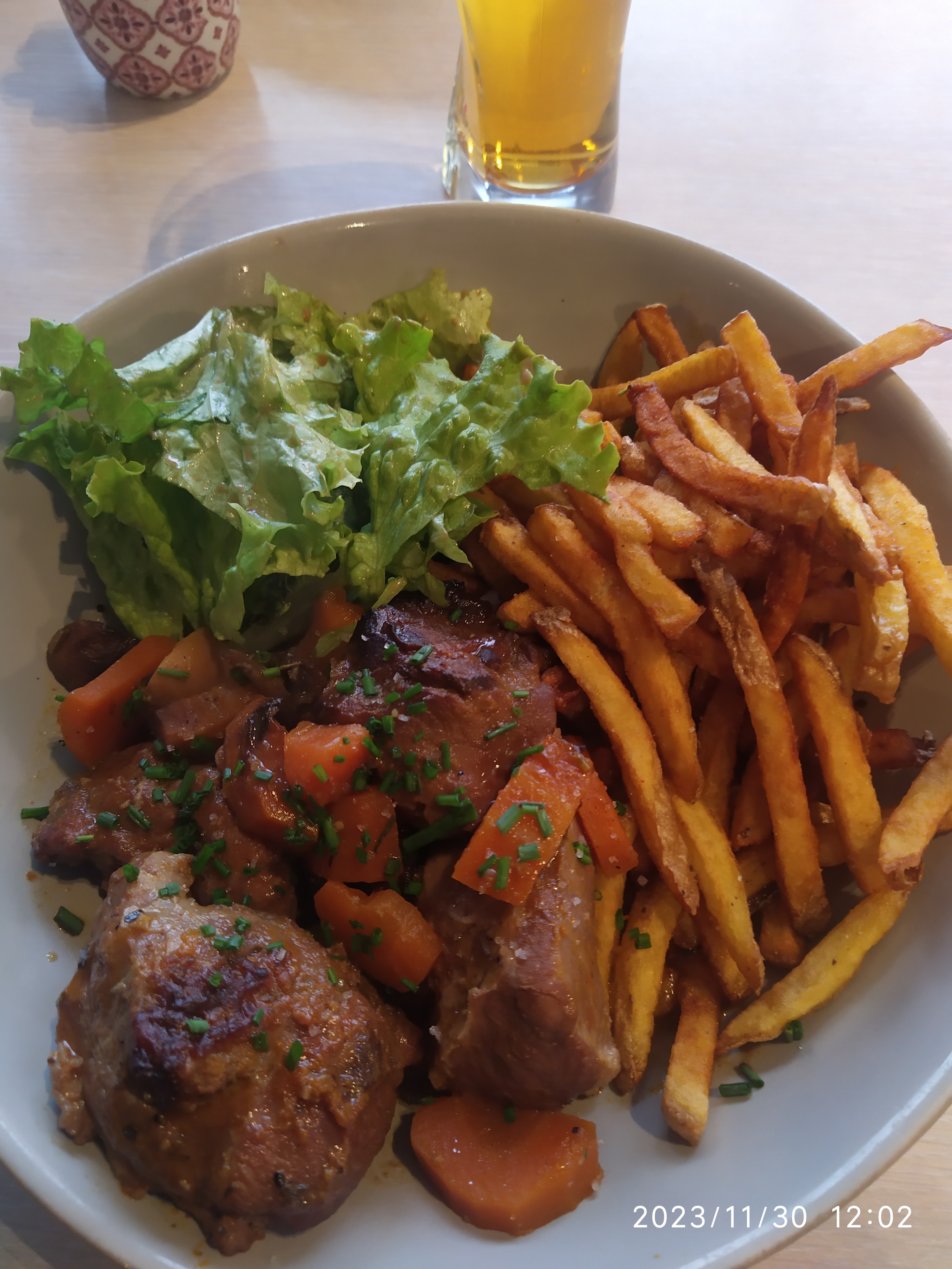 Cuisine très généreuse et bonne. Nous avons été servis après des personnes qui étaient arrivées après nous... Lieu sympa.