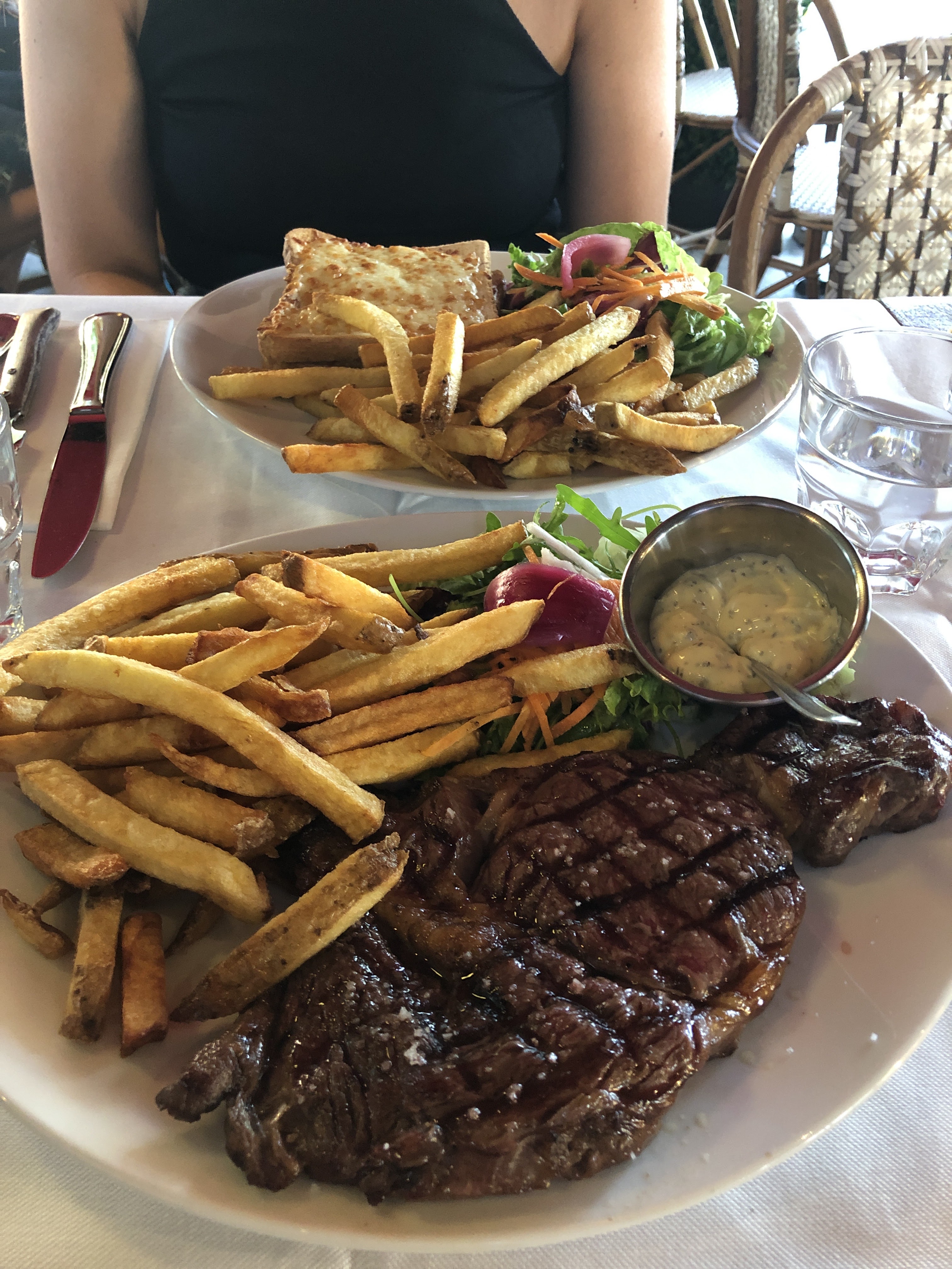 Très bien situé, serveurs très aimables et rapides. Entrecôte très bonne mais le croque-monsieur monsieur est plutôt petit et décevant. La crème brûlée était bonne. Le prix est normal pour le lieu.