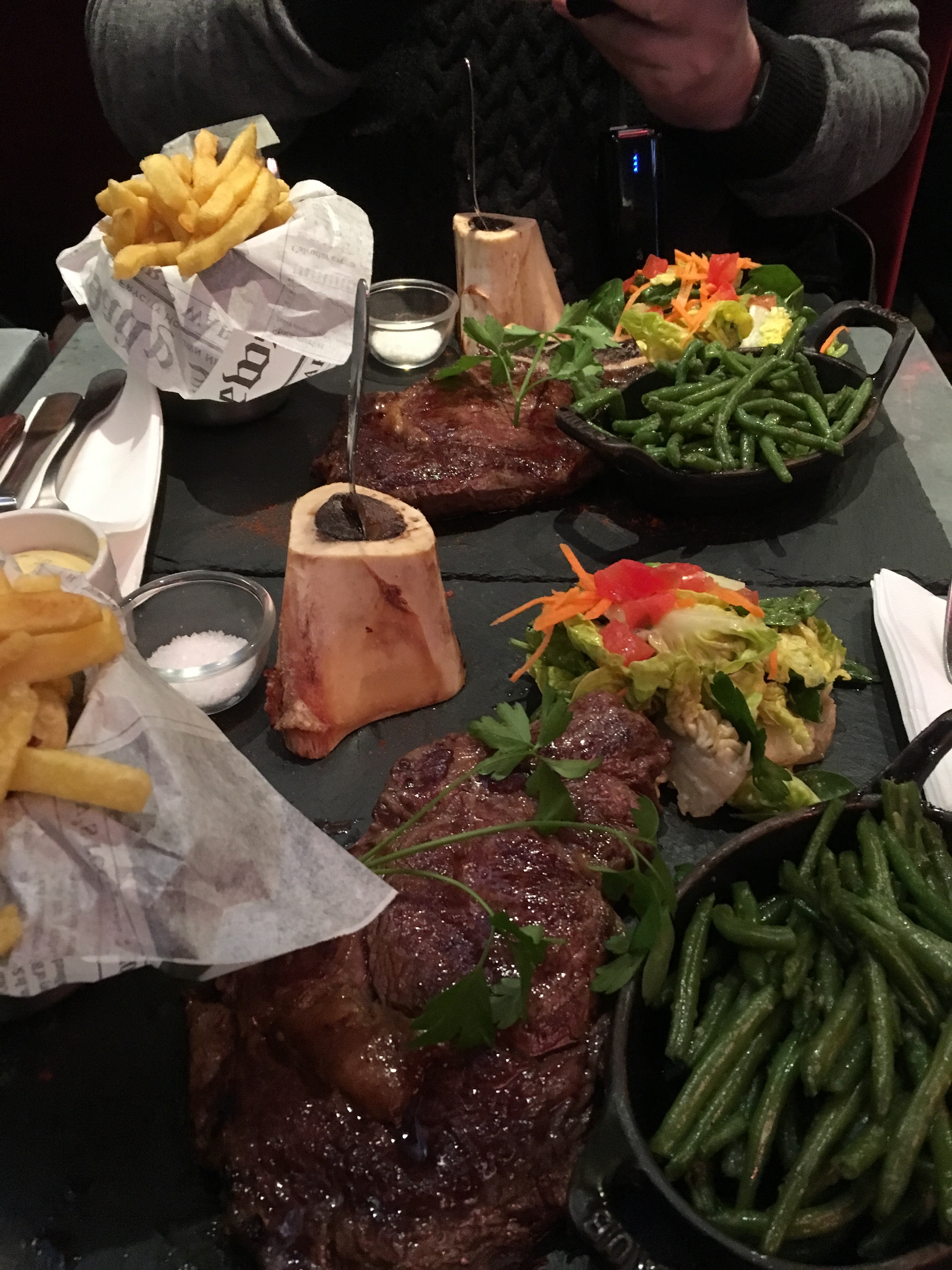 Accueil très sympathique! Nous étions entrés pour boire un chocolat chaud (délicieux) nous avons enchainé avec une côte de bœuf et un bon vin rouge! Ravis d’être passés par cet endroit !