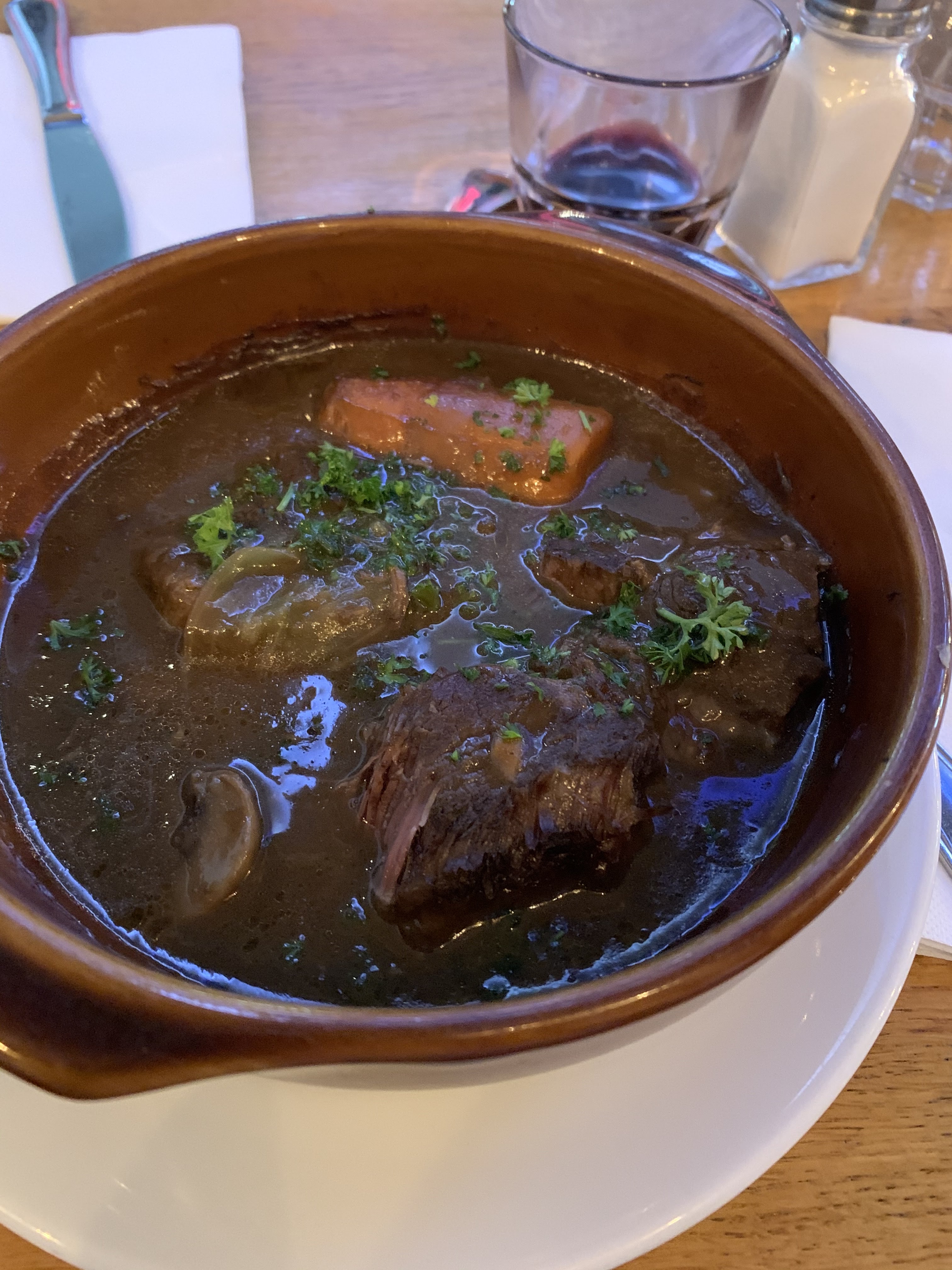 Bœuf bourguignon très très bon le meilleur que j'ai manger durant mon séjour sur Paris Dommage du bruit cote du Seine un peu dérangeant mais bistrot très parisien ! Pas le moins chers mais face à l'hôtel de ville Merci a Germain et ludivine de l'accueil