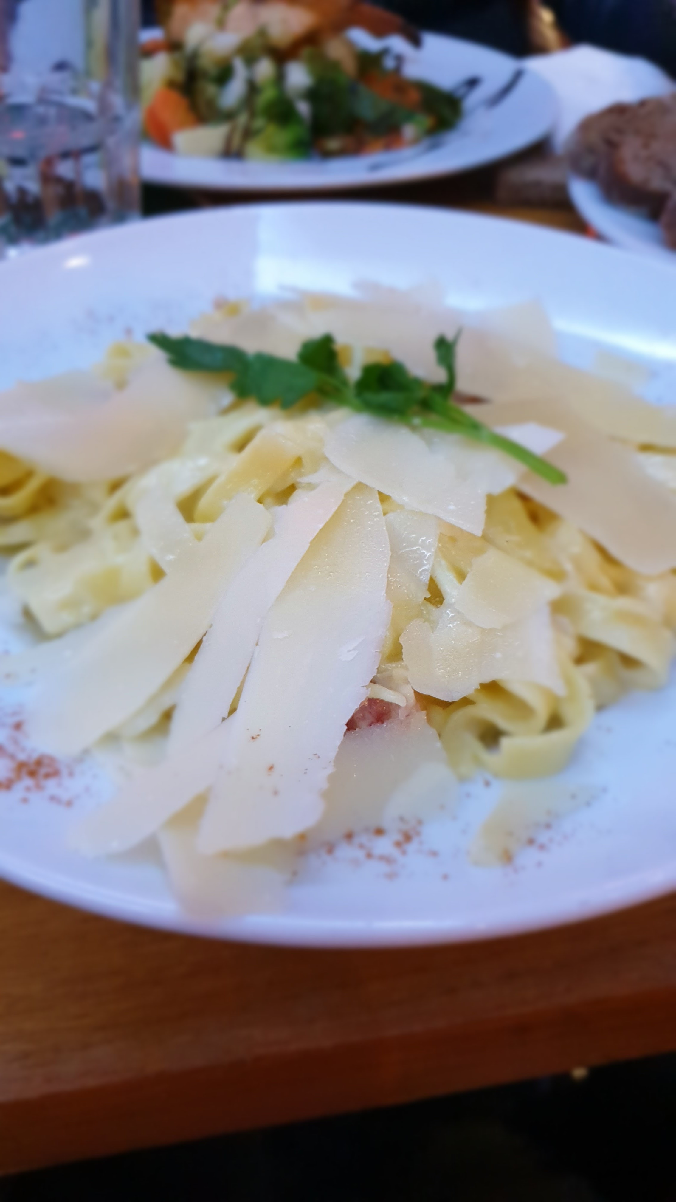 Très bonne cuisine, nous avons commandé une pizza et des pâtes bolognaises. Dommage que le plat de pâte n'ait pas été plus rempli. Le service était de qualité, les serveurs ont répondu à nos attentes. Le cadre était très agréable, à deux pas du métro et de l'hôtel de ville. Cependant, il est quand même conseillé de manger en intérieur, cela évite d'être dérangé par les bruits du trafic