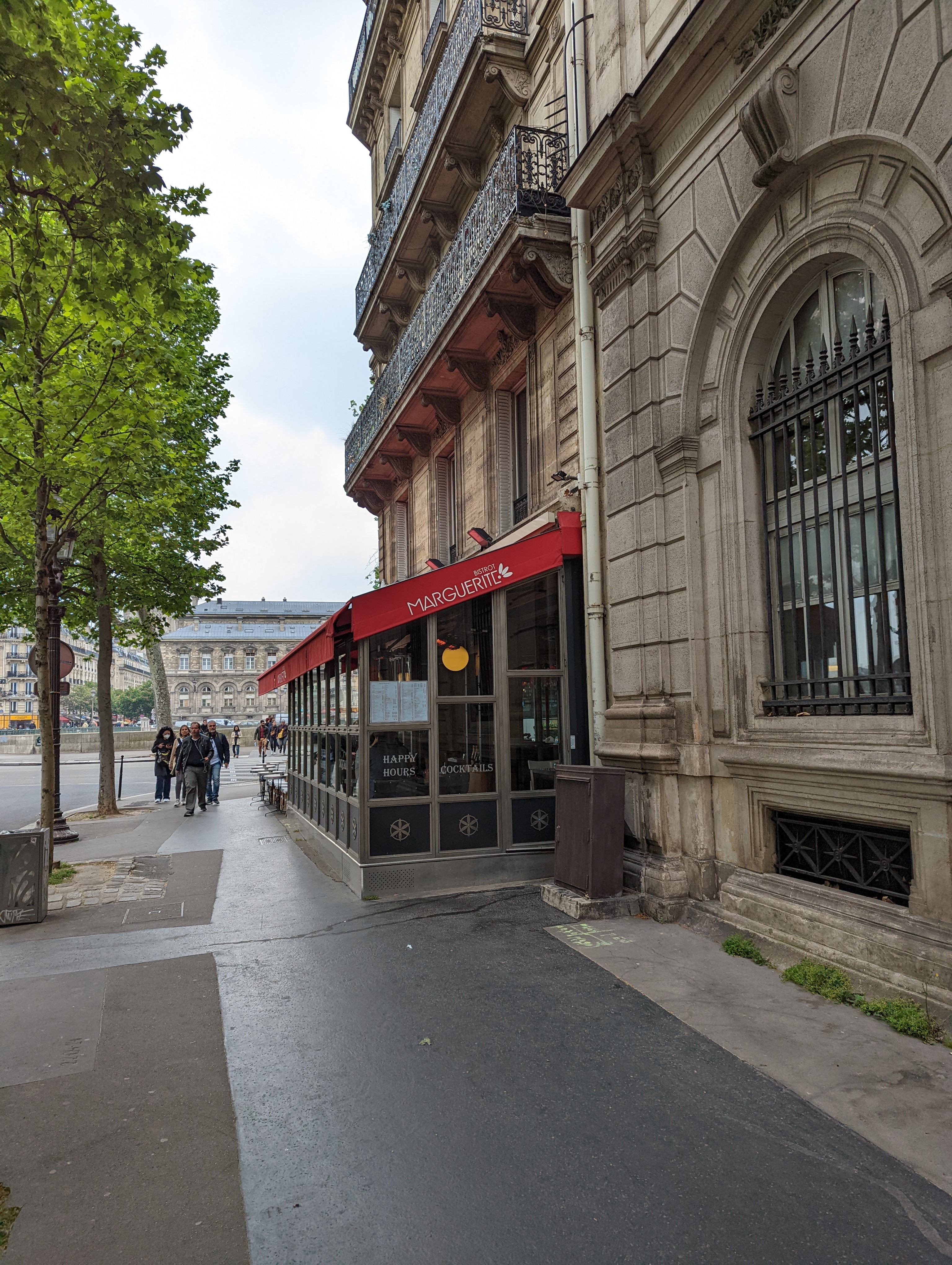 Serveuse peu aimable, toilettes insalubres… Pour un bistrot situé en face de l’hôtel de ville de Paris et en bordure de Seine, c’est juste lamentable… Heureusement que la nourriture est correcte…