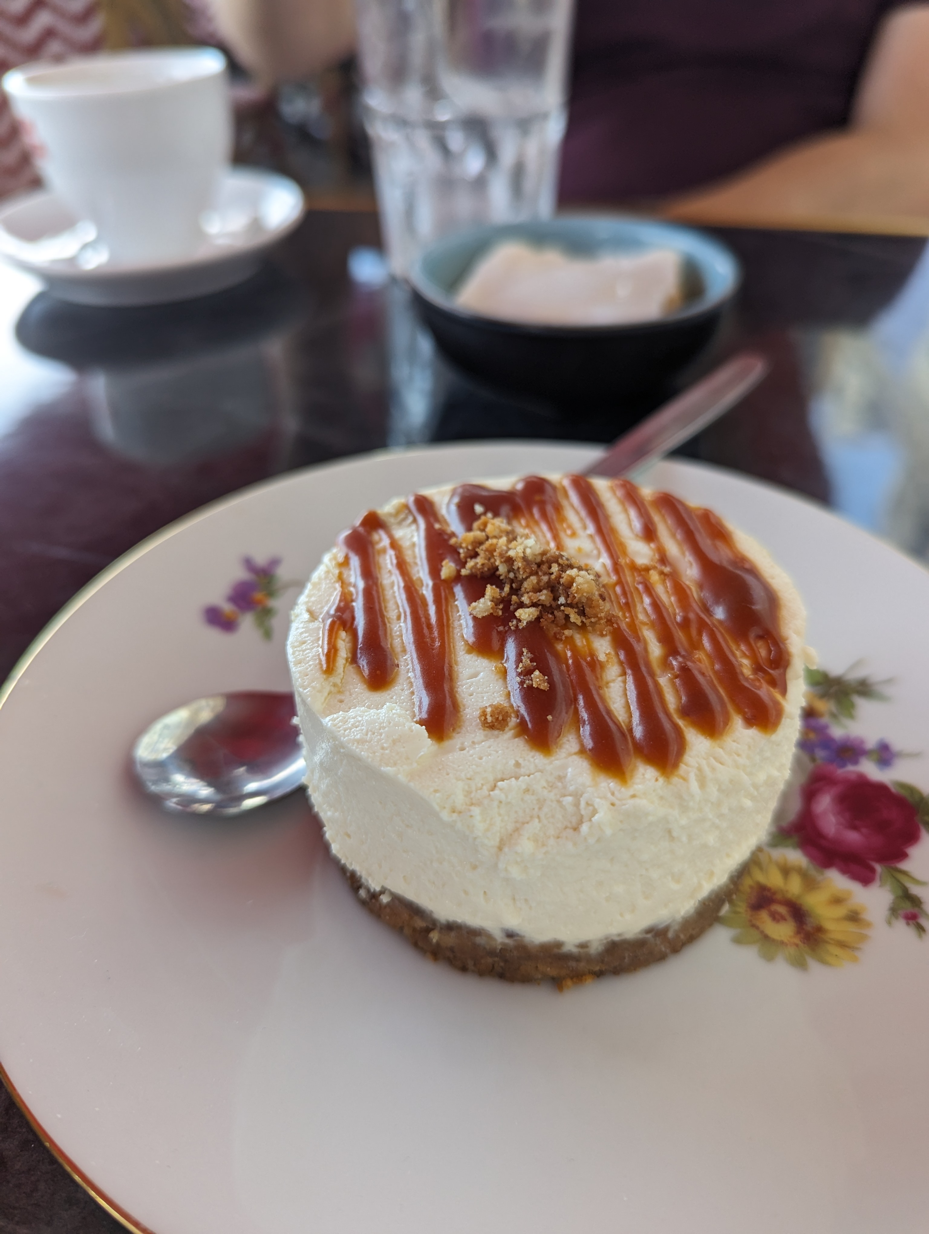 Terrasse sympas au port pour prendre un verre. Le Cheesecake était très bon avec une pâte sarrasin.