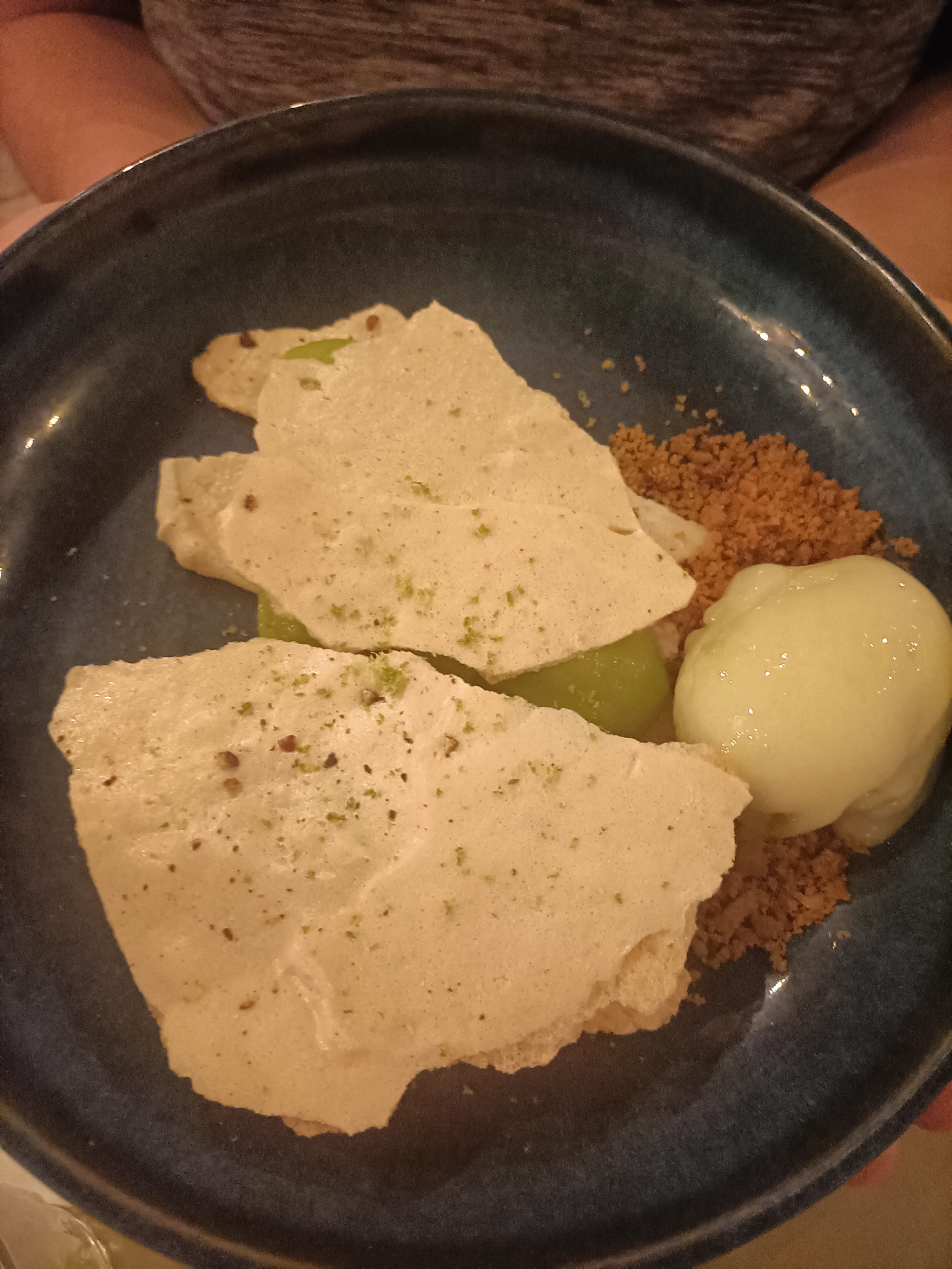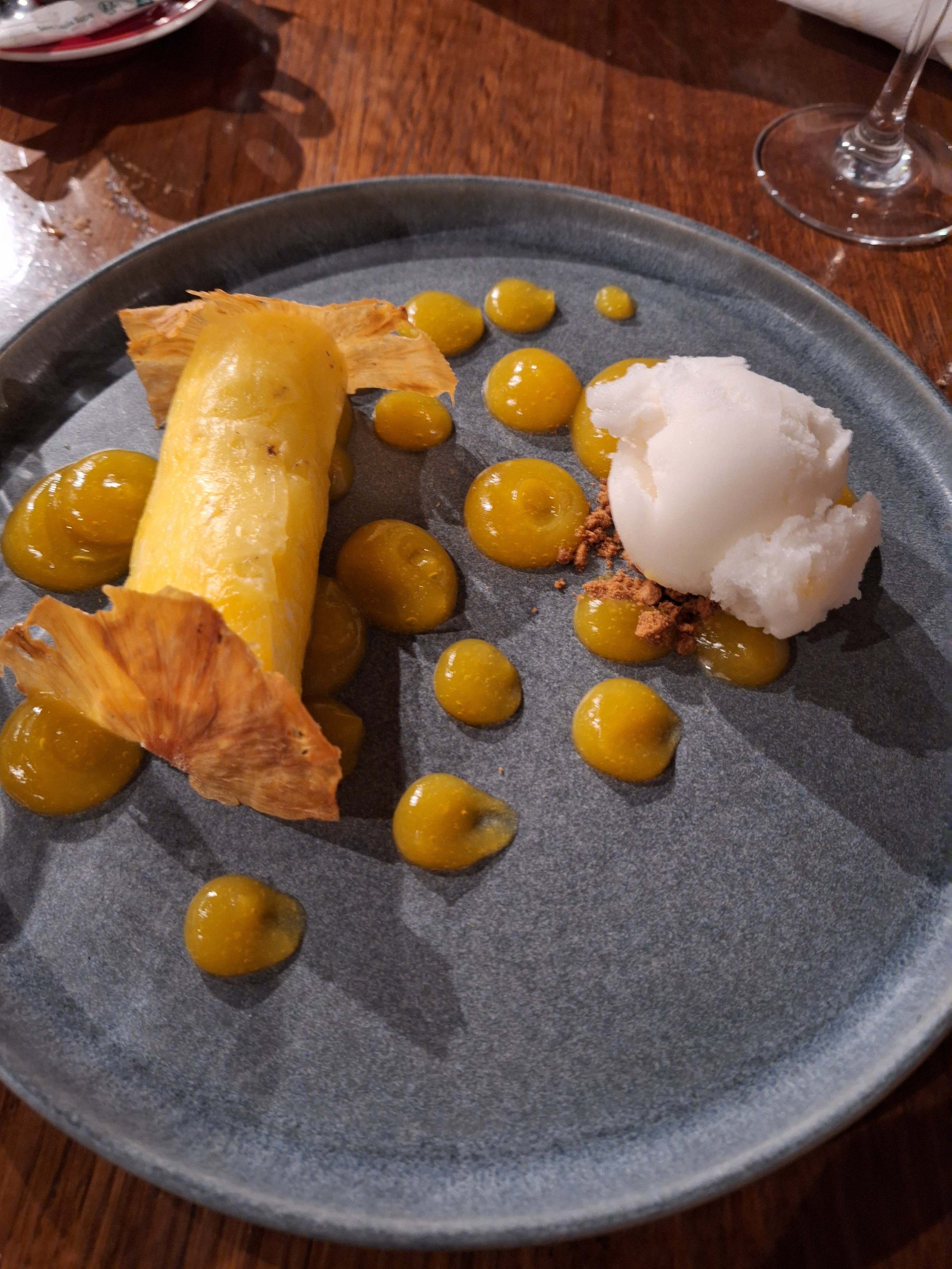 Dîner hier soir, le serveur était vraiment parfait, et super sympa en plus, quant au dîner l’agneau était succulent, et la mangue sous tous ses aspects en dessert était délicieuse (mention spéciale au cannelloni, le mariage menthe-mangue-préparation fromagère était divin). Bravo !