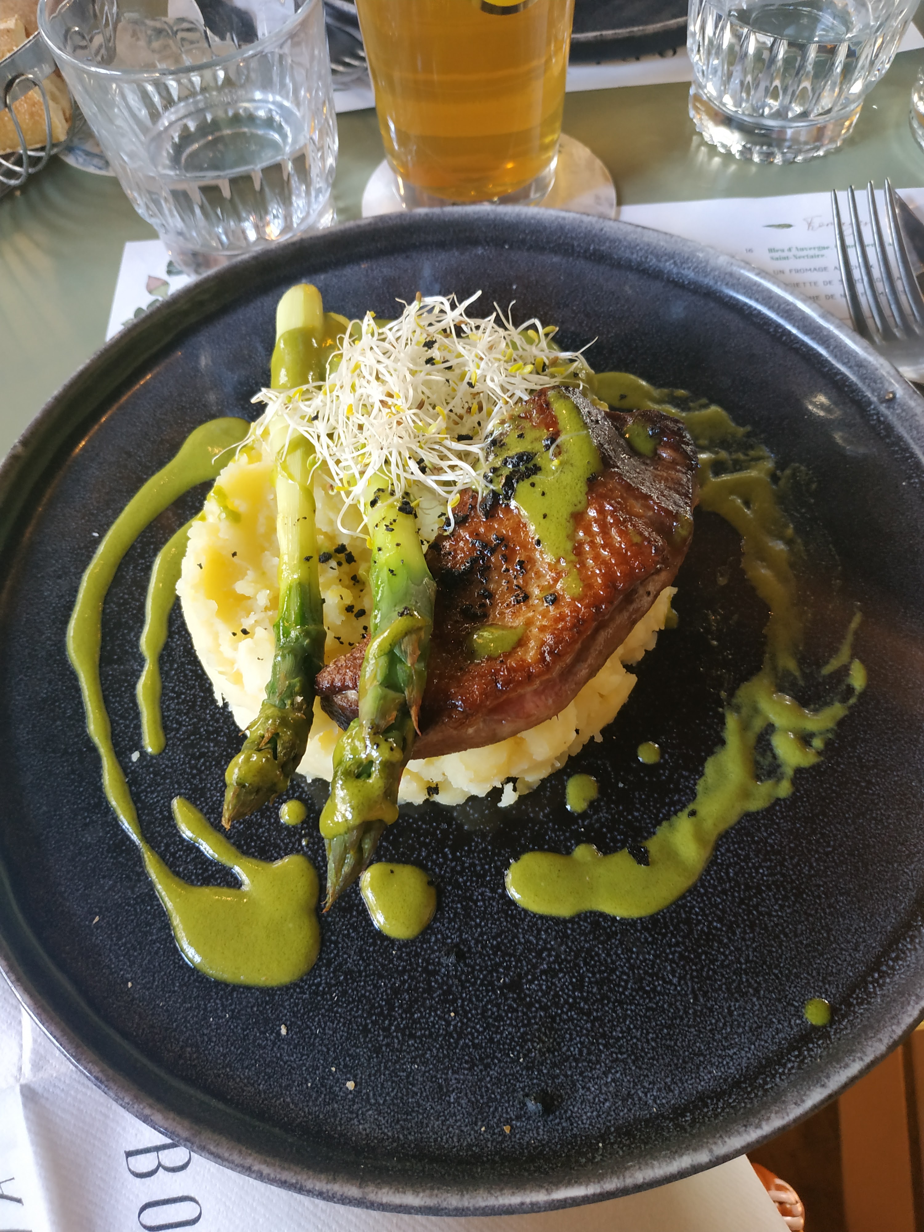 Excellente entrée “asperges en trois temps”, dessert vraiment gourmand. Service excellent. Merci!