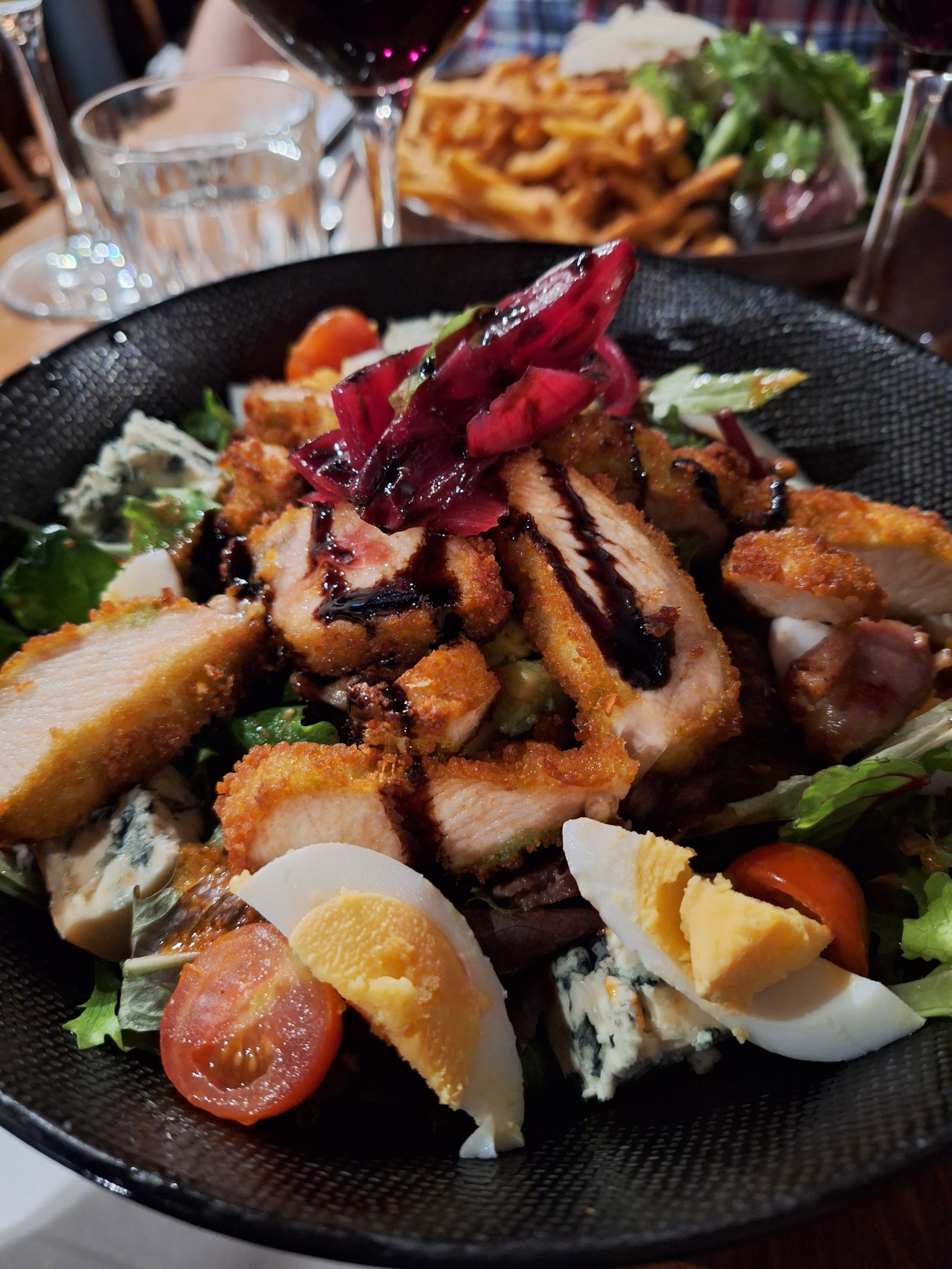 Cuisine faite maison une salade gourmande avec de vrais ingrédients de qualité ! Et en prime une petite terrasse en arrière cours très agréable avec les beaux jours qui arrivent.