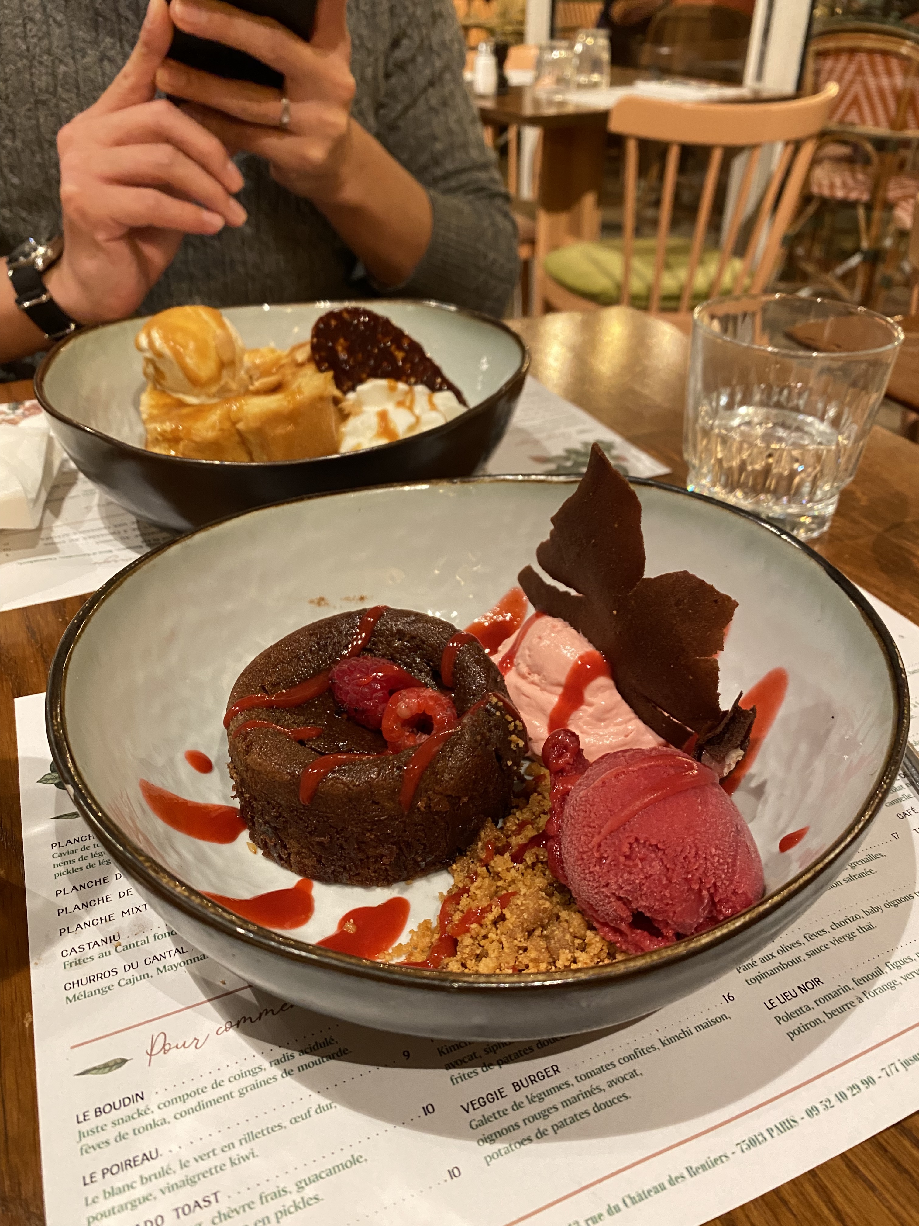 Restaurant est à deux pas de la station métro des Olympiades. Le cadre du restaurant est très beau et chaleureux. L’accueil est excellent même à l’heure du déjeuner quand il y a beaucoup de clients. Le plat du jour avec le risotto était bien sauf le chorizo cru qui a été difficile à digérer. Pour les desserts, le ganache a été délicieux et très bien présenté.