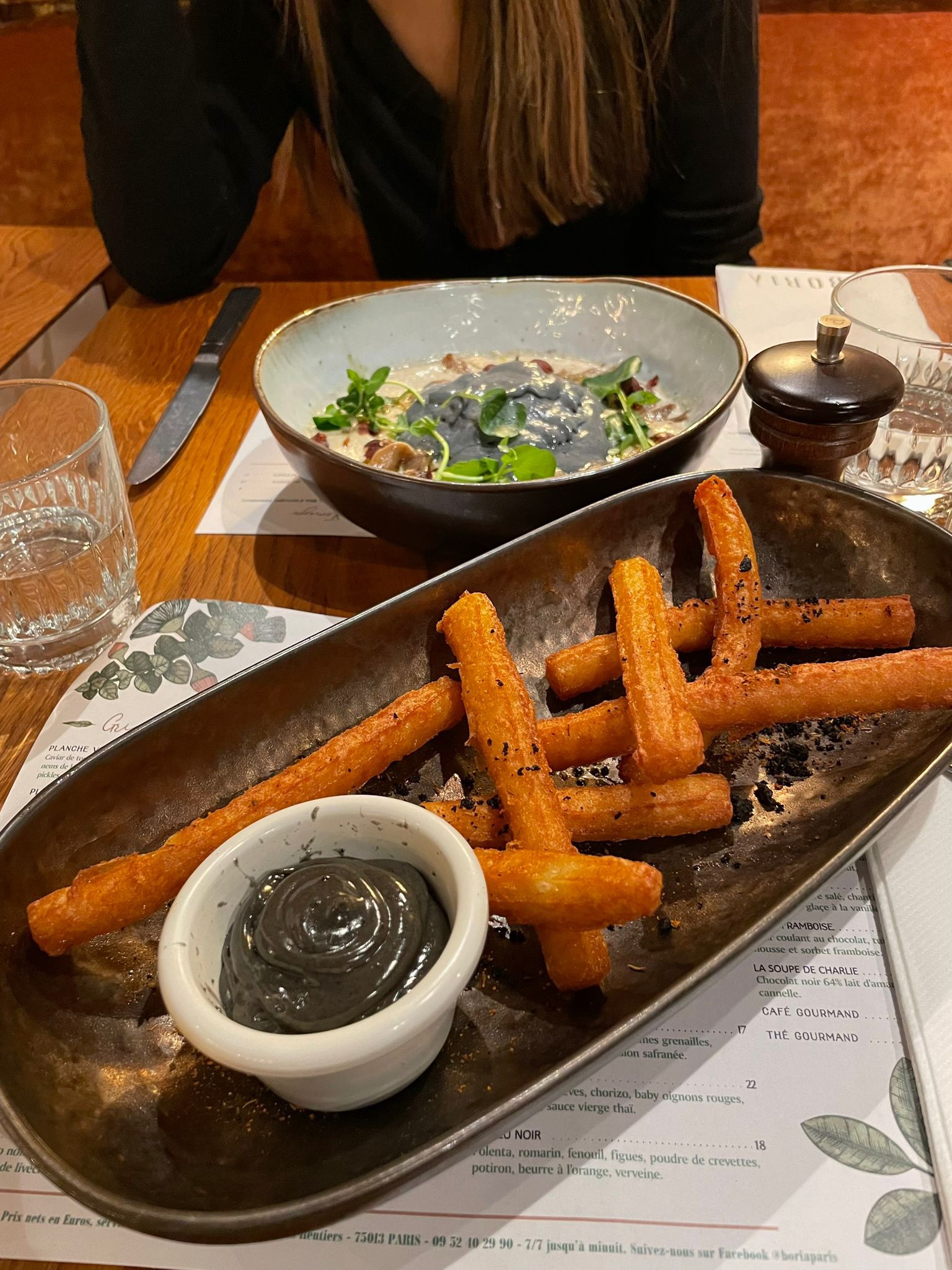 Au total, 3h sur place pour une entrée partagée (9€ les 4 petits churros, ça pique...), 3 plats et 2 desserts... Quand nous arrivons, en plein rush, malgré une réservation la veille, nous attendons au comptoir... Aucun souci, on connaît la restauration... Sauf que des gens qui arrivent après nous se voient proposer une table alors que nous sommes encore en train d'attendre la nôtre... Et sont installés alors que nous faisons le planton...Et, dernière petite surprise pour la fin, dont on se rend compte une fois chez nous bien sûr : on nous a facturé deux verres de vin qui n'ont jamais été commandés : 12.50€ de non consommés ! Tant pis pour nous, nous ne reviendrons pas.