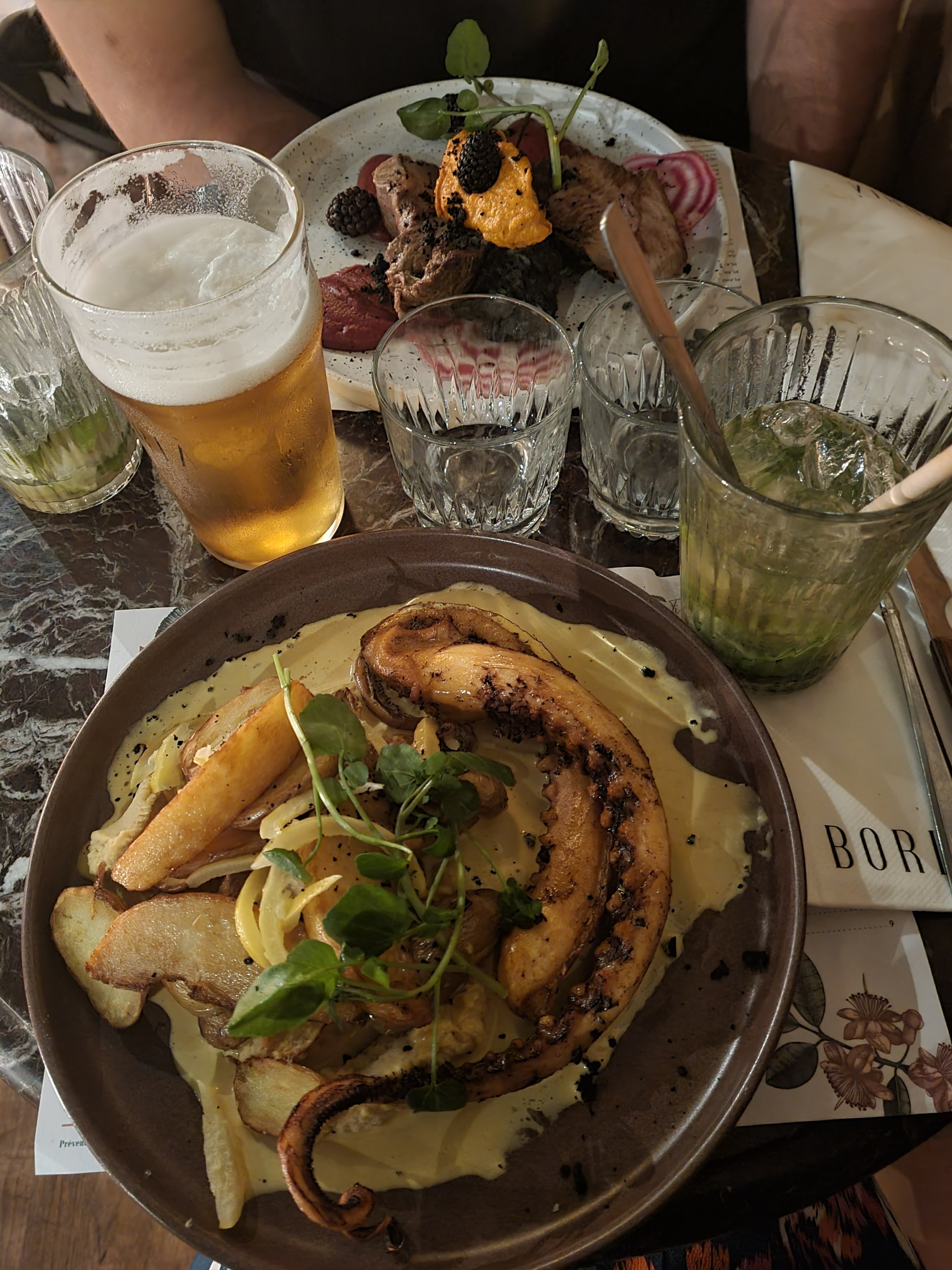 Délicieux, une jolie carte. Cuisine très creative avec de jolies saveurs. J'adore. Le cadre est super sympa avec en sous sol une salle à la déco cosy et jne jolie terrasse à l'étage.