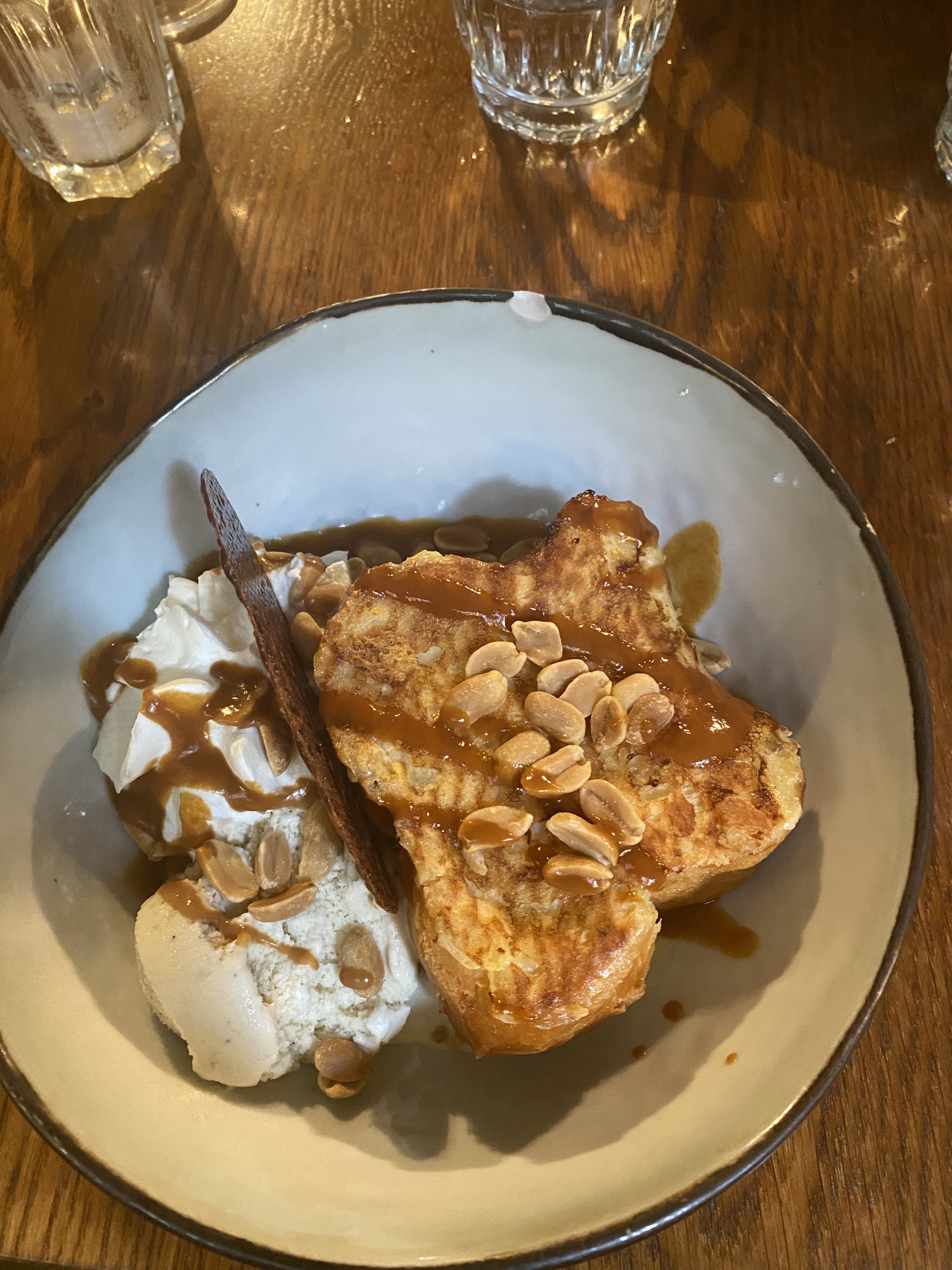 Très bonne brasserie, le plat du jour était filet de canette purée de panais et en dessert crème brûlée a la vanille bourbon