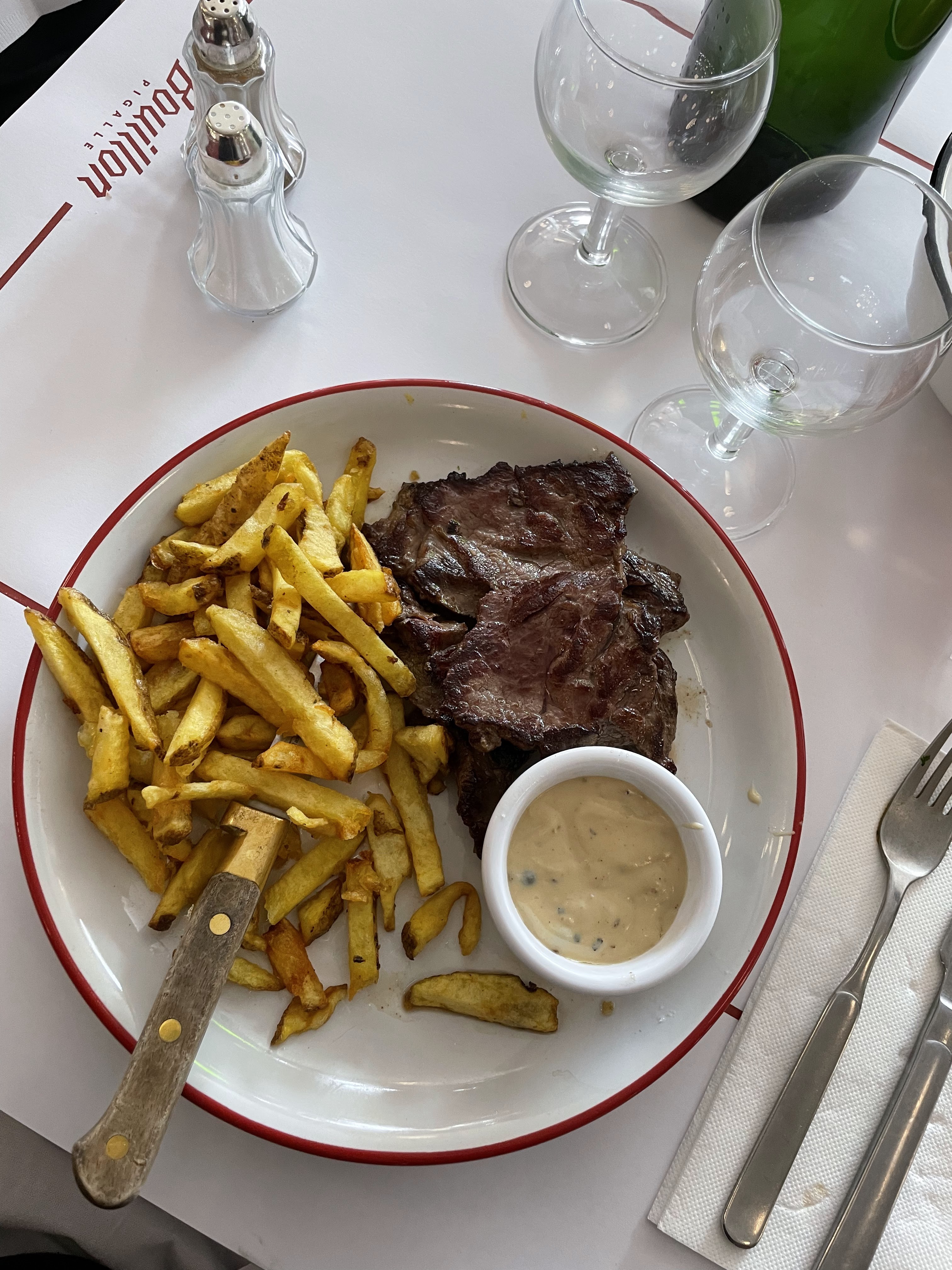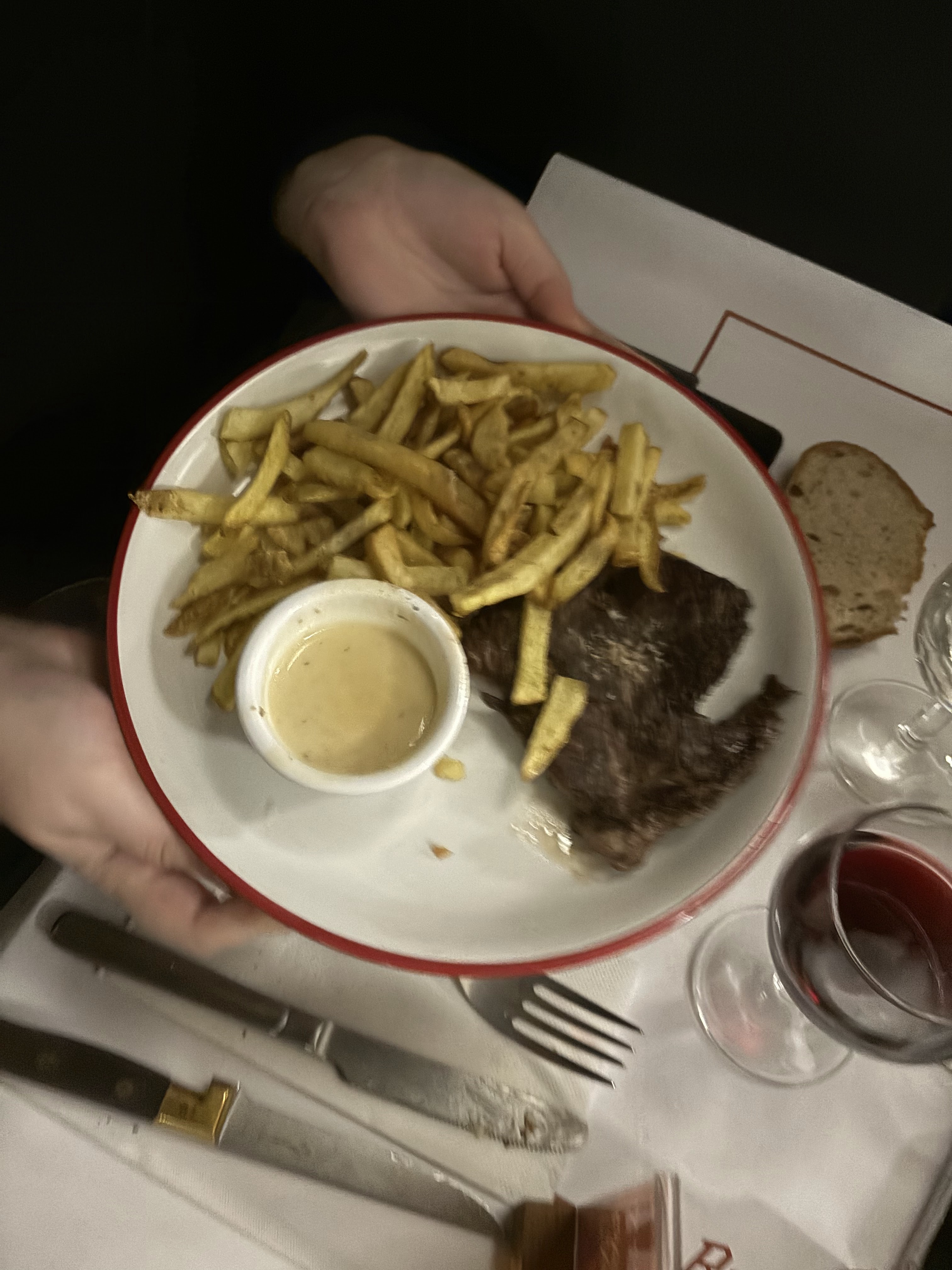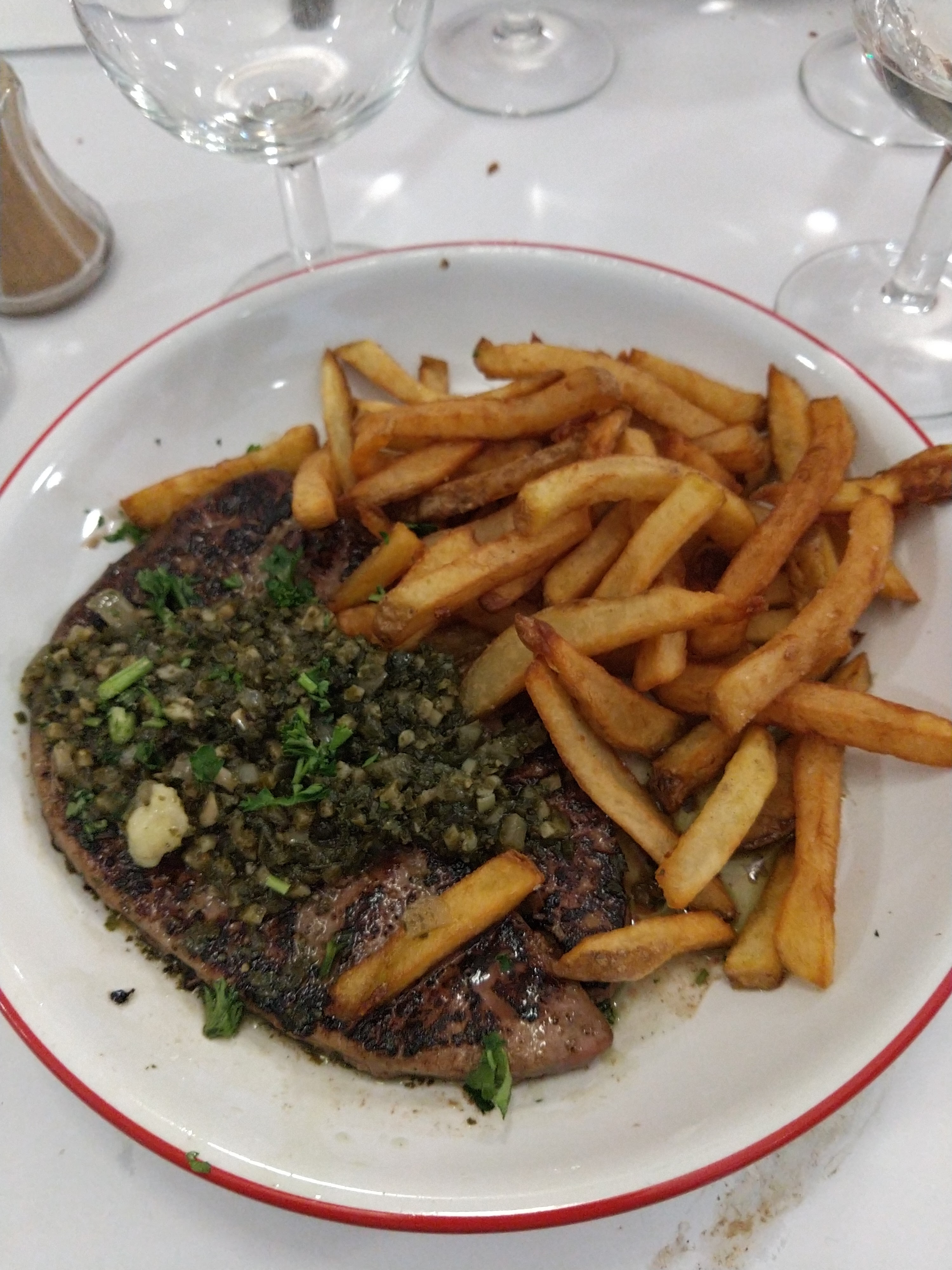 On a pu dîner très tard là ce qui était bien. D'habitude on voit la queue mais là on n'a pas beaucoup attendu. Le service était au top, vite et discret. La nourriture était pas mal. Le steak bien saignant comme demandé, le foie de veau pareil. Tout délicieux.