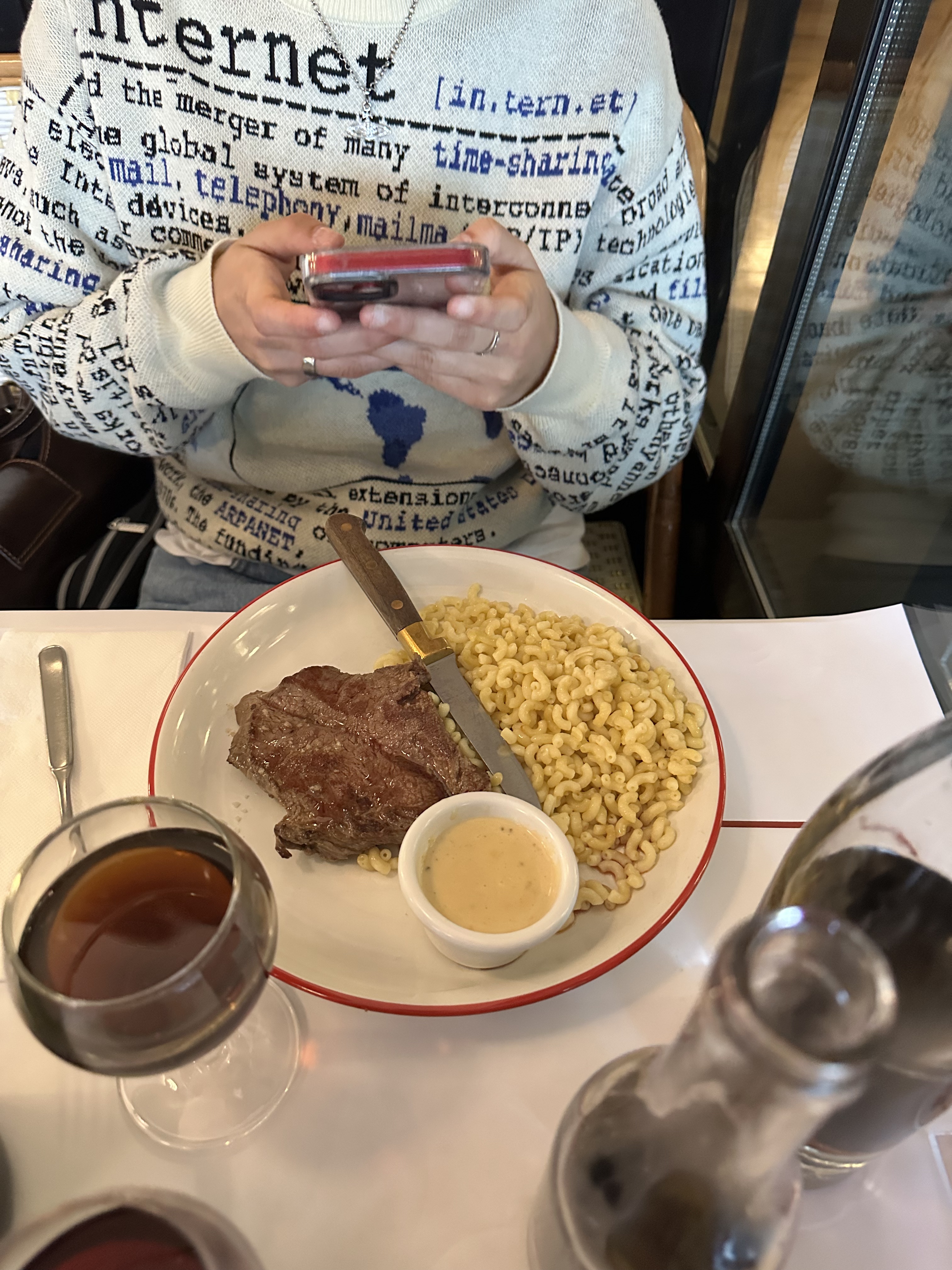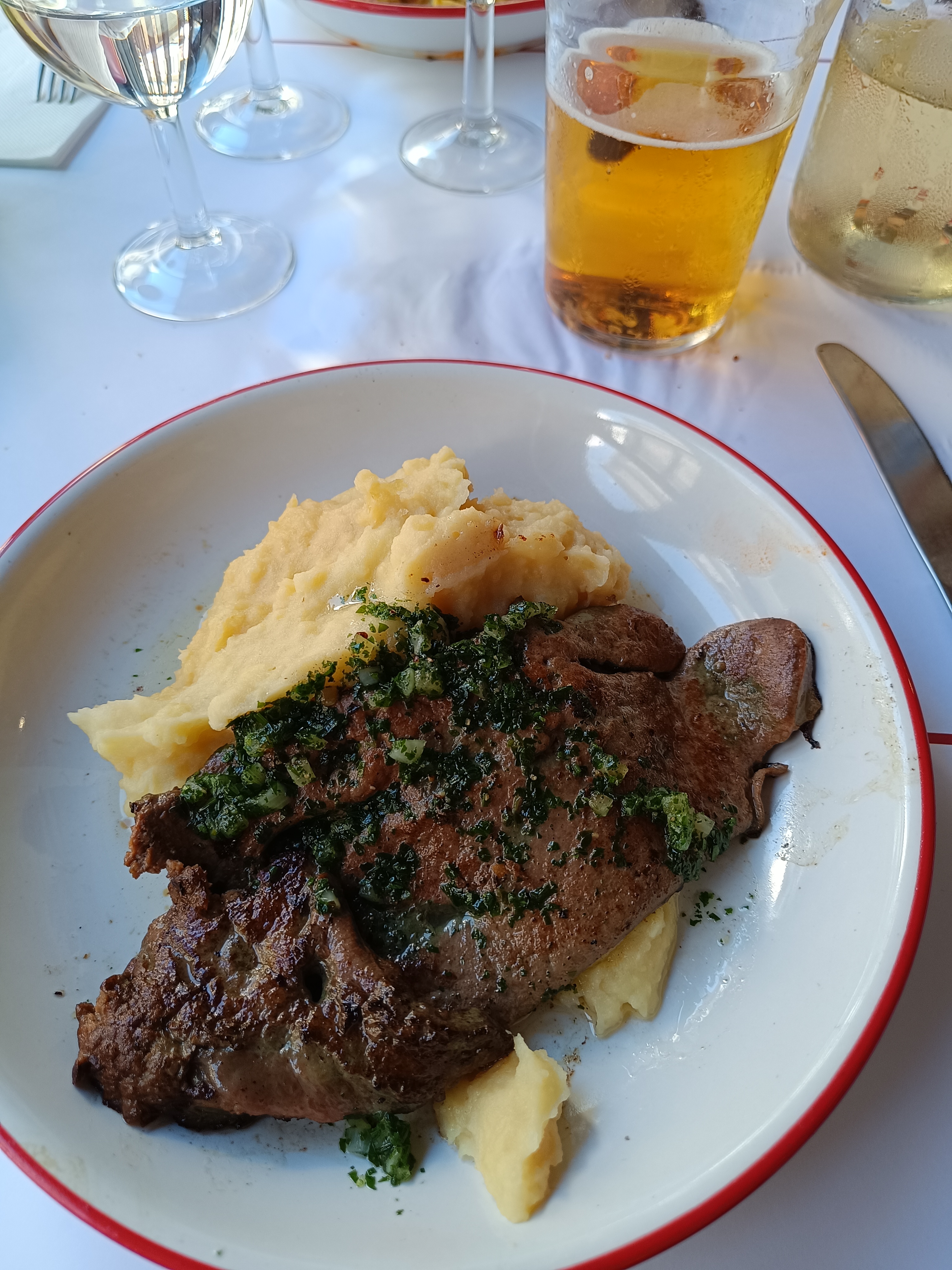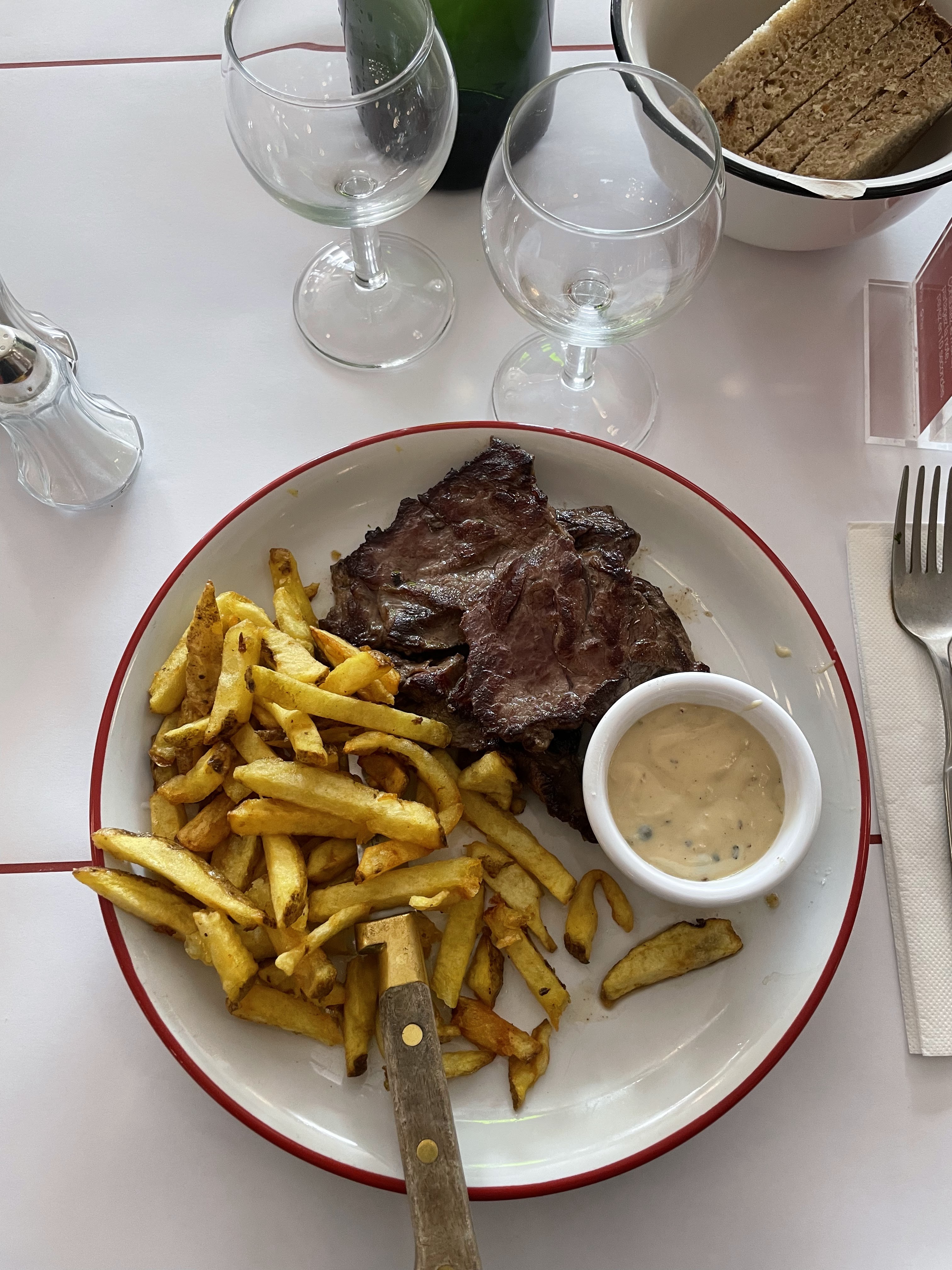 On a pu dîner très tard là ce qui était bien. D'habitude on voit la queue mais là on n'a pas beaucoup attendu. Le service était au top, vite et discret. La nourriture était pas mal. Le steak bien saignant comme demandé, le foie de veau pareil. Tout délicieux.