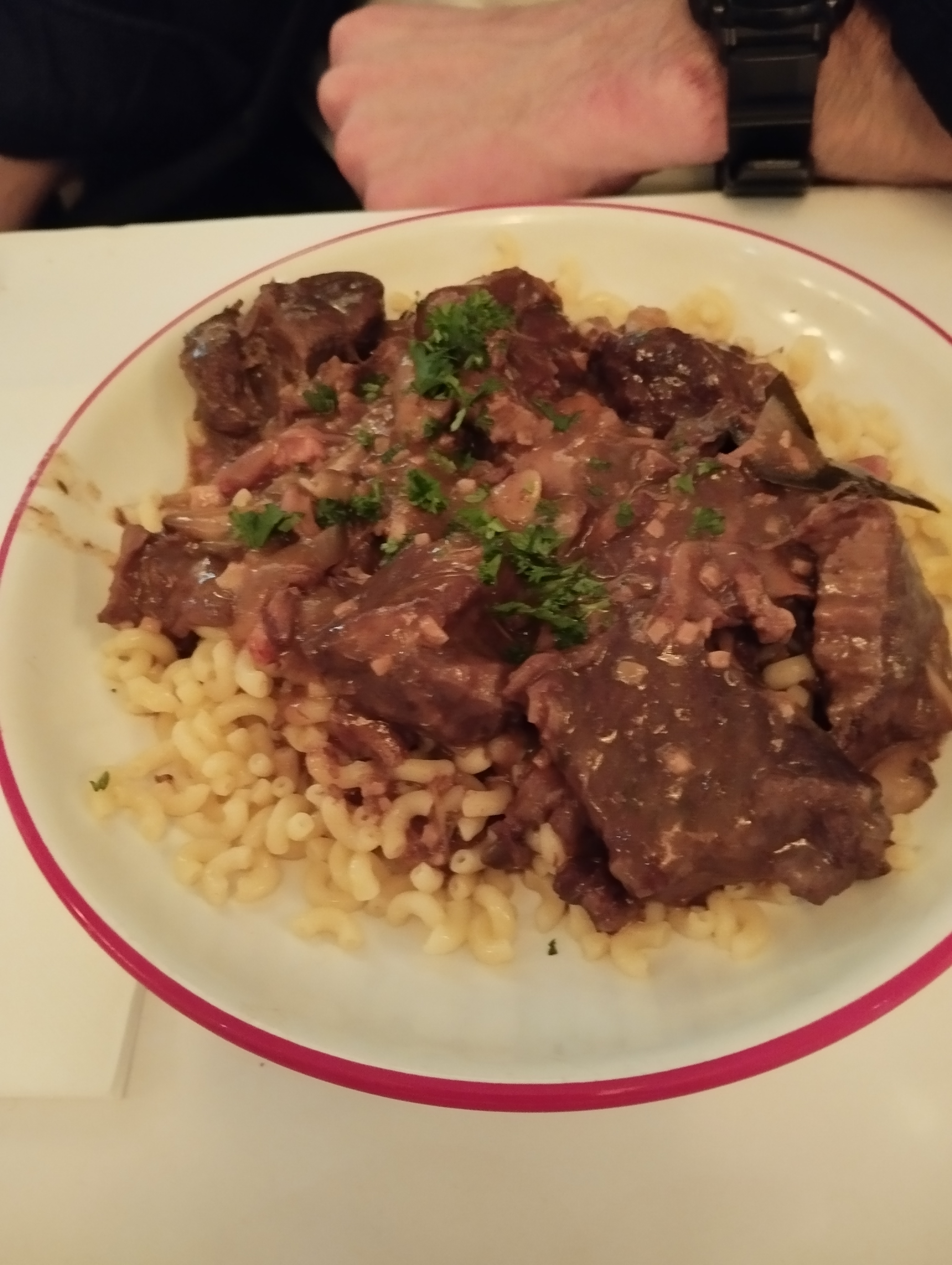 Un plaisir gustatif pour un prix plus que raisonnable ! 3 bières, 2 entrées, 2 plats et 2 desserts pour 50€ !! Rôti de veau braise avec purée, et bœuf bourguignon avec coquillettes excellente ! Profiteroles très bonne et bien chargé en chocolat. Le seul point négatif c'est la queue, 1h.. Cela reste des plats simple mais de qualité ! Malgré ce point négatif je laisse 5* et le service 👍