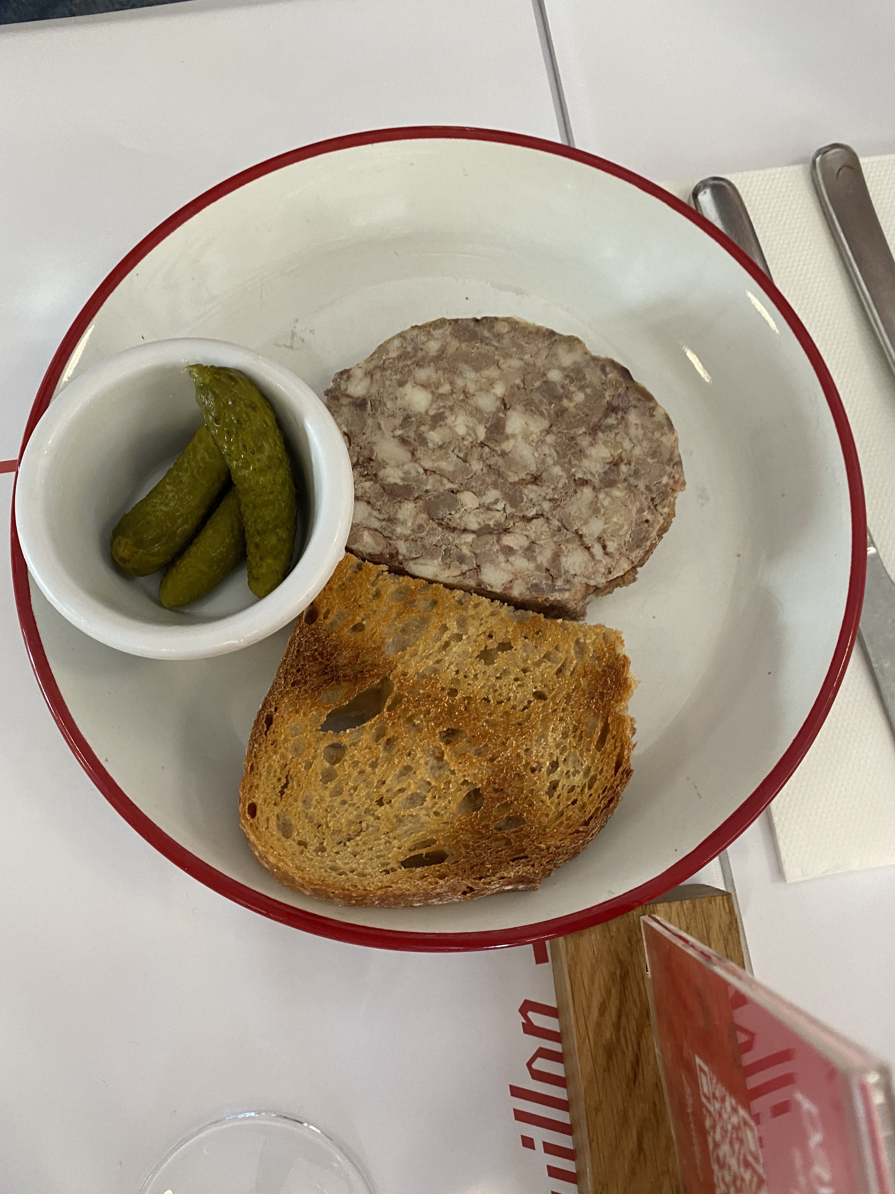 Les plats étaient excellents, je recommande les œufs mayonnaise en entrée et purée saucisse en plat. Les prix défient toute concurrence, un très bon rapport qualité prix. Le seul bémol c’est qu’on est assez proche de ses voisins, mais c’est le jeu. Notre serveur était d’une grande gentillesse et marrant malgré le rush du service. Je recommande grandement !