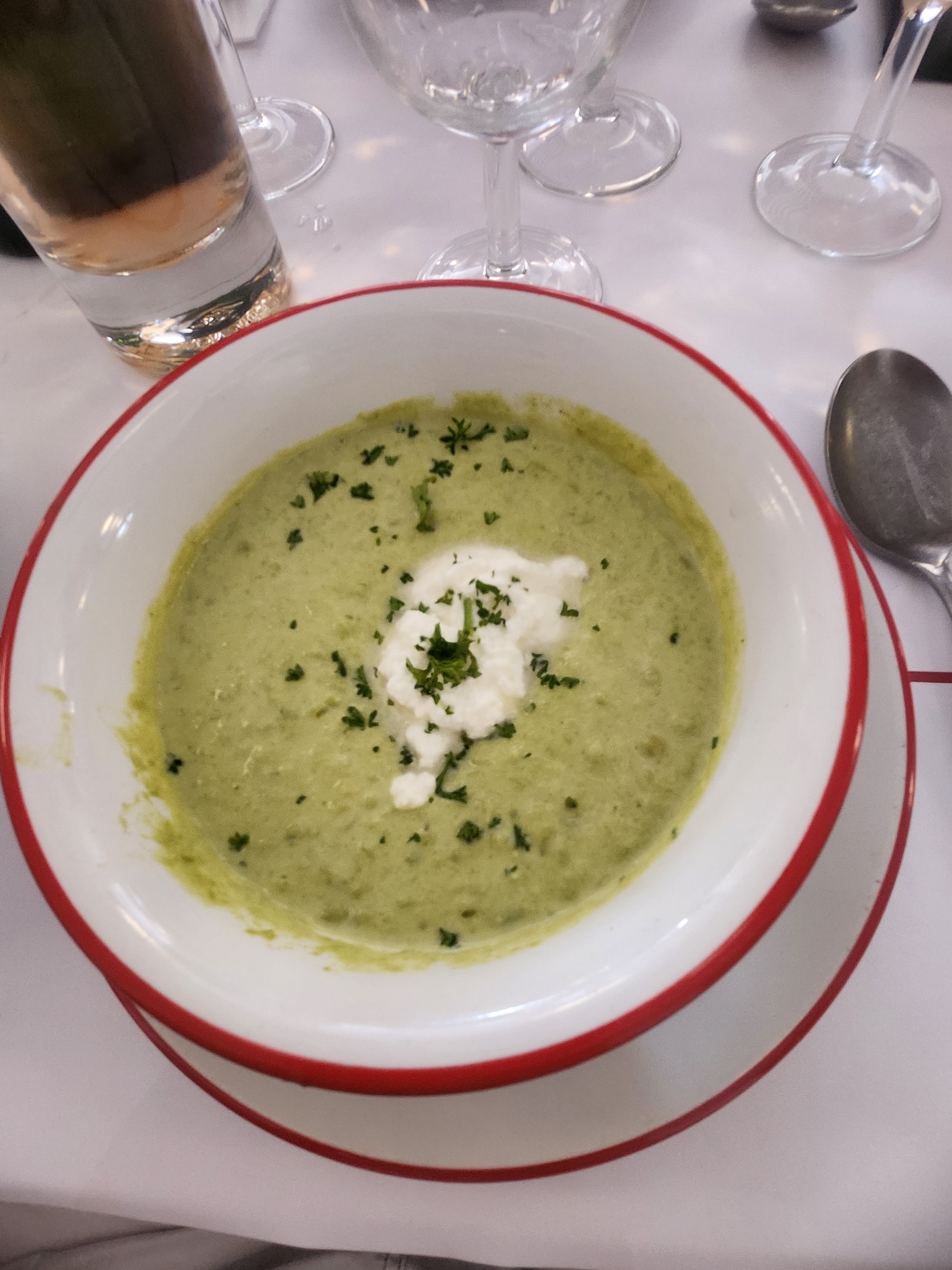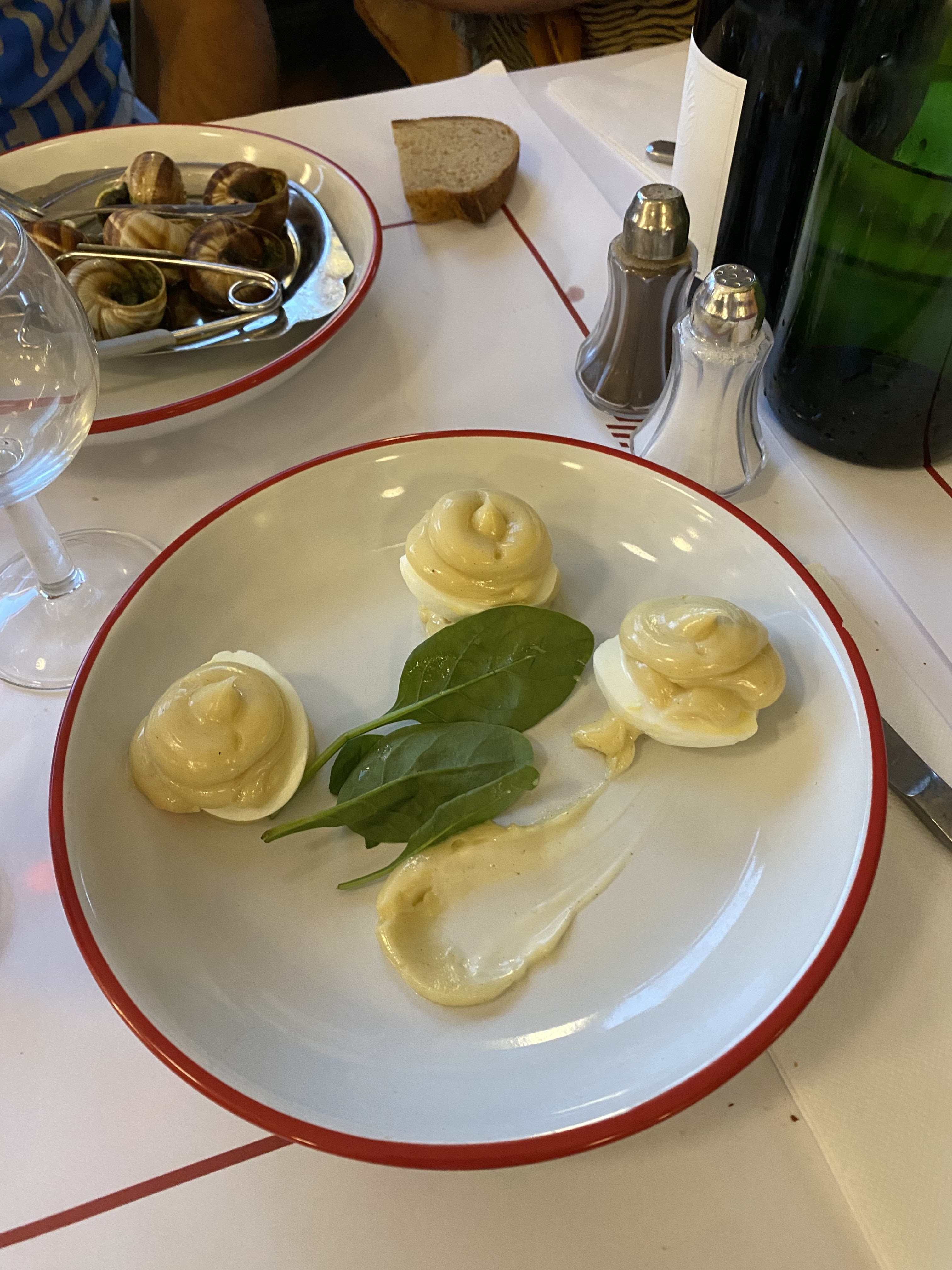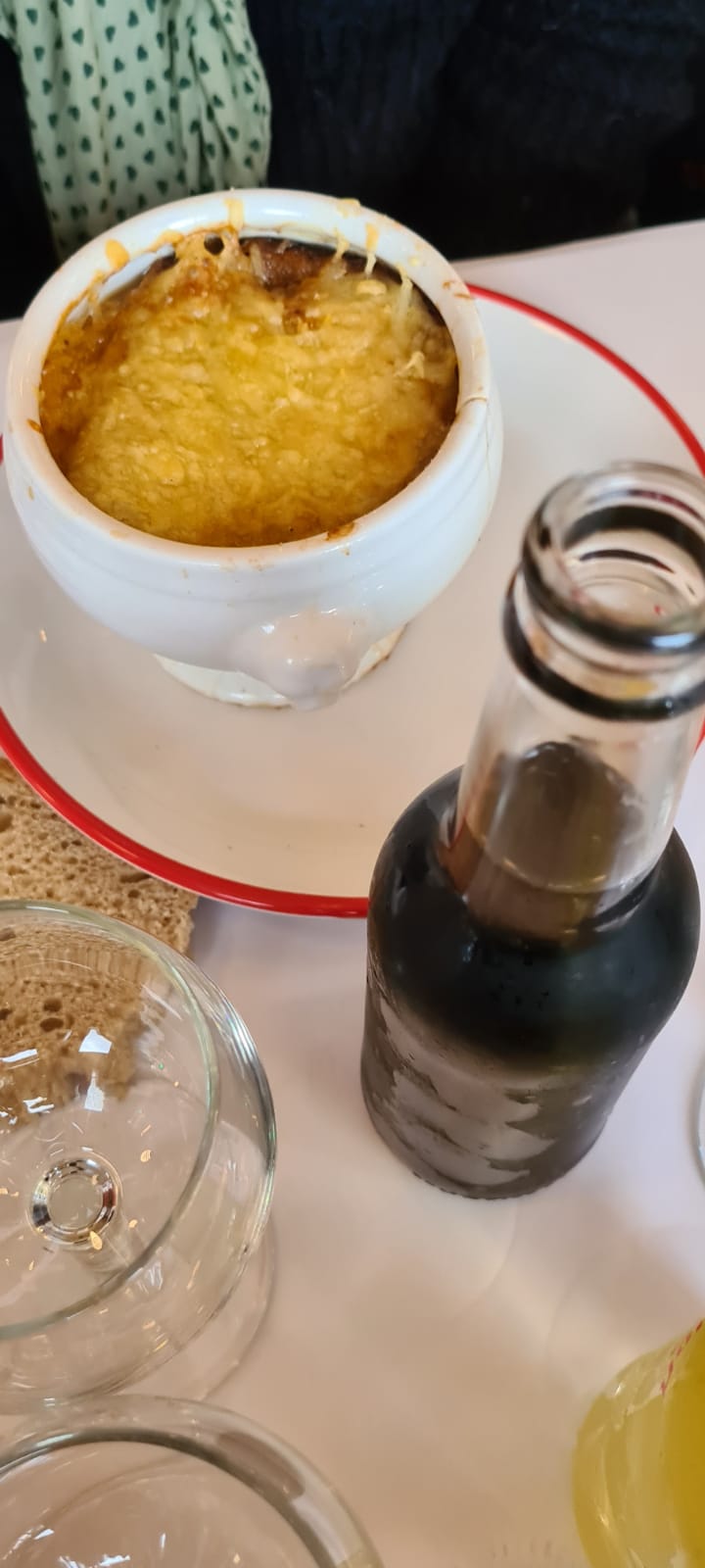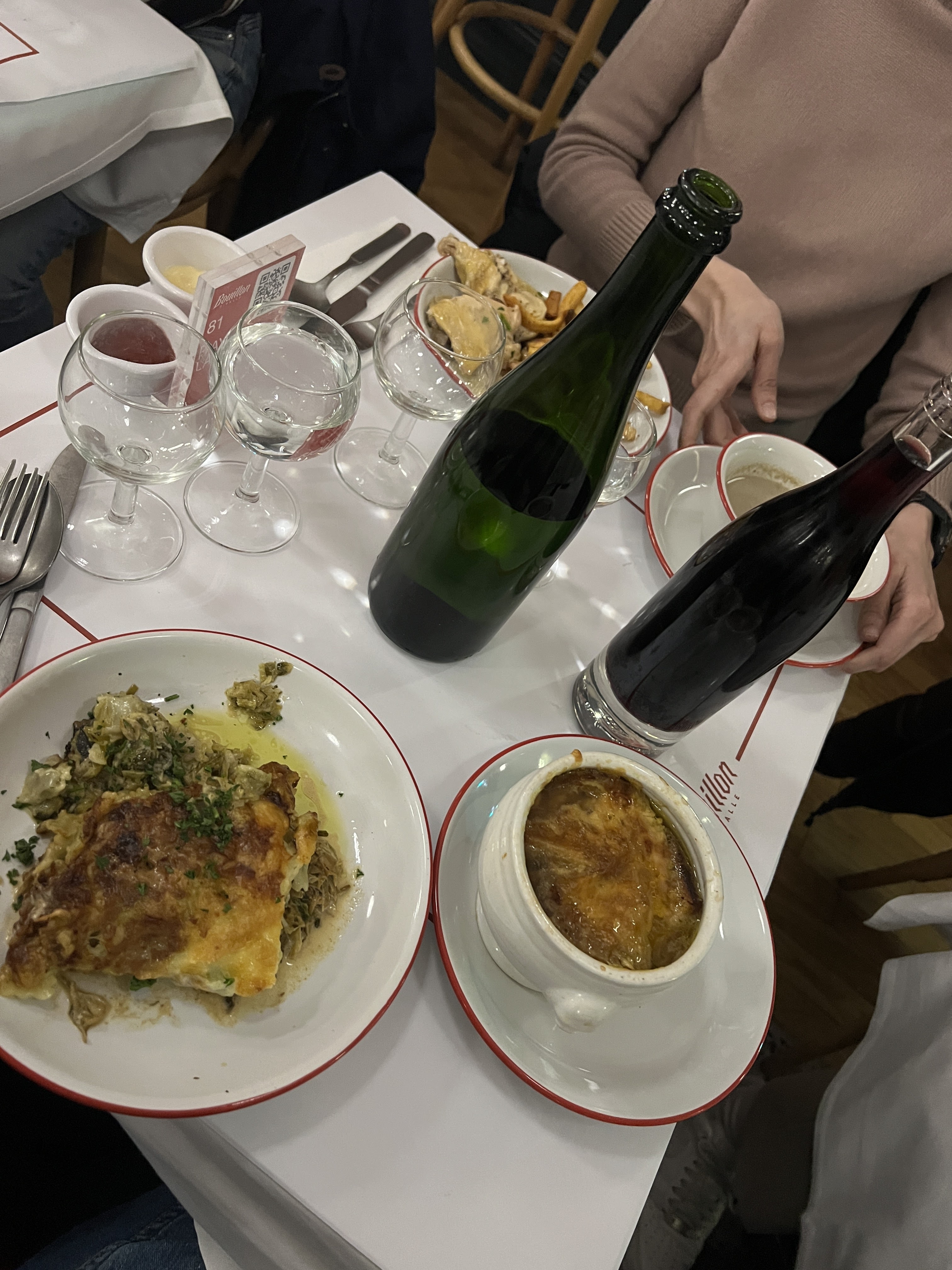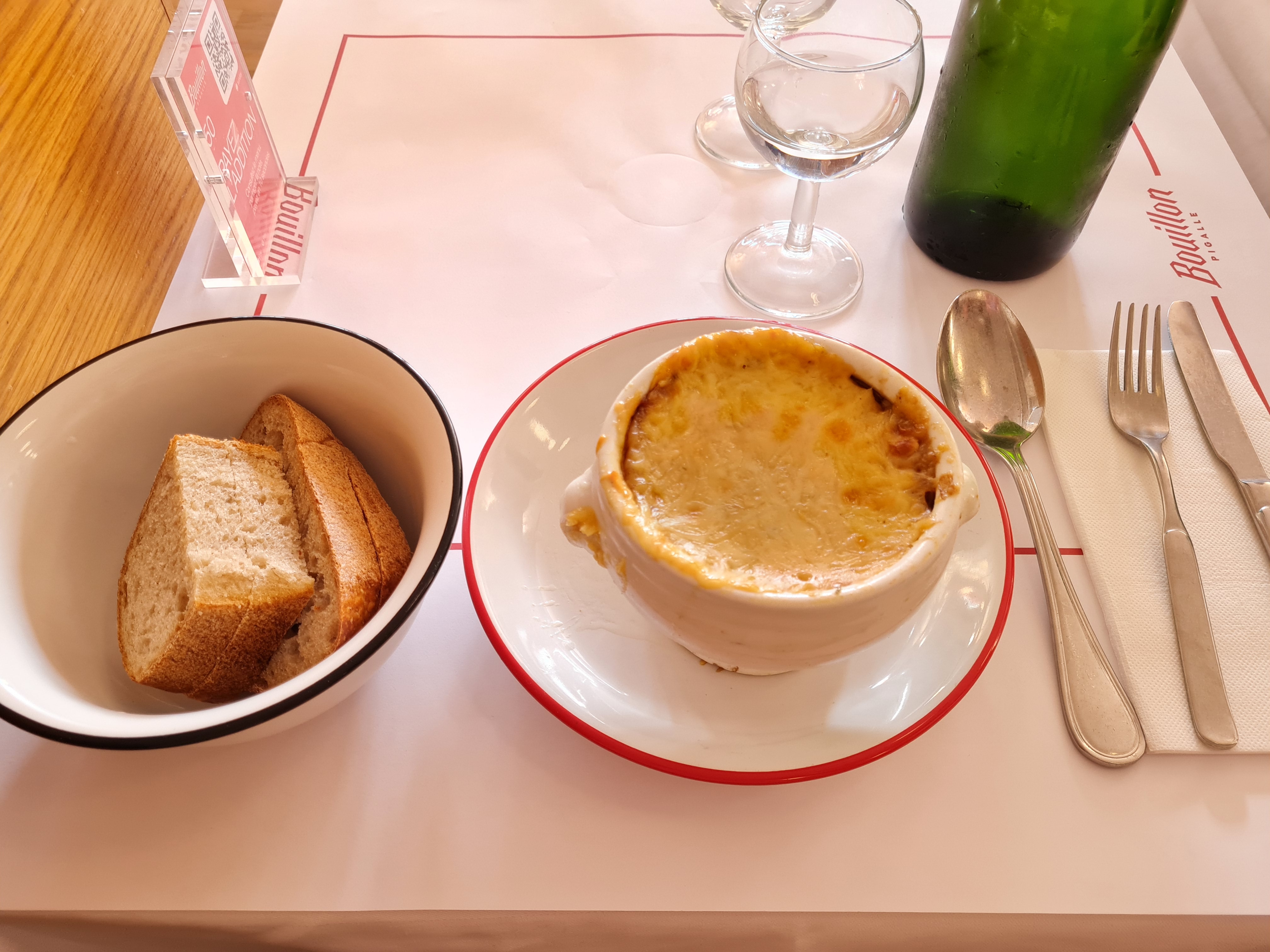 Bouillon C'était un choix spontané et ça a fait mouche ! Super endroit pour découvrir la cuisine française! Soyez prêt à faire la queue, surtout le soir. Nous sommes arrivés vers 13h00 et sommes restés debout pendant environ 20 minutes. Superficie immense, prix très abordables ! Délicieux escargots, salade au jambon - excellent, la soupe à l'oignon est un peu grasse pour moi. Un litre de vin coûte 14-15€) Je le recommande 👌