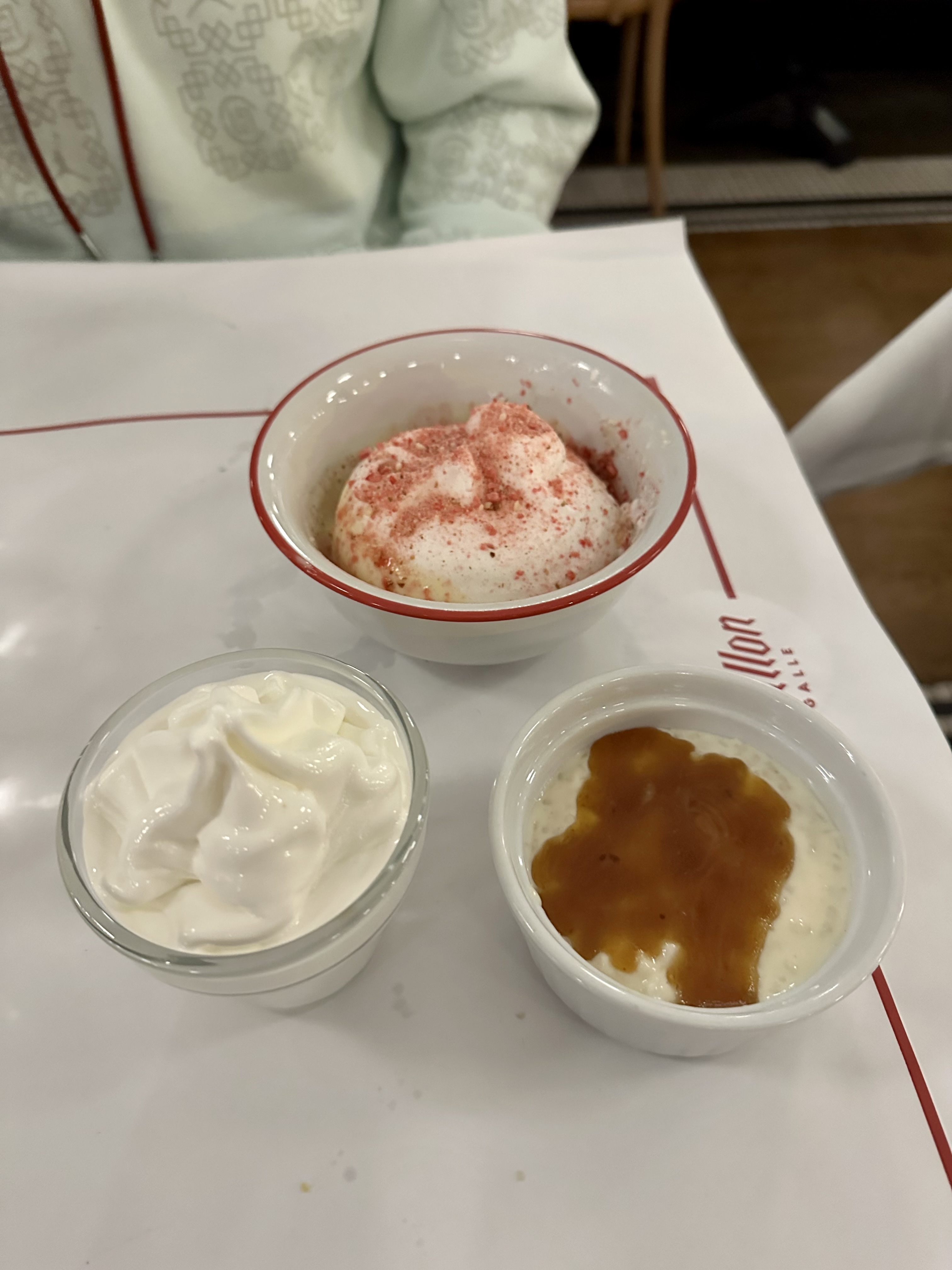 Des plats à des prix défiants toutes concurrences et on comprend mieux pourquoi il y au mois 30 a 40 minutes de queue avant d’accéder à l’entrée du restaurant! Entrée, plats, boissons prévoir au moins 30 euros pour deux couverts! Excellent pour les petits budgets qui veulent manger en salle! La salle est optimisé aucun espace vide n’est perdu! On est proche des autres clients mais cela n’est pas forcément dérangeant! Niveau du goût les saveurs ne sont pas folles voir fade! Cela manque d’assaisonnement. Après pour le prix payé il ne faut pas s’attendre à des saveurs gastronomiques même si les plats semblent raffinés! Les serveurs parlent plusieurs langues et fort! Gros point fort est le paiement autonome de son addition! Cela évite d’attendre des qu’on a finit! Donc pour résumer très petit prix pour manger un semblable de gastronomie sans les saveurs! Excellent pour les petits budgets.