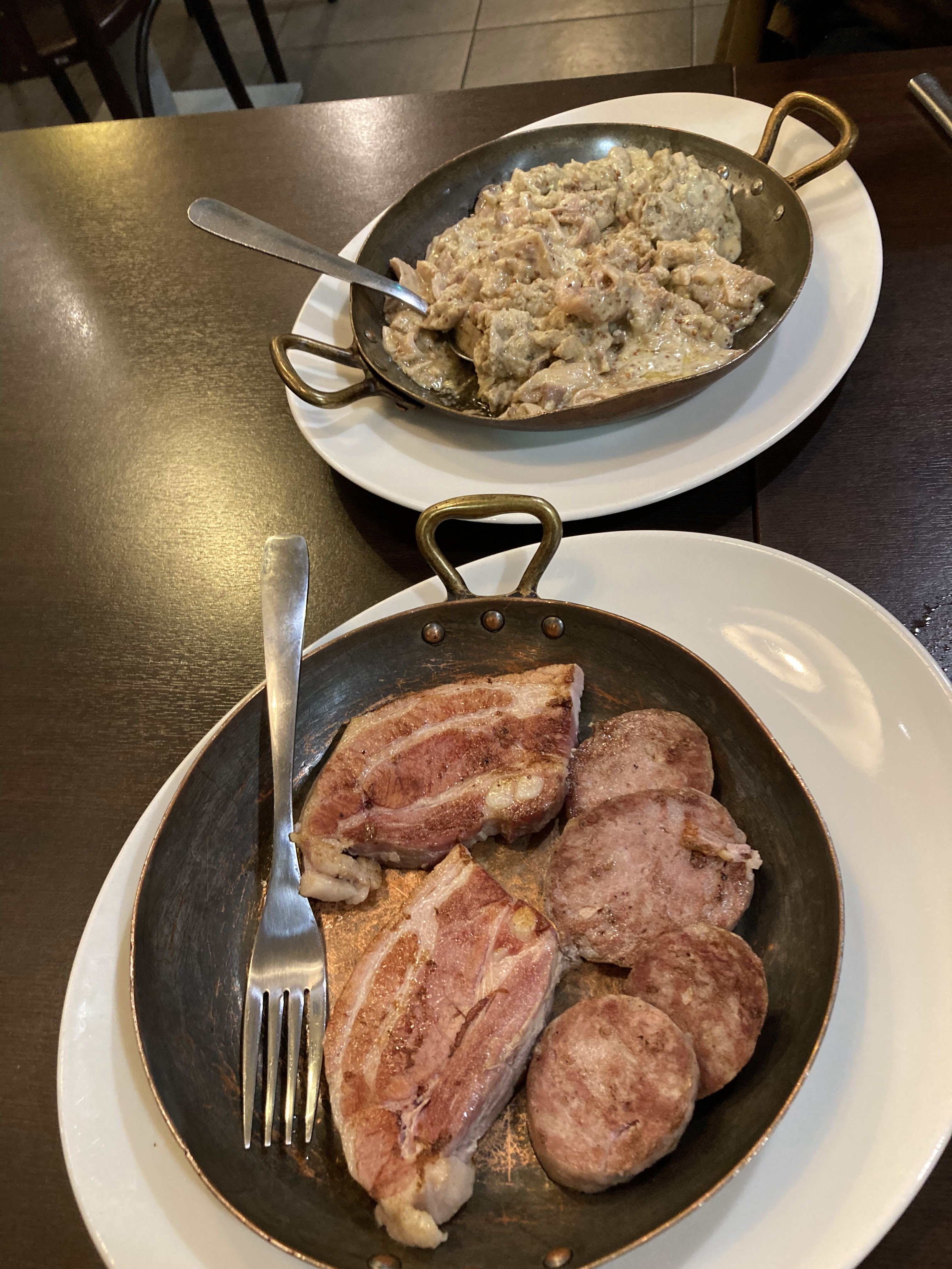 Un vrai machon très copieux à 9h andouillettes, têtede veau, tripe,saucisson lyonnais et gratin avec un pot de cote pour4 .Ambiance sympathique Je recommande Petit bémol cuisine un peu salée.....mais service impeccable et sympathique.
