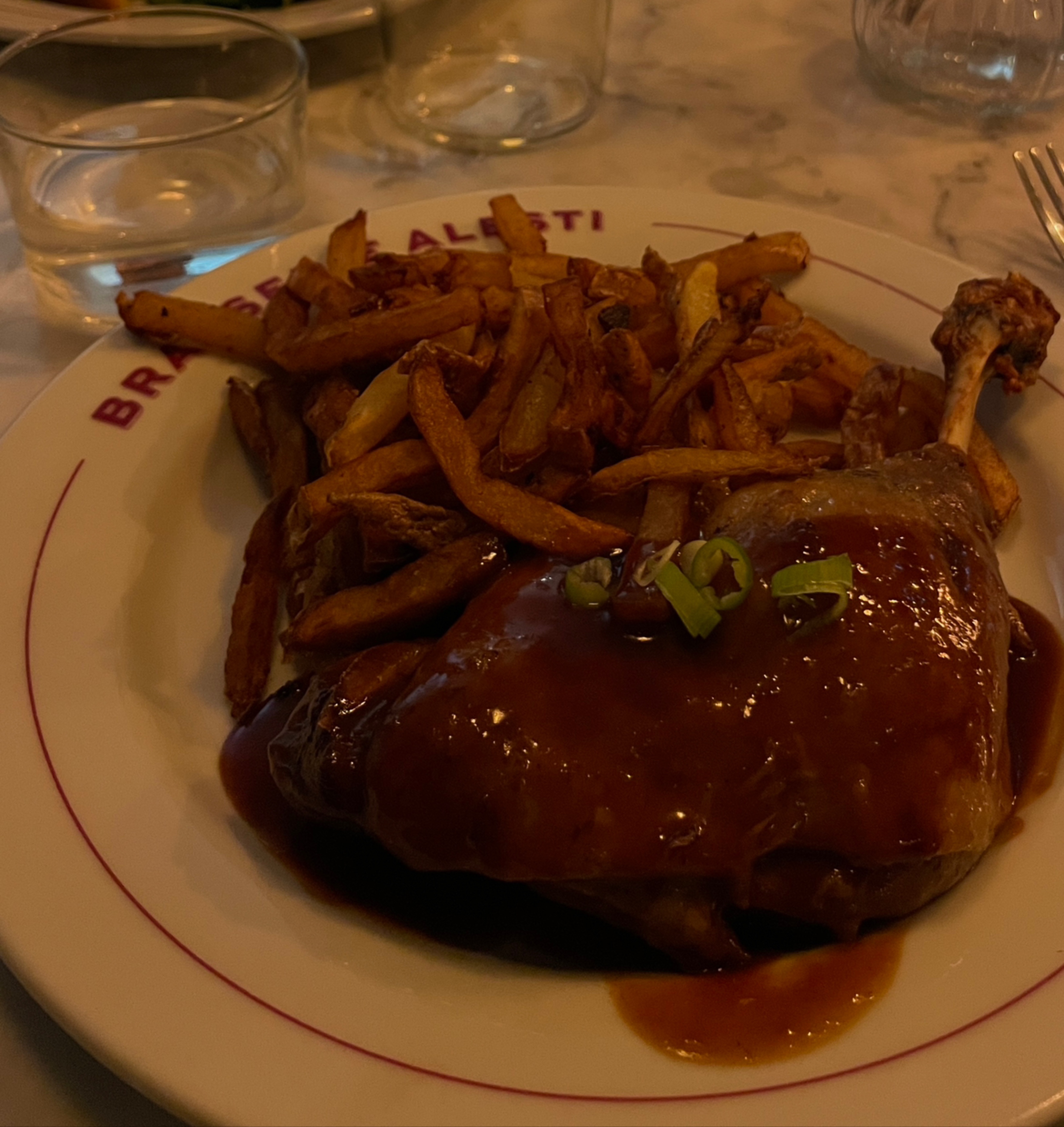 Bonne brasserie ! Jai pris une cuisse de canard confit avec des frites et c'était très bon ! Le lieux est sympa