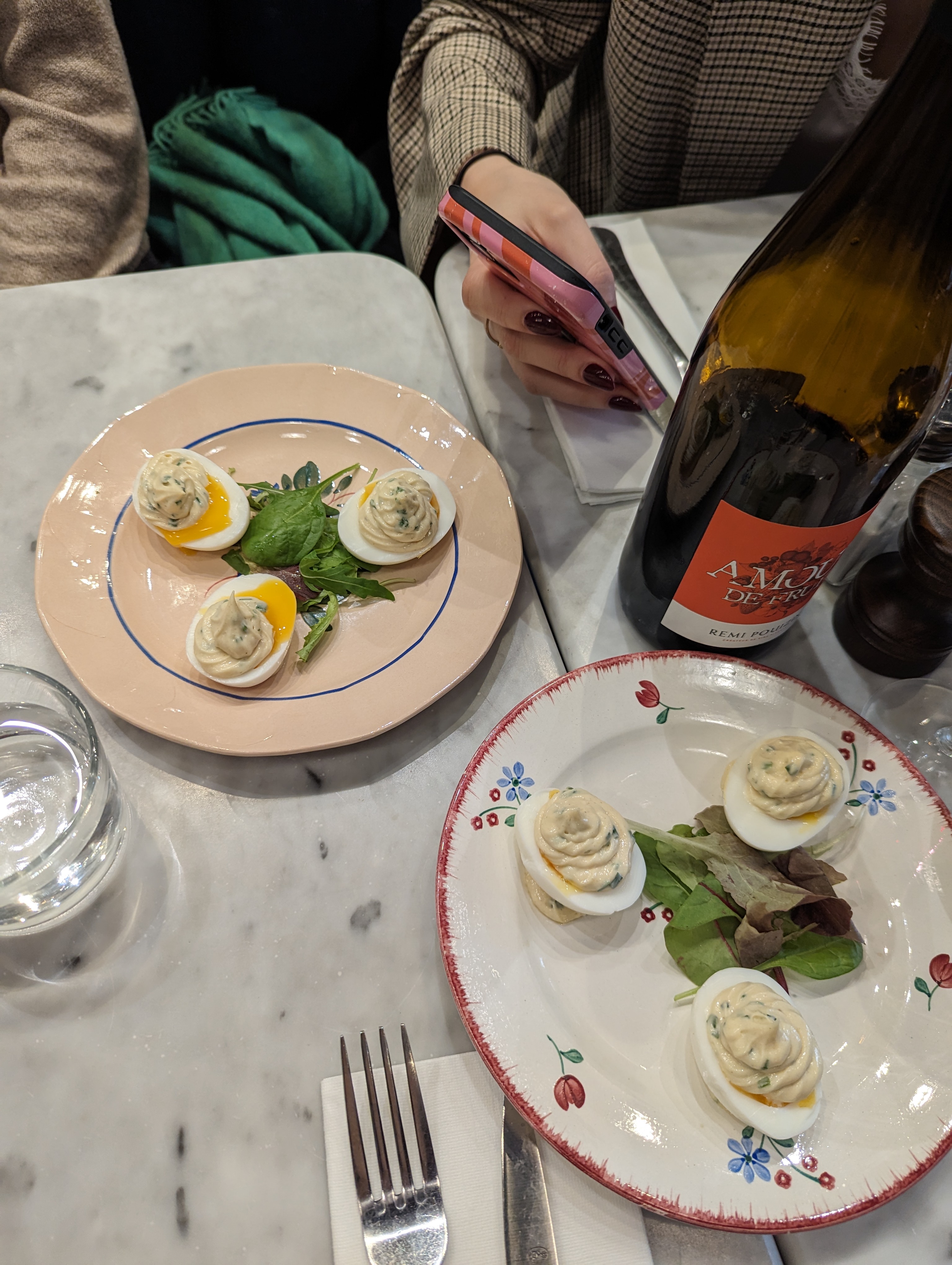 Les meilleurs oeufs mayo que j'ai pu goûter ! Une mayonnaise maison incroyable et un jaune d'oeuf crémeux, c'est vraiment à essayer ! L'esprit de la brasserie à la Française à l'ancienne coexiste parfaitement avec une déco moderne. En bref, un lieu très agréable, au service rapide et impeccable et des plats typiques parfaitement exécutés avec de bon produits