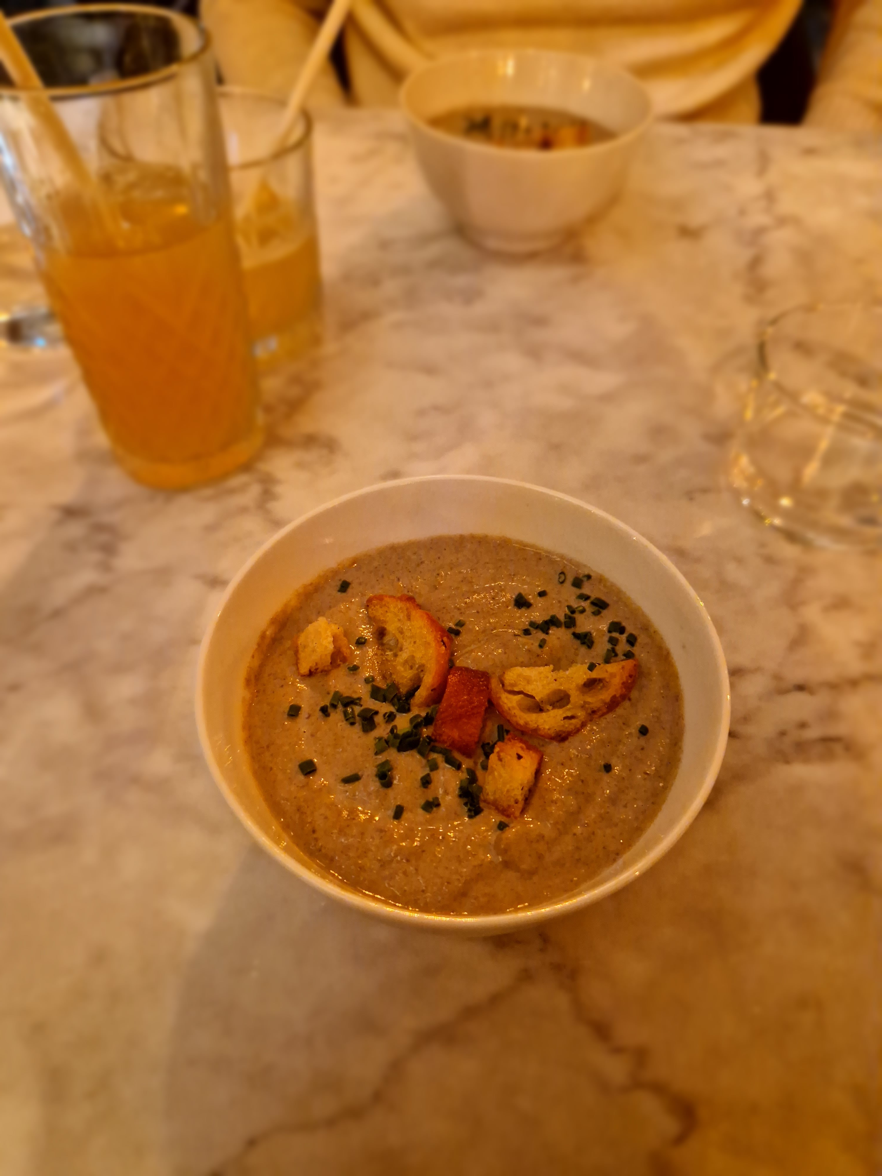 Très bon restaurant, nous y avons bien mangé et les cocktails signatures sont excellents. Nous avons apprécié le velouté de champignons en entrée et la pièce du boucher en plat. Ne partez pas sans prendre un dessert, c'était l'une des meilleures parties du repas: mousse au chocolat praliné et tarte citron meringuée, un délice ! Cependant, nous ressentions trop que les serveurs étaient dans le rush et nous aurions préféré qu'il y ait un petit effort de présentation sur les entrées et les plats.