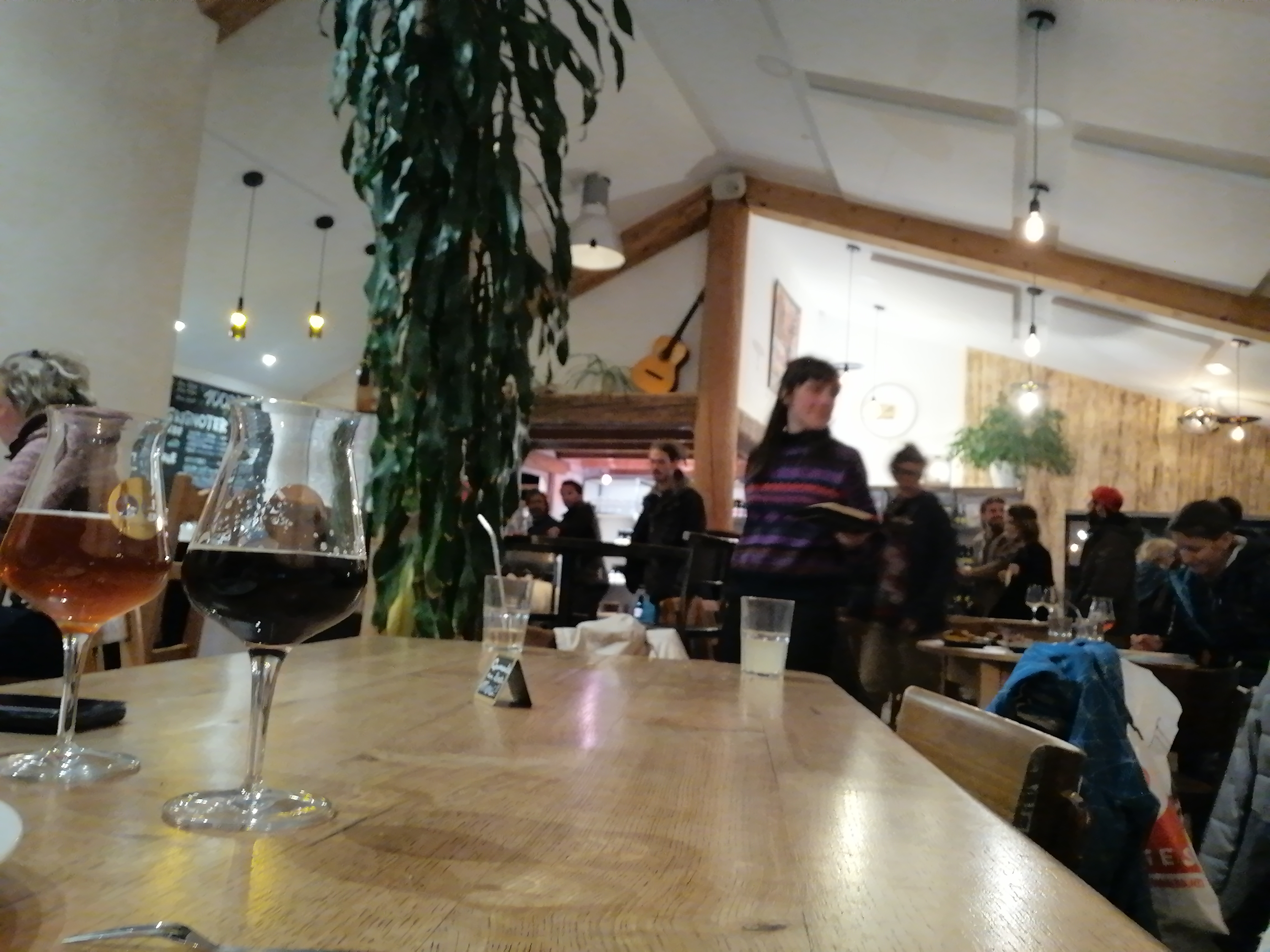 Testé puis retesté une 2ème fois durant notre semaine de vacances sans neige.. super endroit. Bières brassées très bonnes. Jeux de société (adultes, enfants) sur place et quelques coins bibliothèque pour les enfants notamment. Brasserie que je recommande.