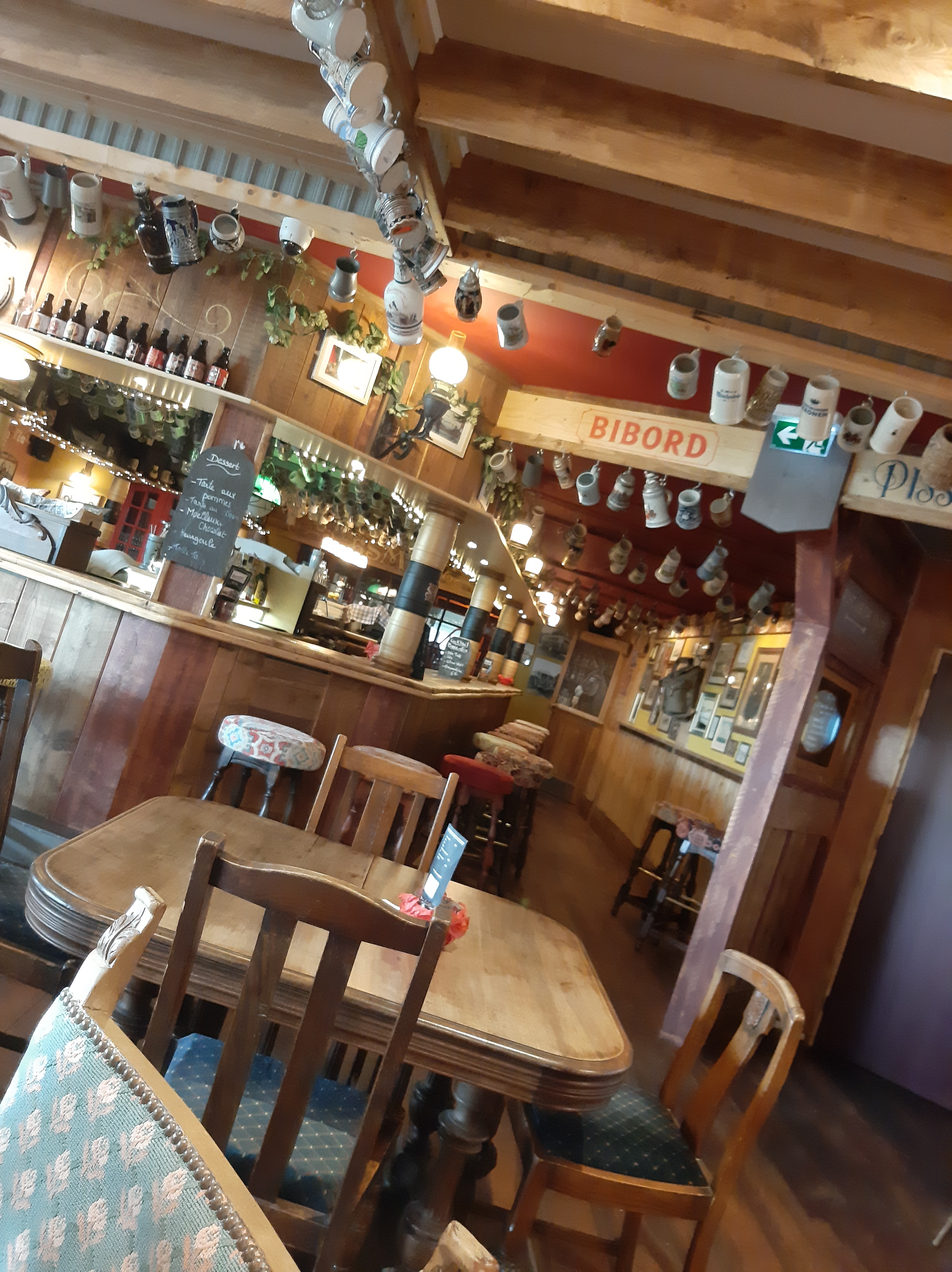 Très bien pour boire une bière et encore mon verre avait autant de mousse que de bière. Par contre pour y manger je ne recommande pas du tout. Rien n’est fait sur place, que des bocaux réchauffés au micro onde servis avec une salade et pour le dessert pareil un coup de micro onde. Bref il y a de meilleures adresses pas loin.