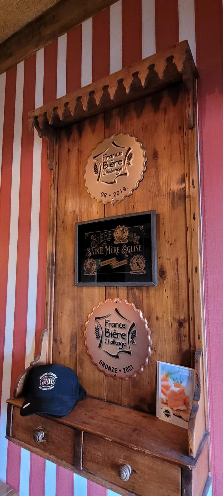 Lieu atypique. Belle décoration. Endroit sympa à faire si vous passez par ste Mère êglise La bière est bonne...