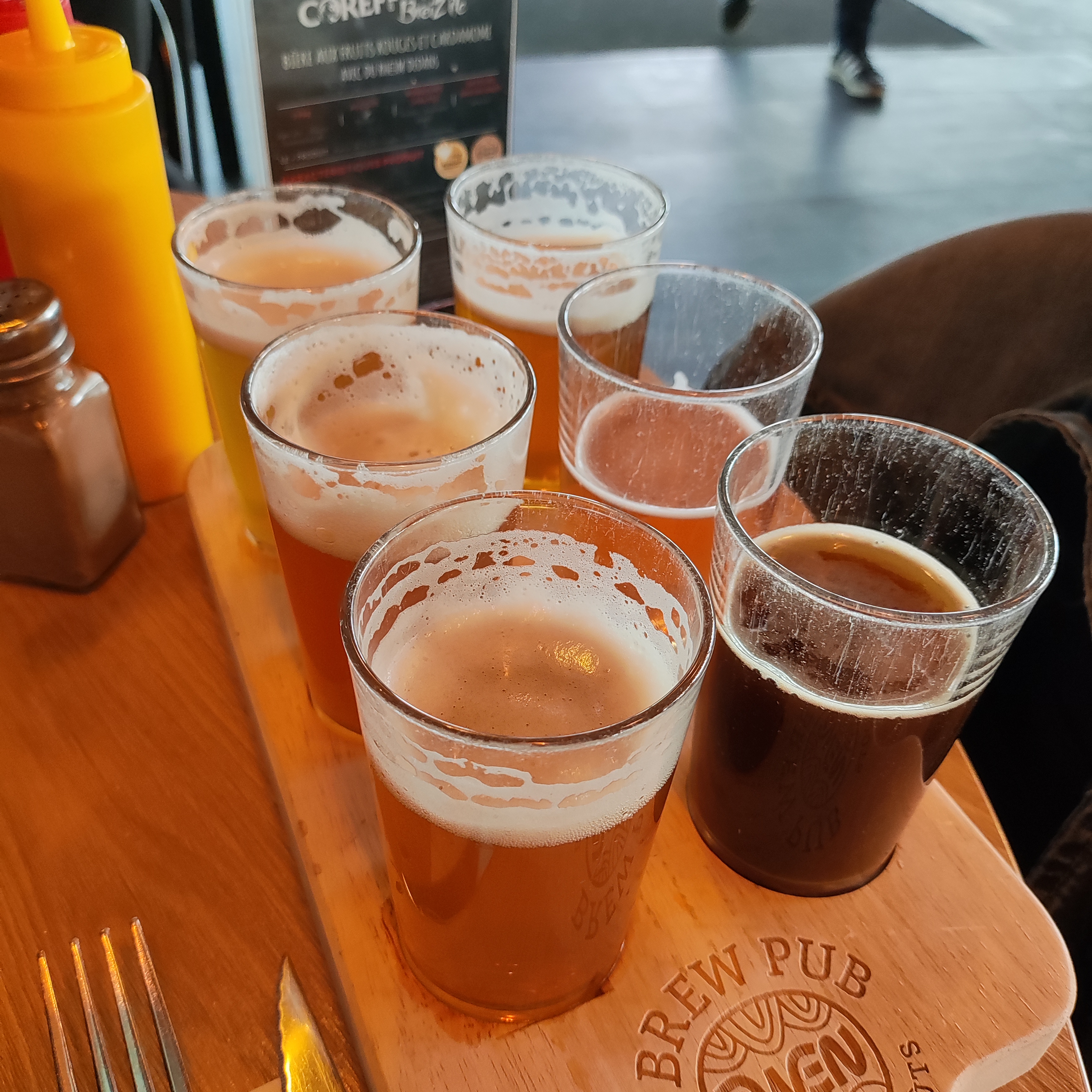Brasserie au top avec bonne bière locale produit sur place pour une grande partie (le reste est local), burgers top, salade césar géante, hot dog miam, planches Fun ! Et leurs urinoirs sont un exemple de l'inventivité humaine. Ce sont tout simplement mes toilettes préférées !