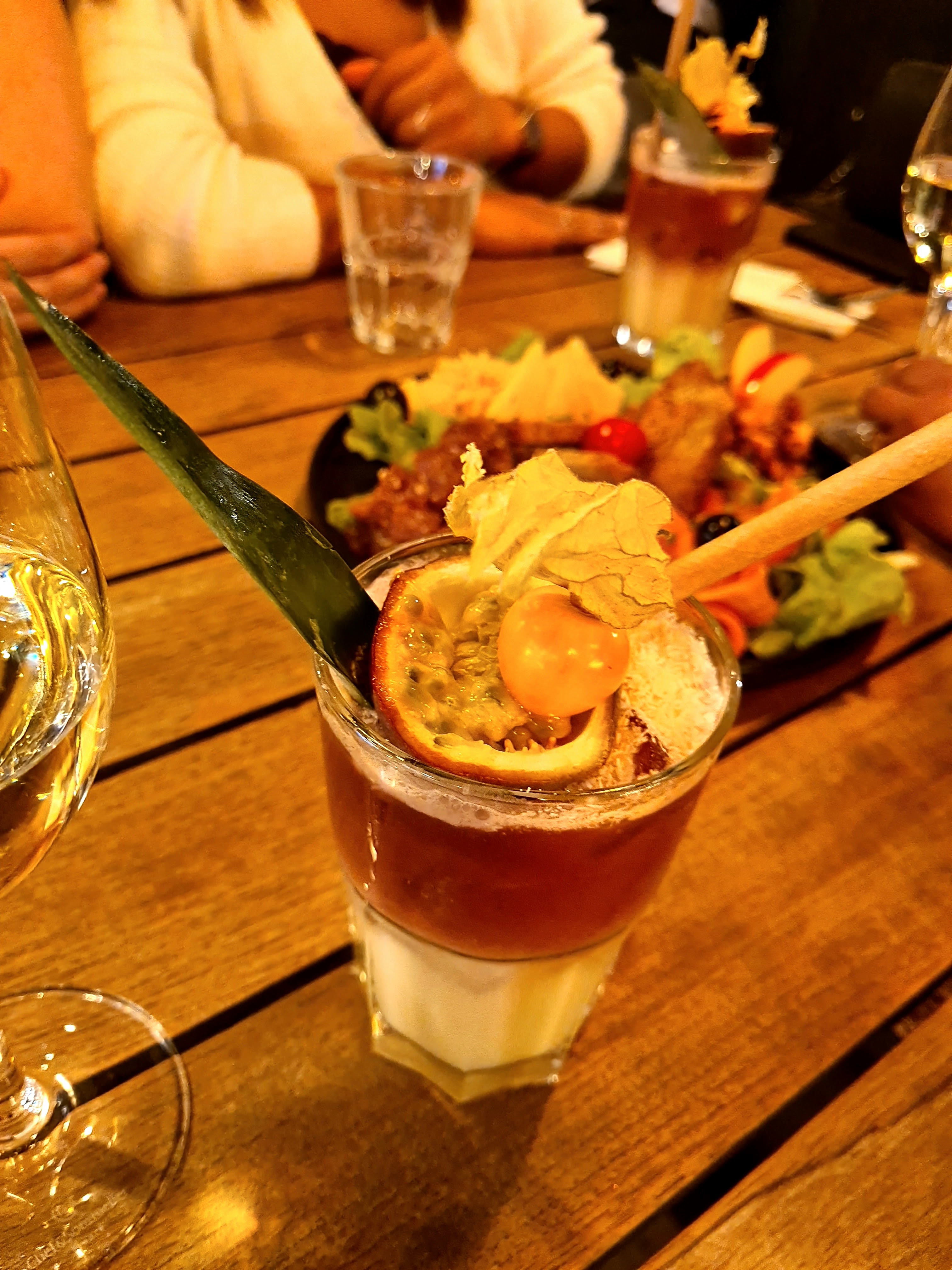 Très convivial ... de magnifiques cocktails pleins de fruits et de couleur ! Un vrai show de mixologie ! De bonnes planches de charcuterie et fromage !