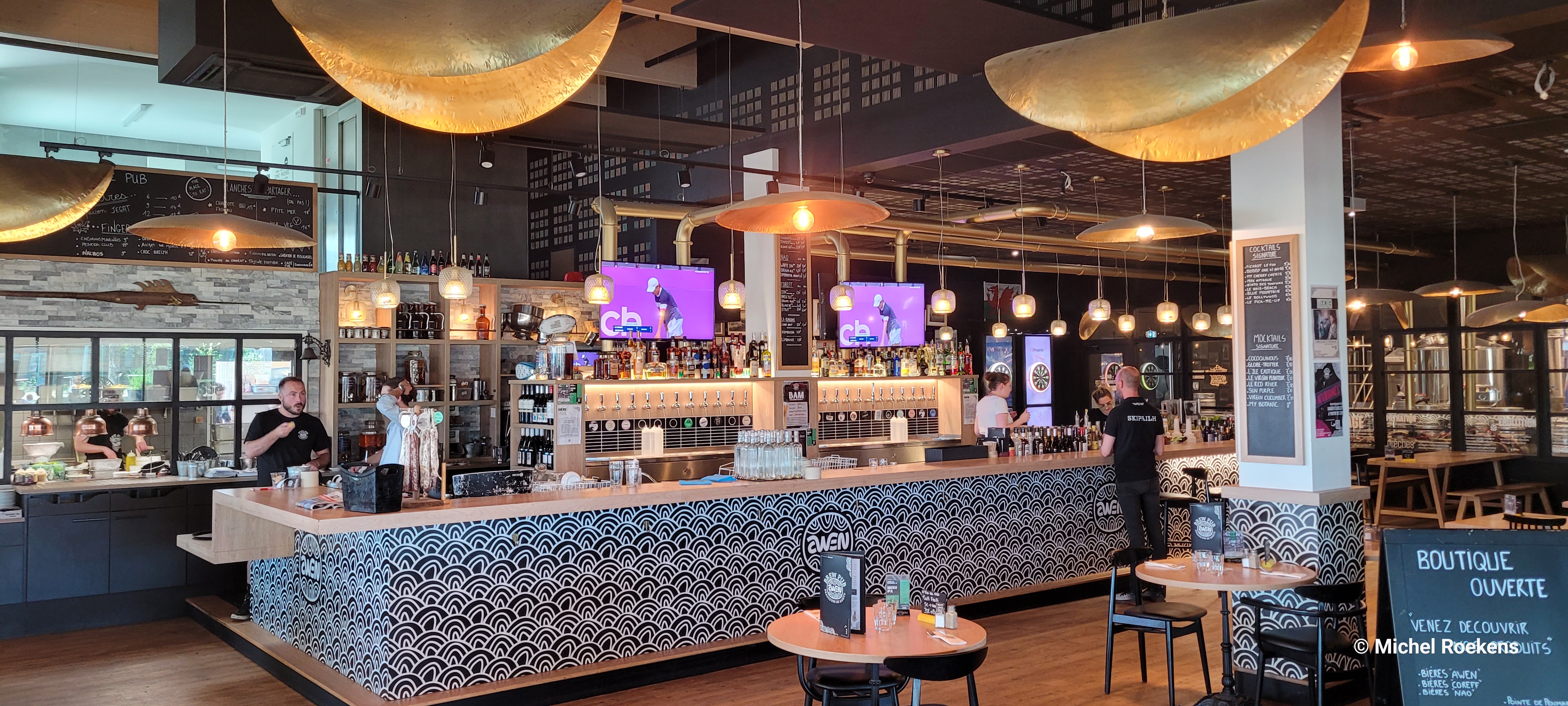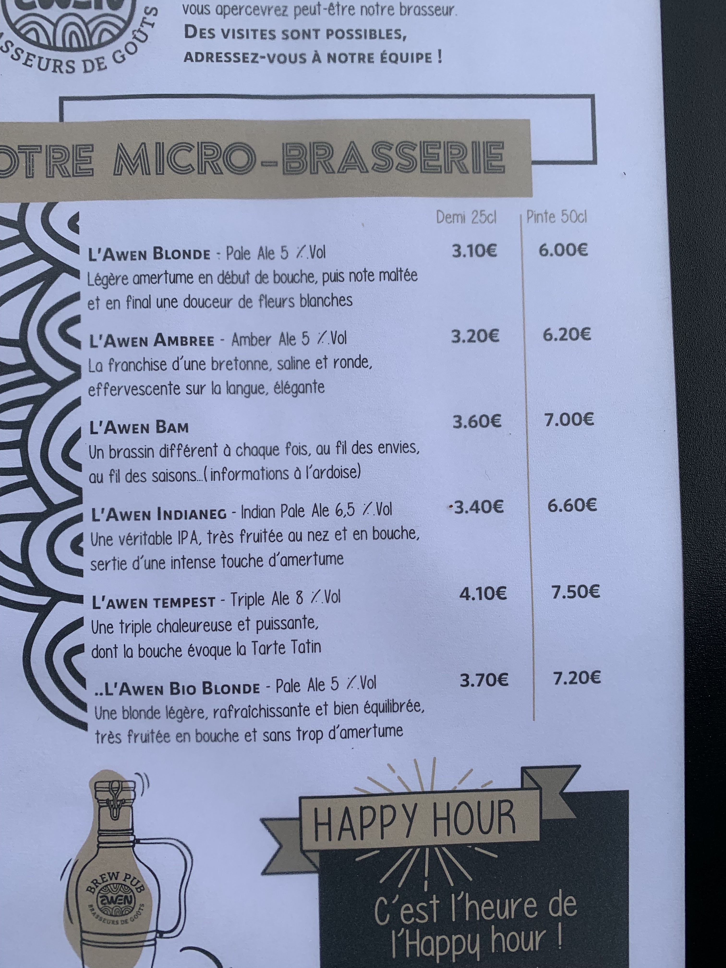 Restaurant très atypique, mais le service fonctionne à merveille, l'ambiance est très bonne. Je ne peux juger que la partie bar, n'ayant pas mangé à ce restaurant, la bière, brassée maison, est excellente. Les toilettes qui sont bien dans le thème de l' établissement sont très bien tenues. Les gestes barrière étant bien appliquées, si vous voulez passer une bonne soirée aller la passer à l'Awen.