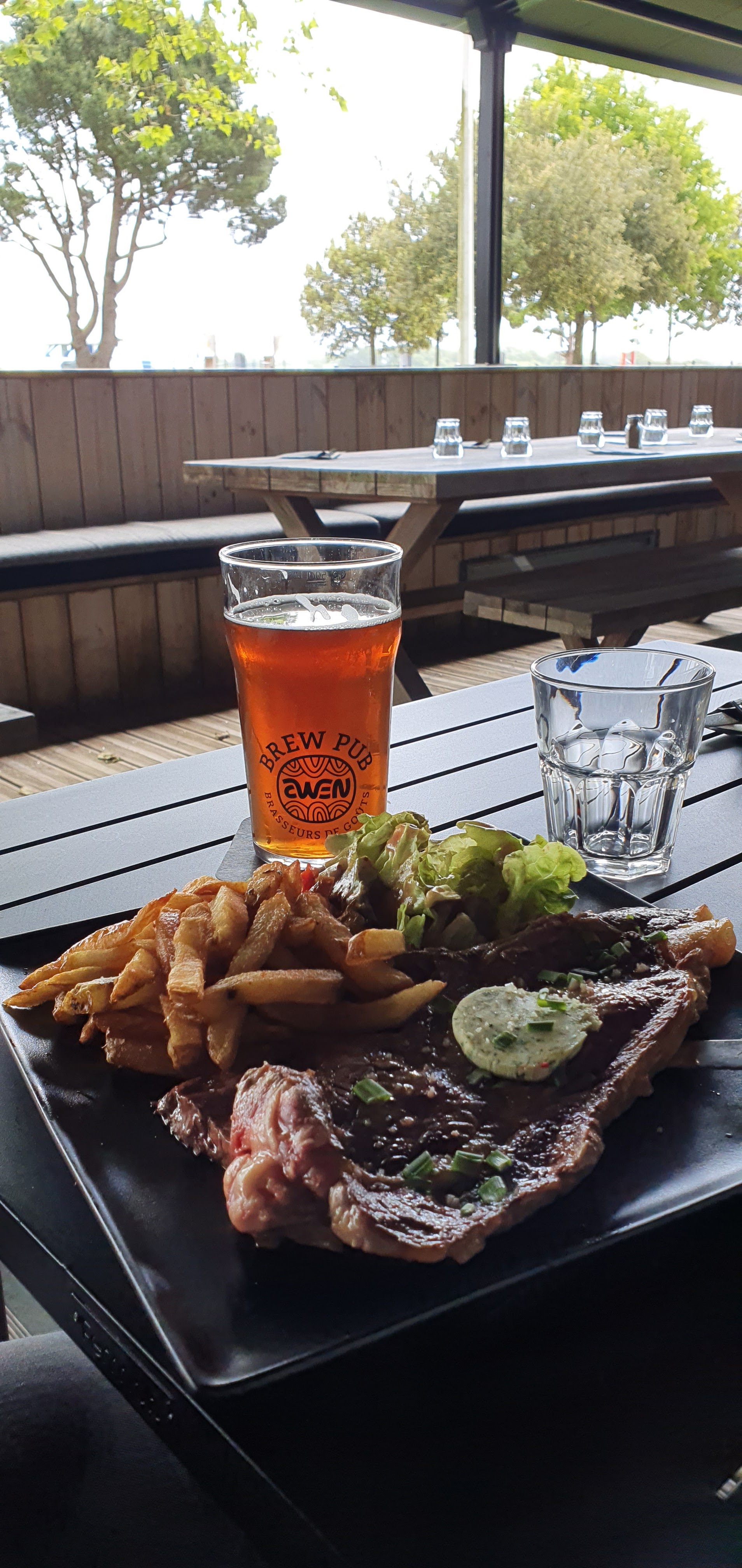 Nous avons passé une super soirée avec les planches à partager et une superbe pièce d'entrecôte saignante et très tendre, le tout accompagnés d'échantillons de bières d'Awen local. Bravo à toute l'équipe super sympa !
