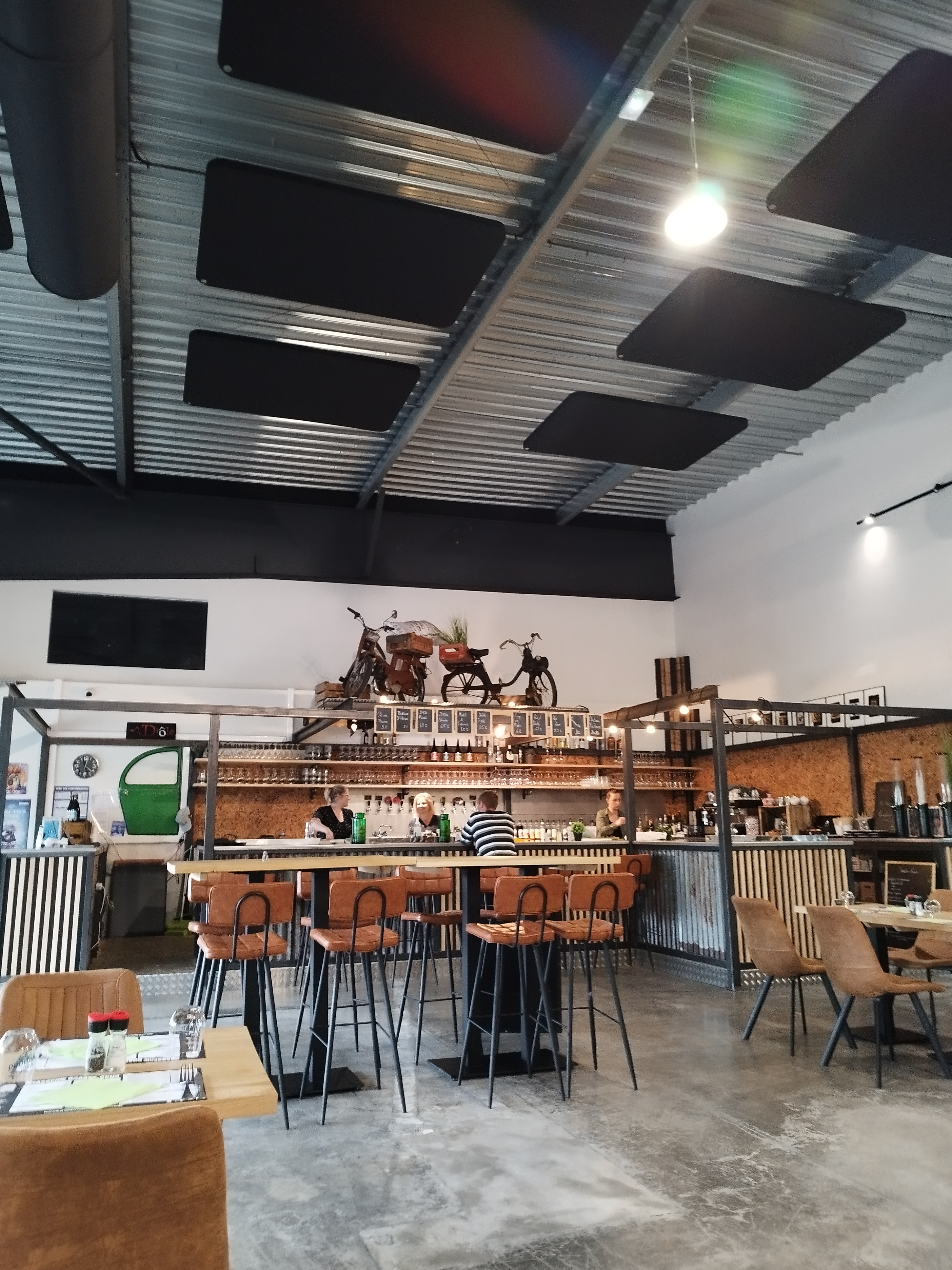 bâtiment neuf, salle spacieuse, décors minimaliste. une carte courte, mais des plats frais et de qualité. attention, les planches sont très très copieuses. à déguster avec un verre de bière en écoutant le concert du jeudi soir.