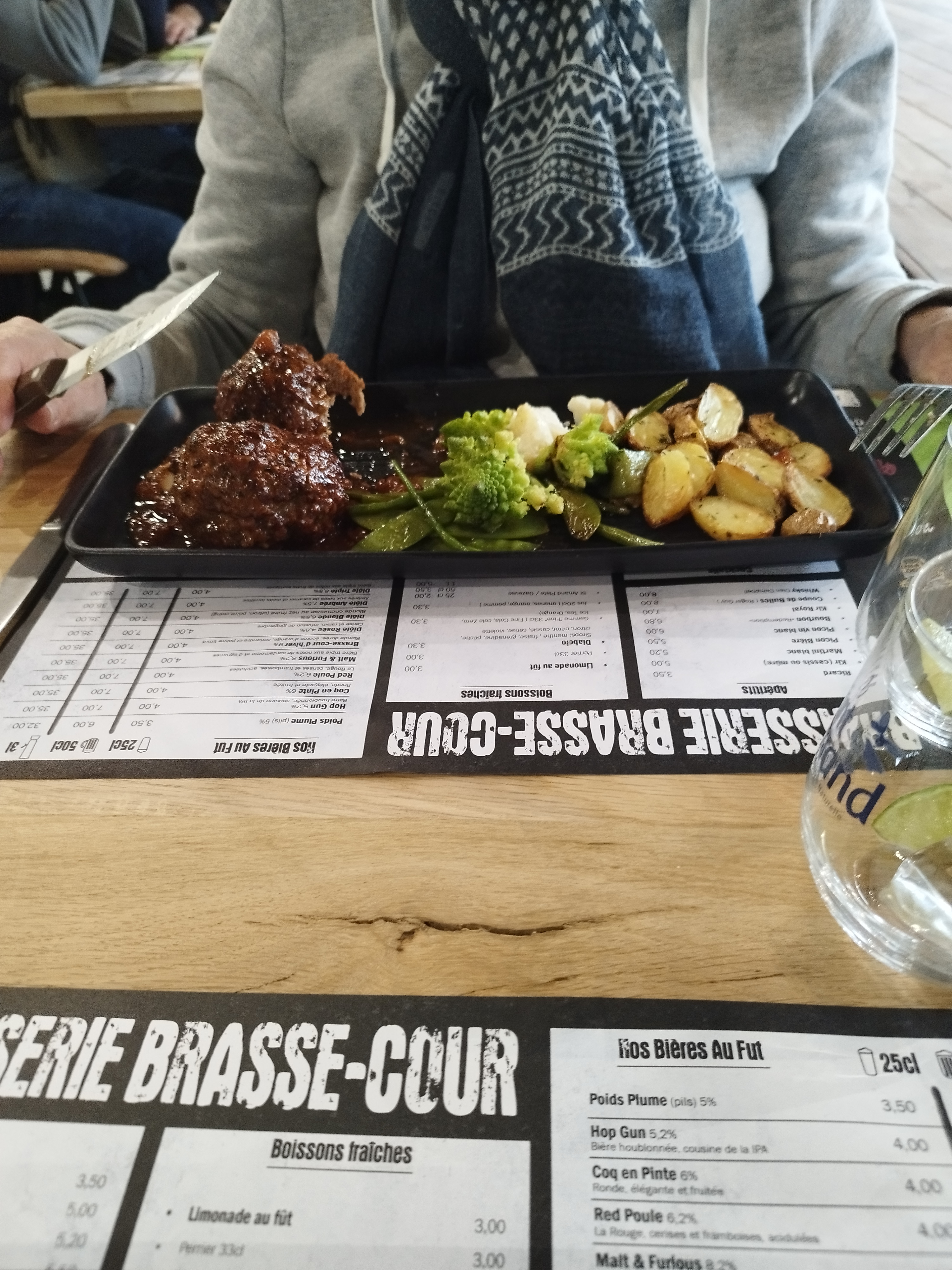 Concept au top, vue sur la brasserie c'est encore plus court que le circuit court. J'ai pris le filet de boeuf, pas besoin de couteau a viande un couteau a beurre suffit amplement. Viande tres très bonnes. Frites croustillantes et non grasse comme les vendeurs de frites. Un vrai régal. Le tout accompagné d'une bonne diole en 50 impeccable