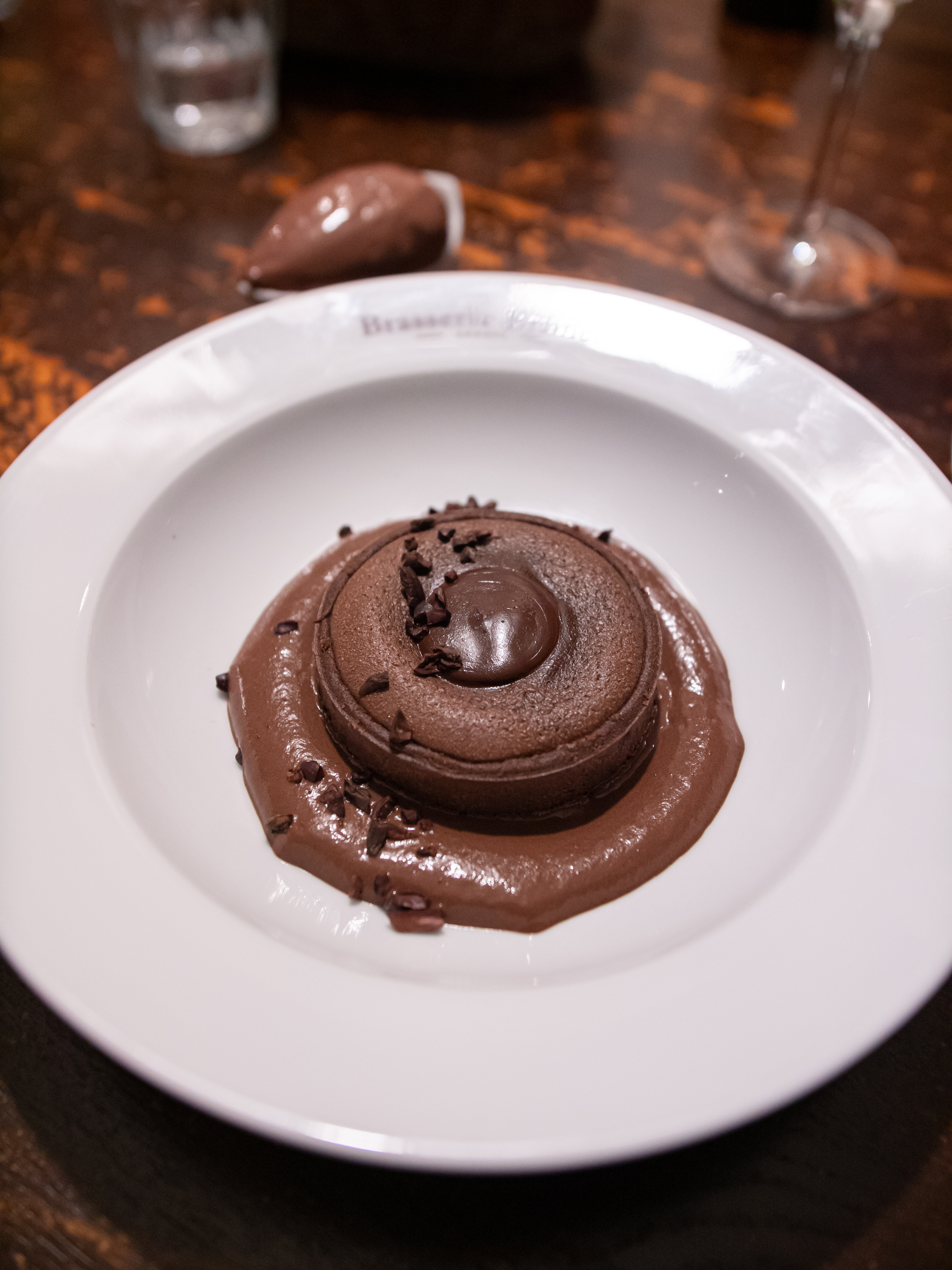 Jolie brasserie, service attentionné. Nous avons adoré : bons produits, cuissons parfaites, présentation soignée. Excellent cochon rôti et carottes crémeuses et en dessert une belle déclinaison du chocolat, tarte chaude au chocolat et cacao amère.