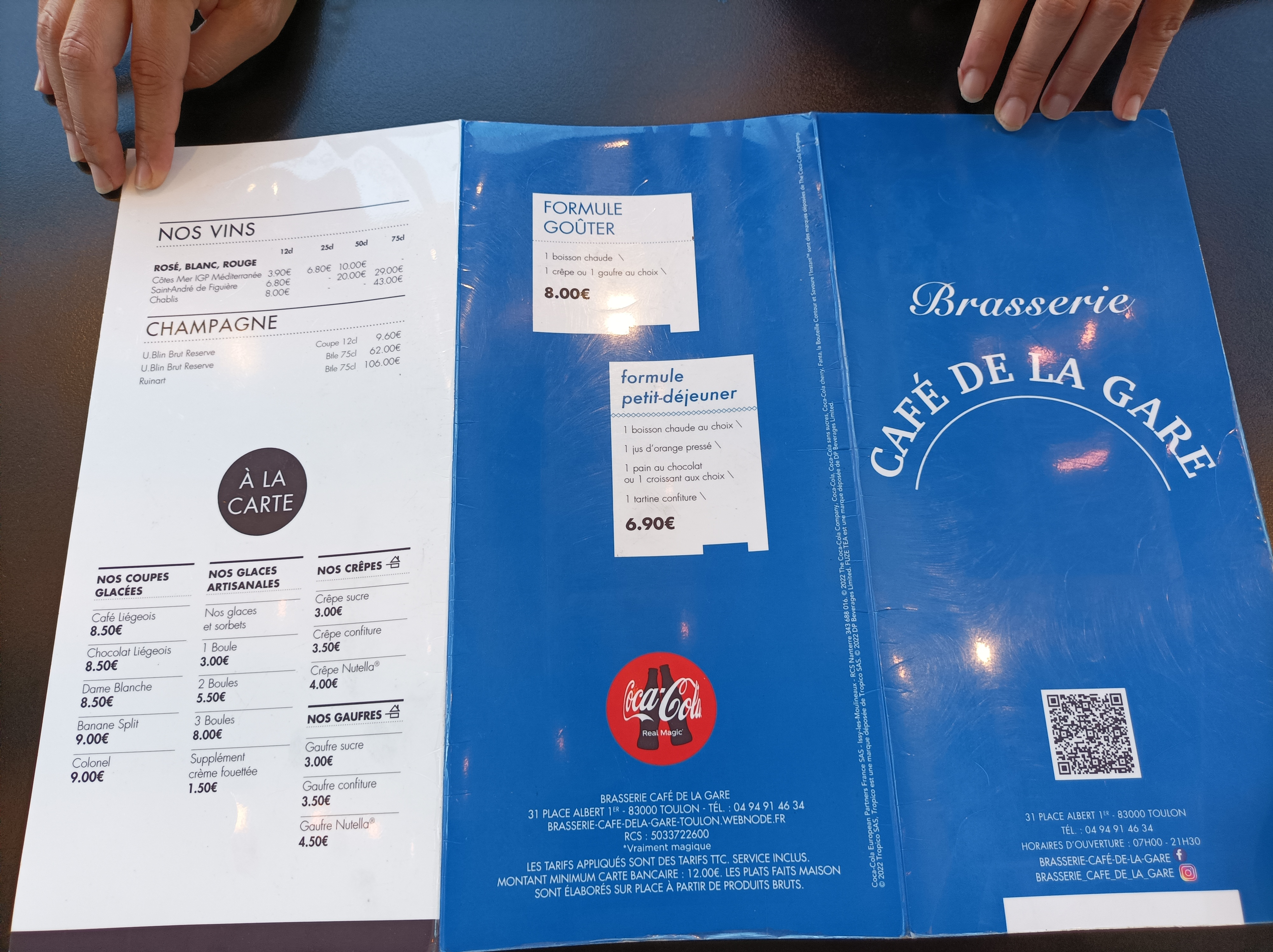Bonjour brasserie de la gare très sympathique personnel o top nourriture très bonne a venir à tout pris en attendant votre train .prix raisonnable