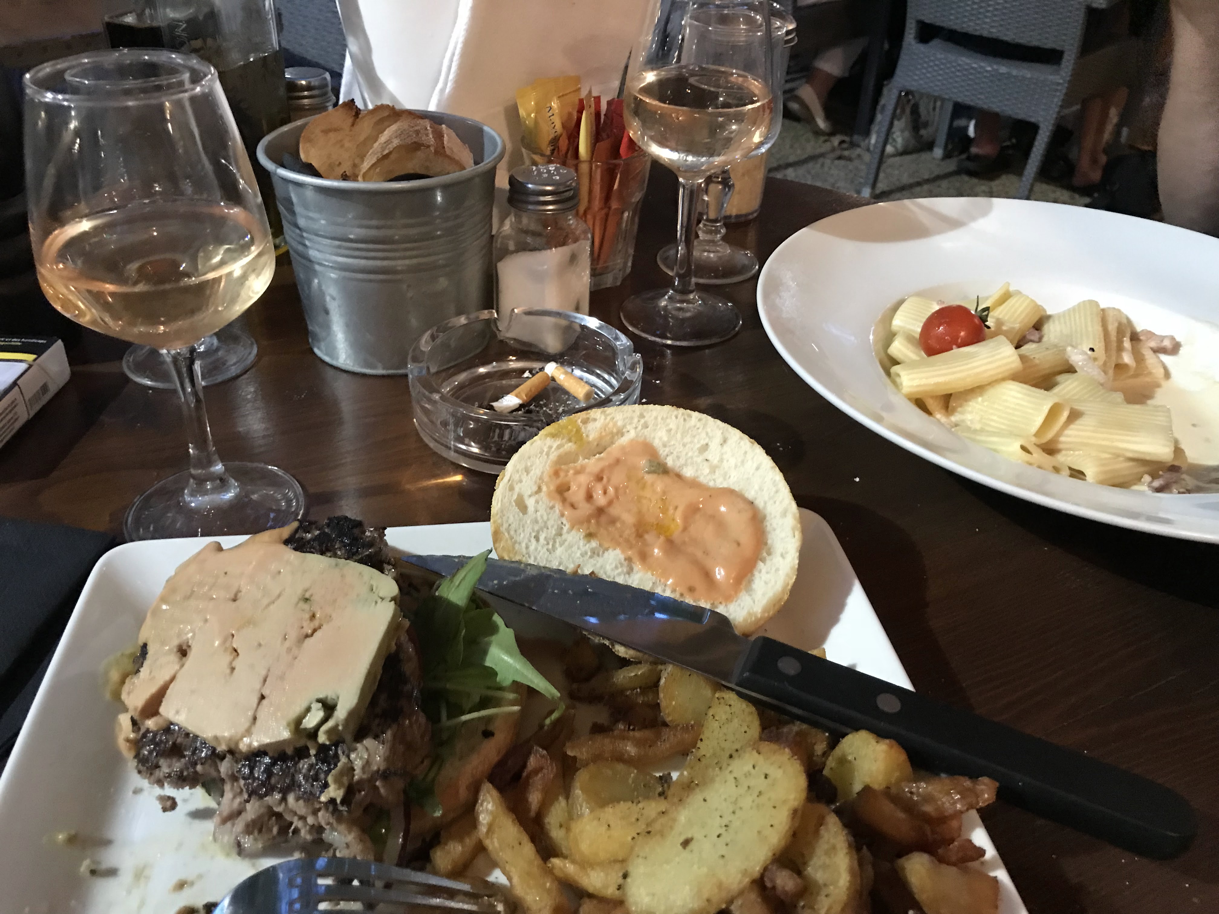 Cadre très agréable sous les platanes du cours Gambetta! Les plats commandés sont de qualité (frites maison, viande de boucher pizza cuite au feu de bois...). Avec mon mari nous avons pris le tartare de saumon, c'était excellent. Les crêpes sont succulentes, légèrement croustillantes un vrai régal.