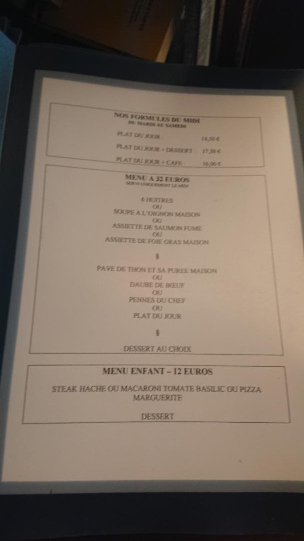 Repas agréable et assez copieux, bonnes frites, serveuse à l'écoute et aux petits soins et service rapide. Petite accroc car pas assez de menu du jour à 13h mais on eu la possibilité d'avoir l'équivalent du plat du jour pour le même prix. Beaucoup de choix de desserts dans le menu.