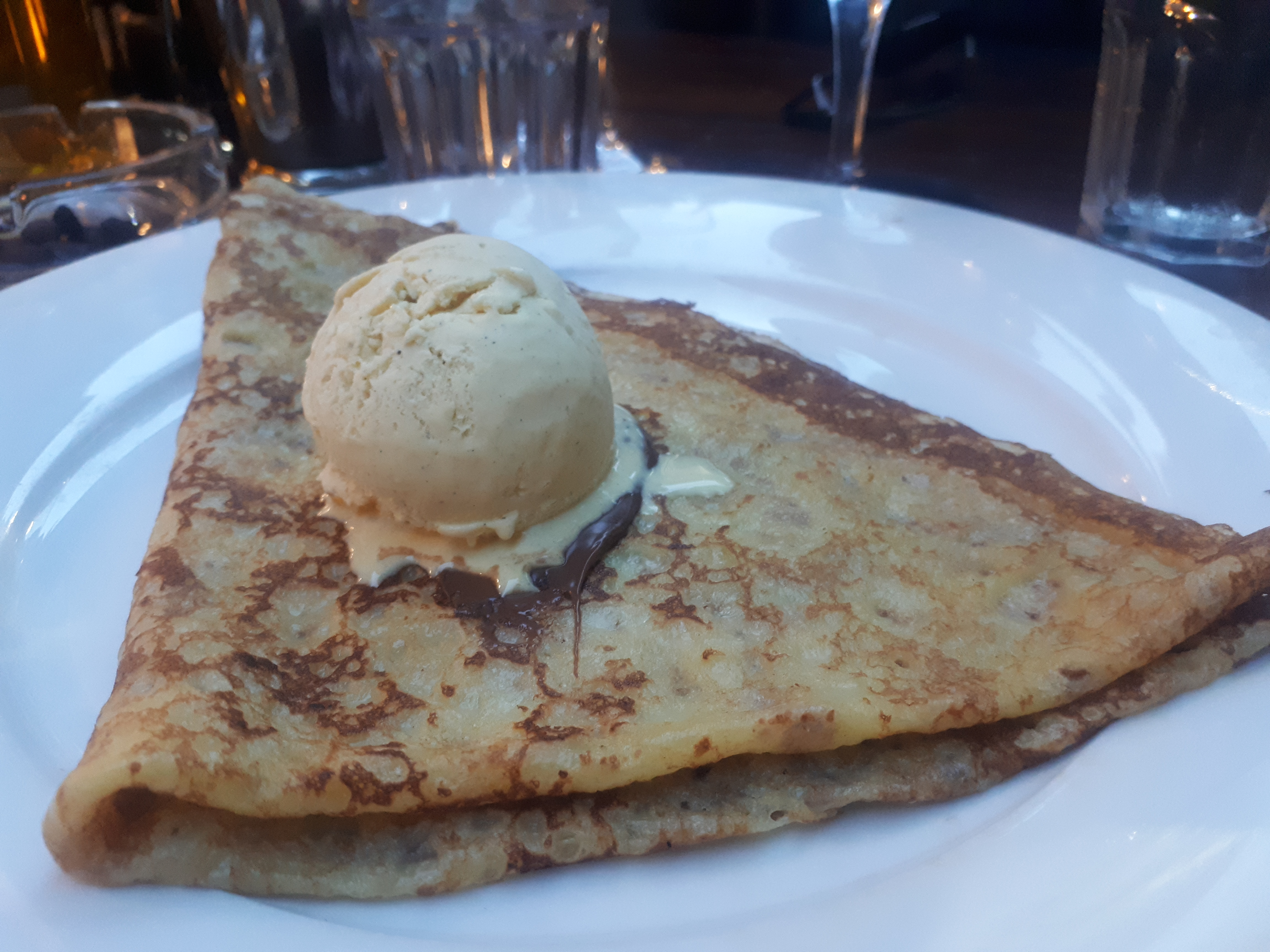 On a été accueilli avec un grand sourire par le serveur. A nos petits soins . Franchement j'ai beaucoup apprécié, et la crêpe était délicieuse 😋😋