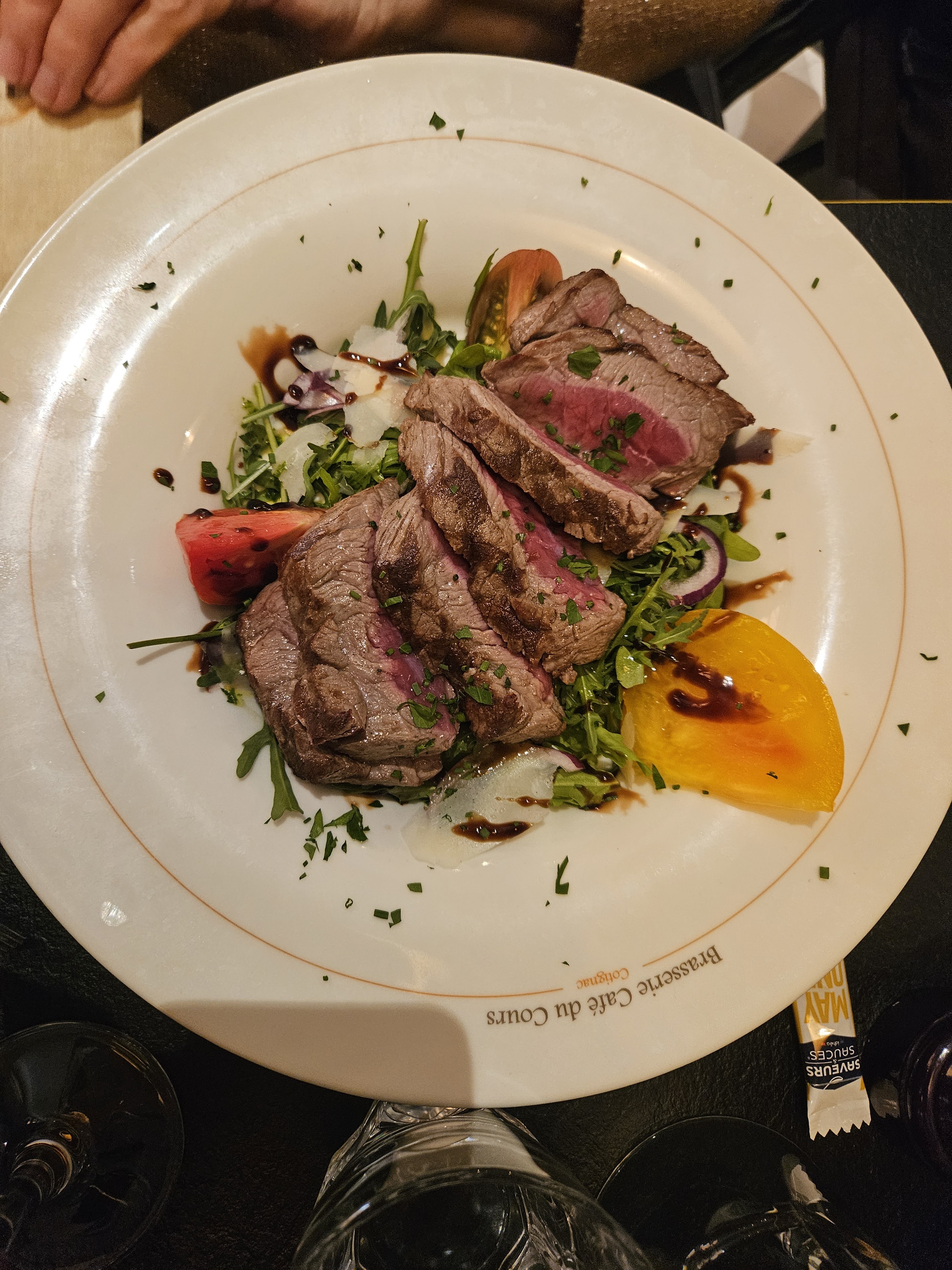 Qualité horrible et trop cher. L'entrecôte était fine comme du papier, l'entrée mozzarella n'avait aucun goût, le poulet était sec, la sélection de vins était correcte.