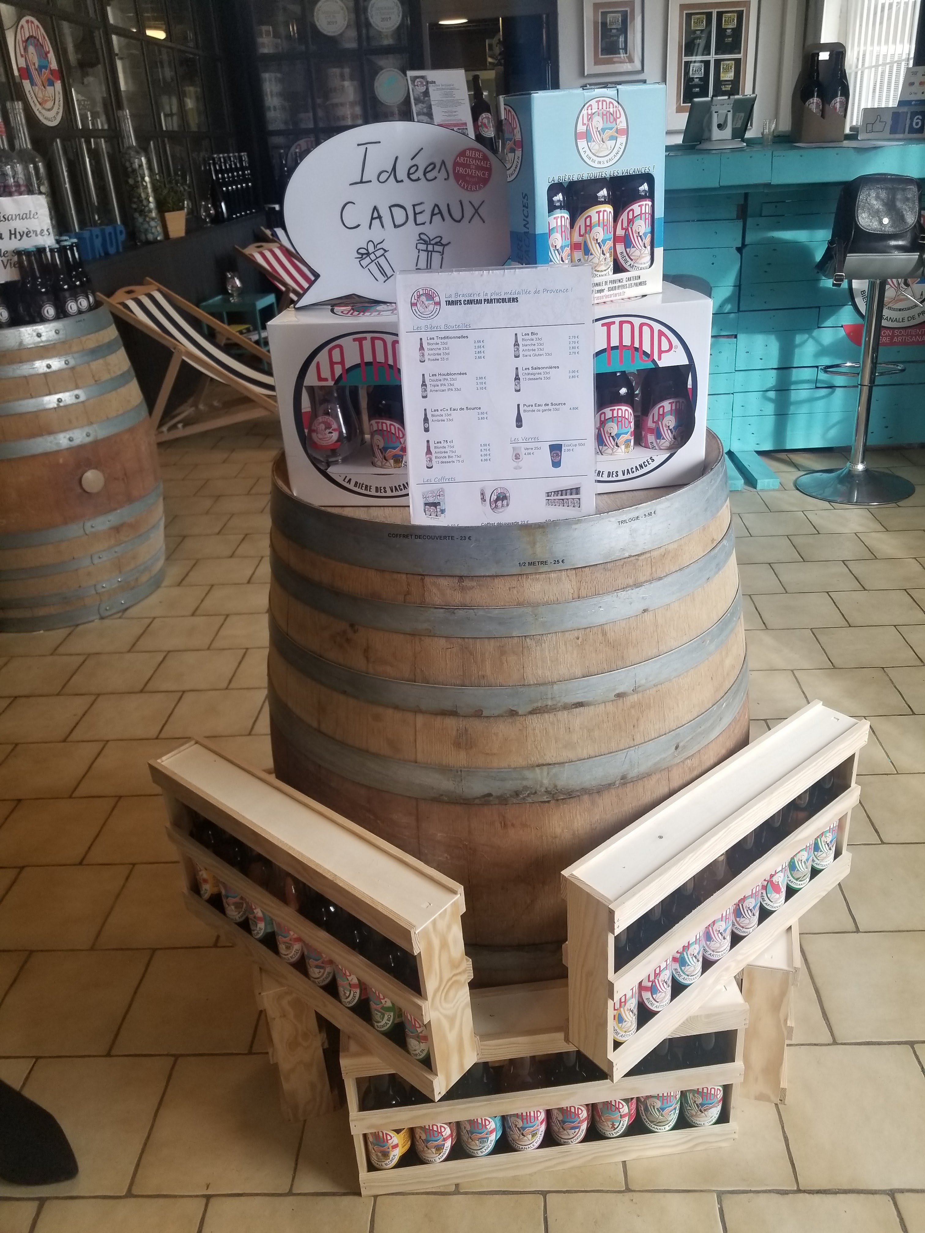 J'ai découvert la bière Artisanale La Trop ... et amateurs de bières de qualité, nous avons été conquis avec mon mari. Nous passons de temps en temps directement à la boutique de la brasserie ( à côté de centre Azur à Hyères) on se gare facilement et ils nous mettent les bières dans des petits cartons : facile à charger dans le coffre et aussi facile à stocker de retour à la maison . J'ai découvert qu'il y avait plus de 11 recettes avec des bières un peu pour toutes les occasions : pour les apéritif, d'autres pour les BBQ ( la IPA ) et surtout des bières pour plaire à tout le monde lors de soirée à la maison ( bière rosé). Bref maintenant on achète nos bières comme on achète notre vin, en se faisant conseiller, en faisant marcher un commerce local de proximité à Hyères, en recherchant la qualité. Et comme on boit moins et moins souvent ... et bien je trouve que c'est pas mal de choisir une meilleur qualité, une bière sympa qui surprend mes invités et même si le prix à l'unité est plus cher qu'une bière classique ... çà reste très raisonnable et tellement Bon. Je suis conseiller immobilier à Hyères et cette année j'ai décidé d'offrir de jolis coffrets dégustation découverte avec: 4 bières et 2 beaux verres à mes clients à la place du classique Champagne. Clin d'oeil à l'artisanat local, se différencier et surtout faire plaisir. J'ai vu qu'il louait aussi des tireuses .. bon plans pour les crémaillères ! bref je recommande.