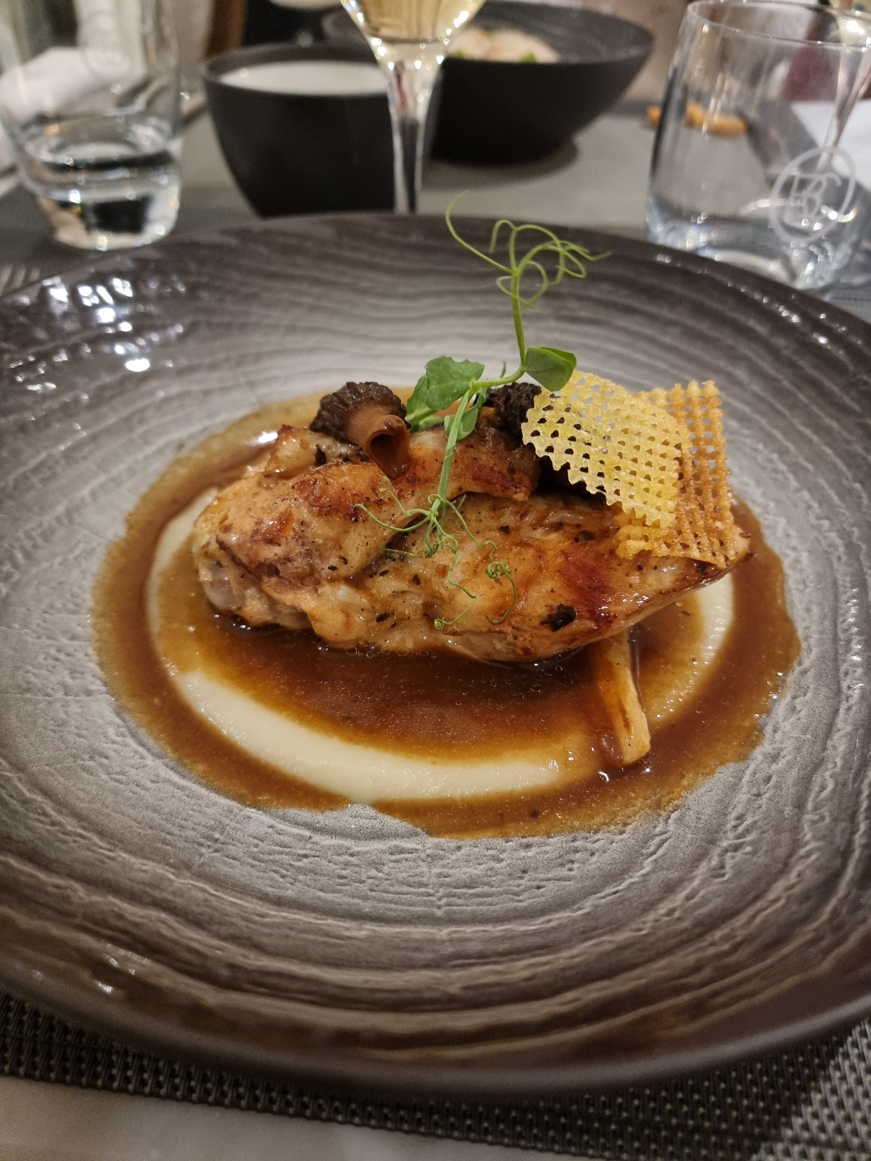 le cadre est très beau mais très déçue des ravioles langoustines/truffes le plat était tres fade et pas le goût de truffes ! Par contre dessert les gaufres sont excellentes et c est très copieux.